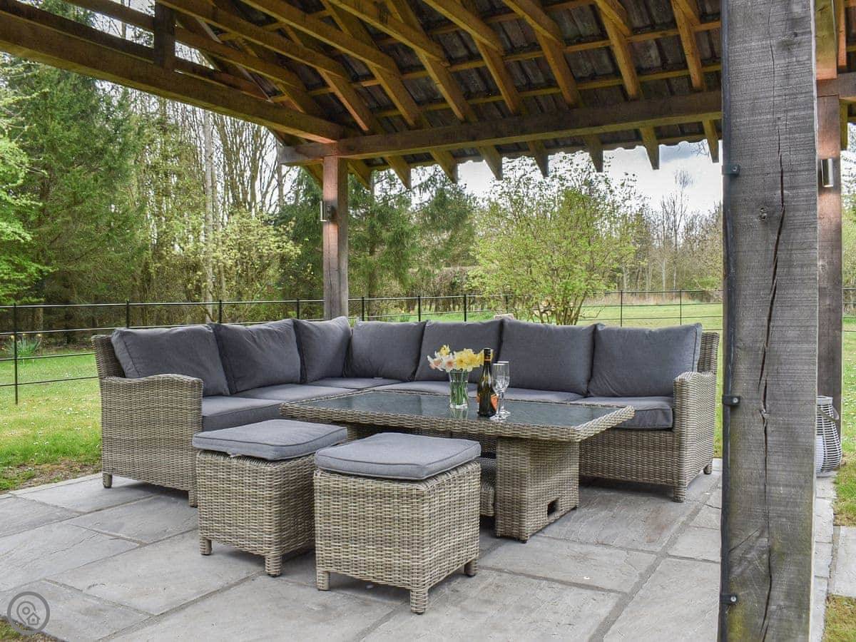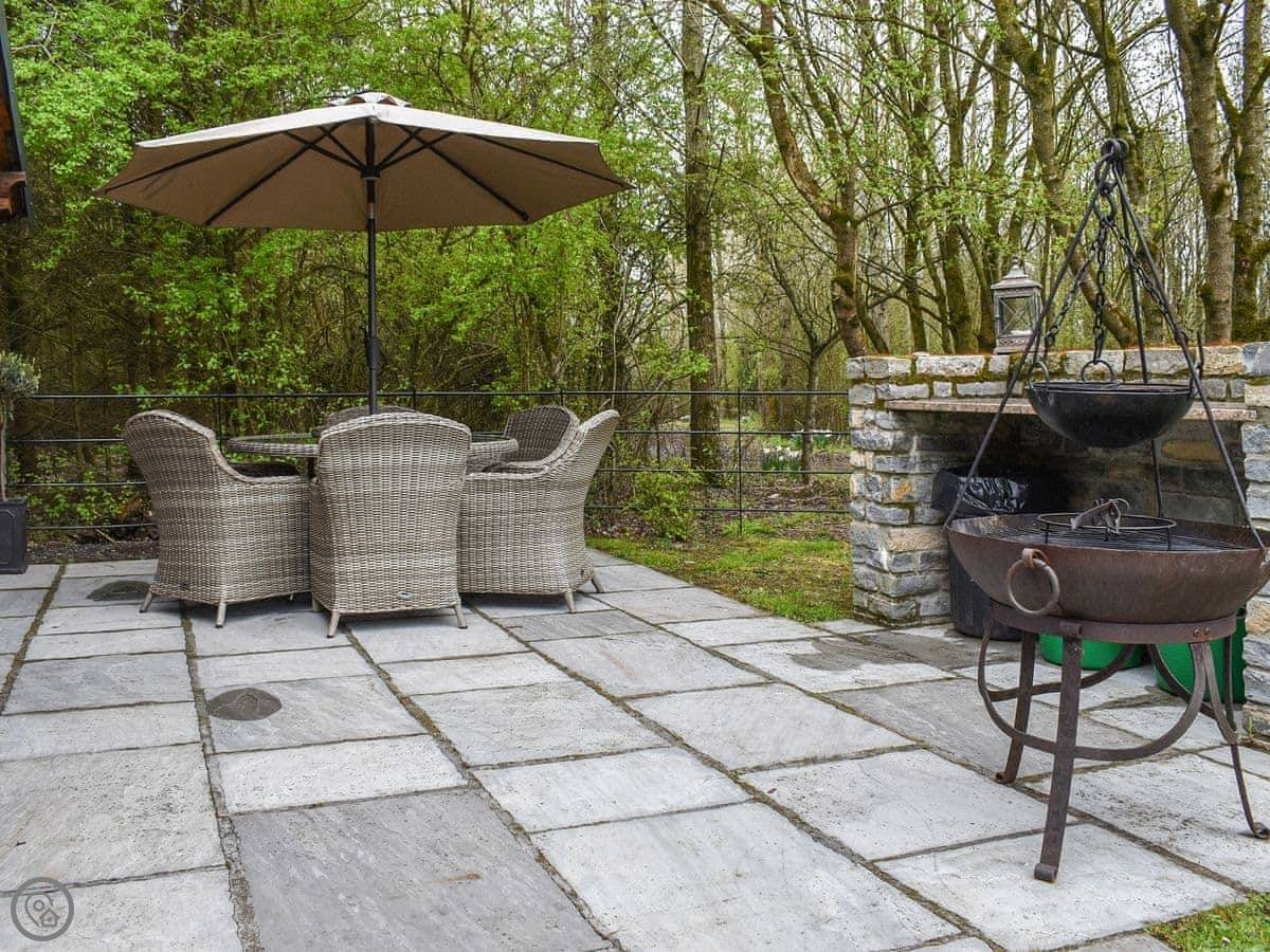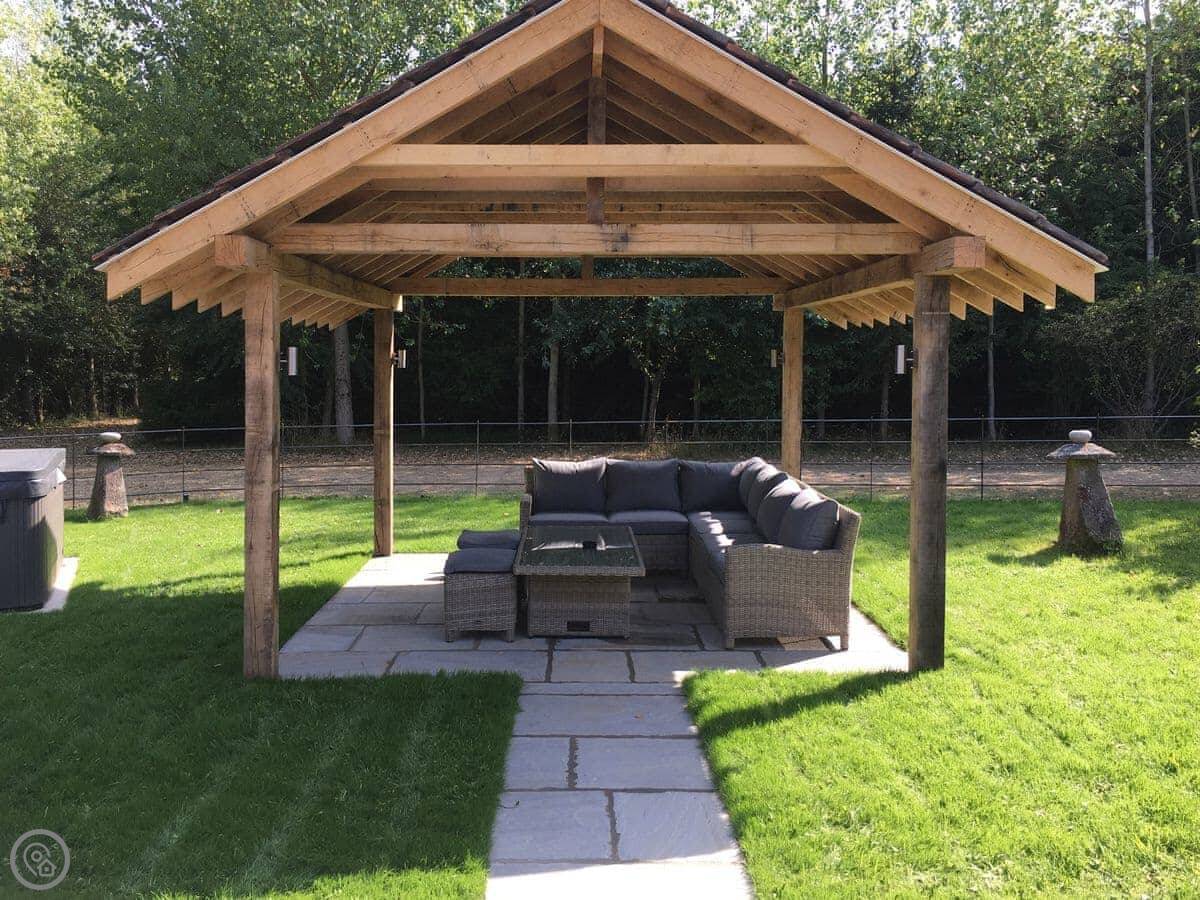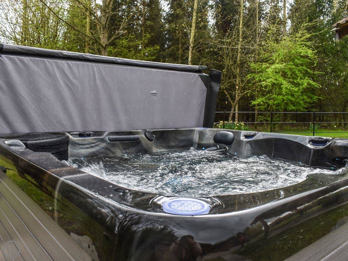 You have a large, enclosed garden. There's a hot tub, a barbecue, and plenty of parking right outside. We allow one dog. The woods are ours, so you're welcome to walk through them. It's very quiet. You'll see deer, birds, that sort of thing.