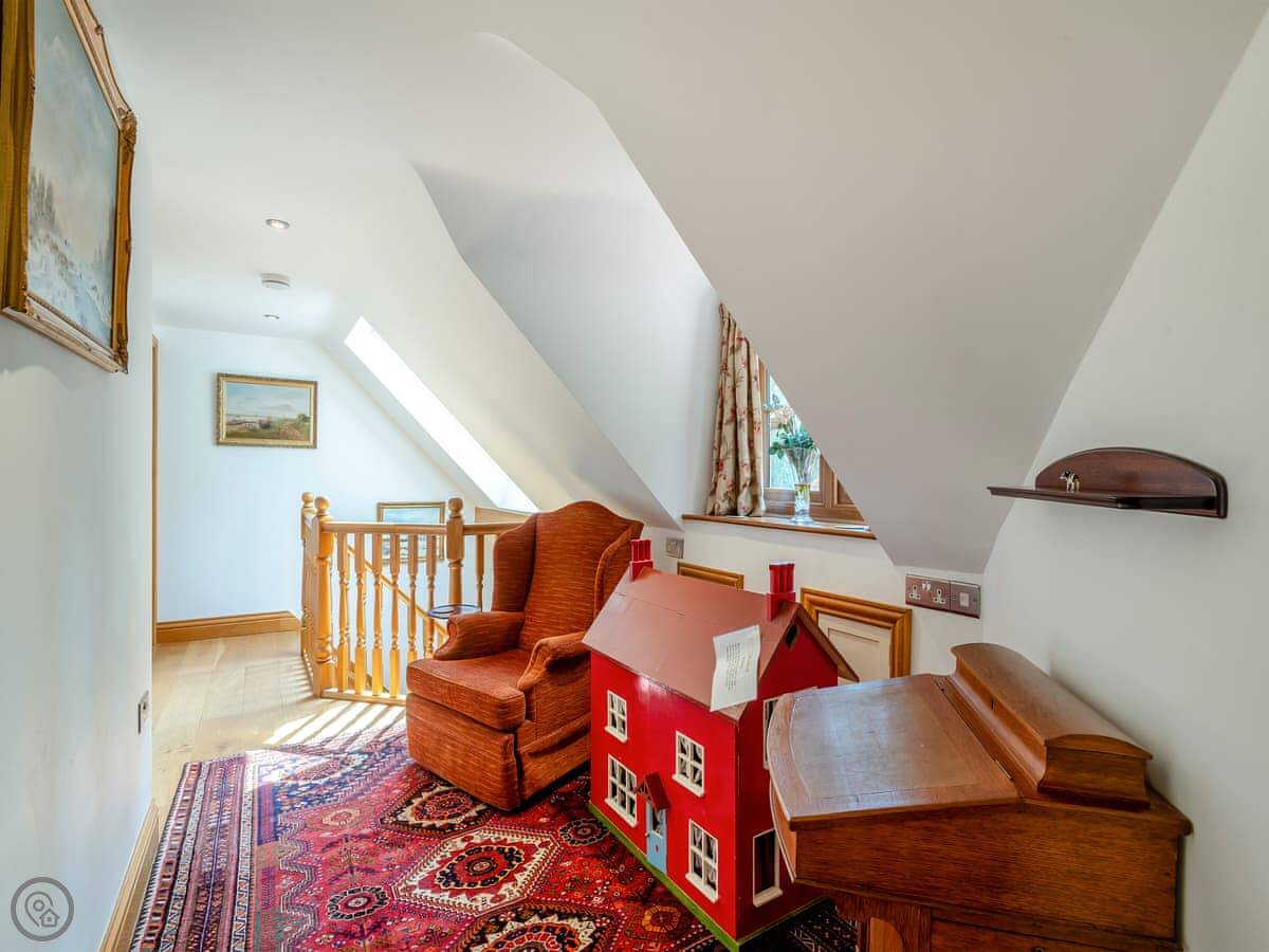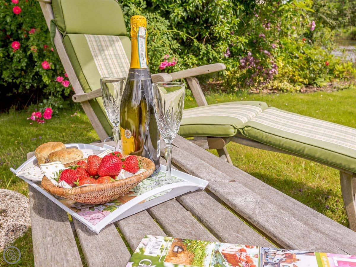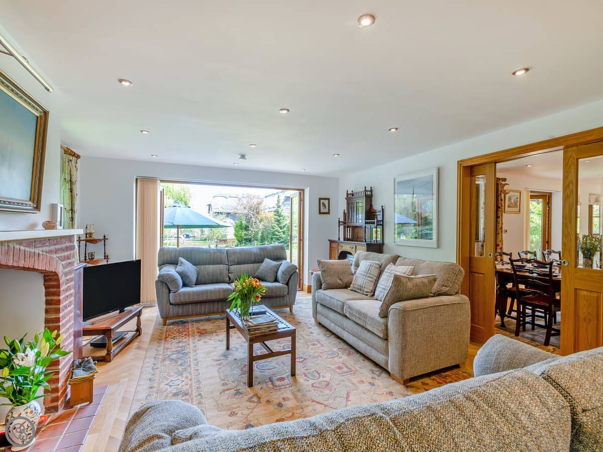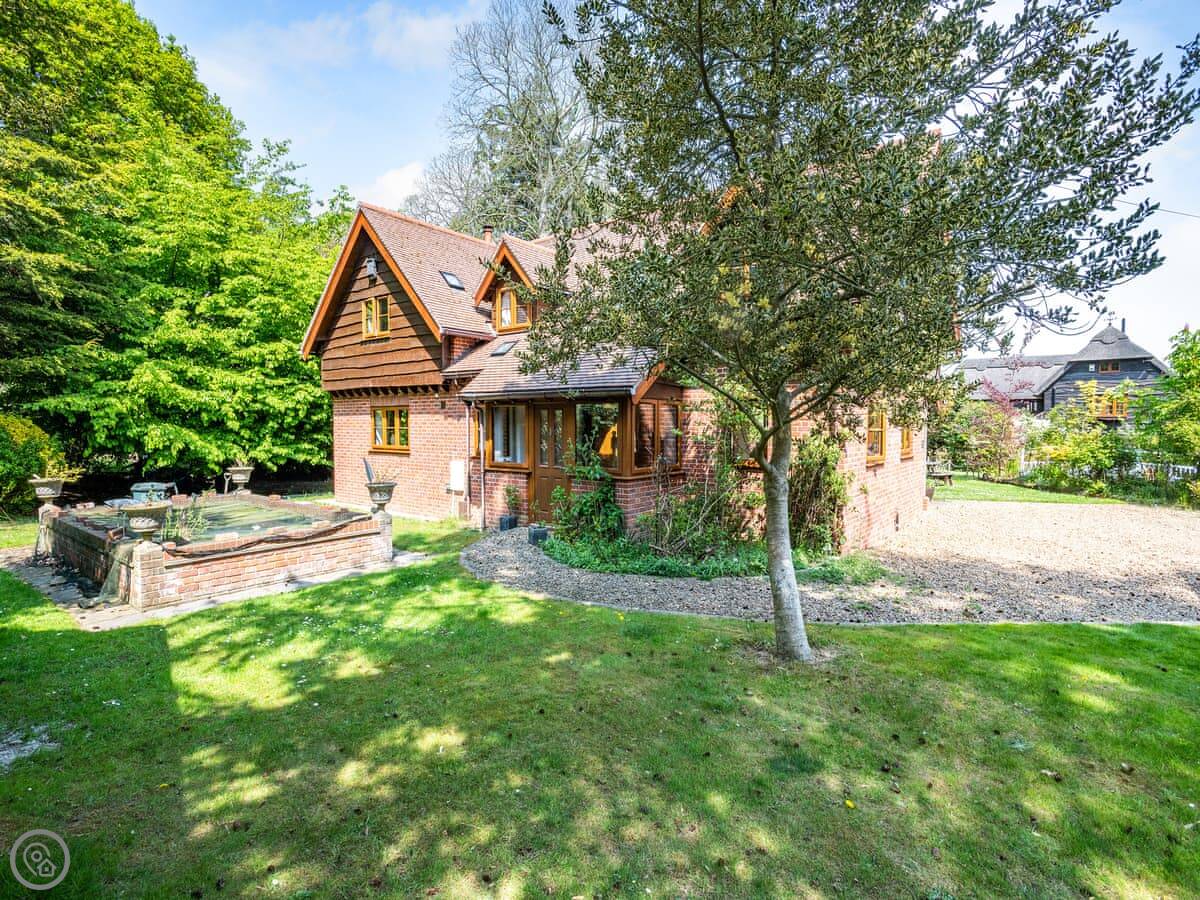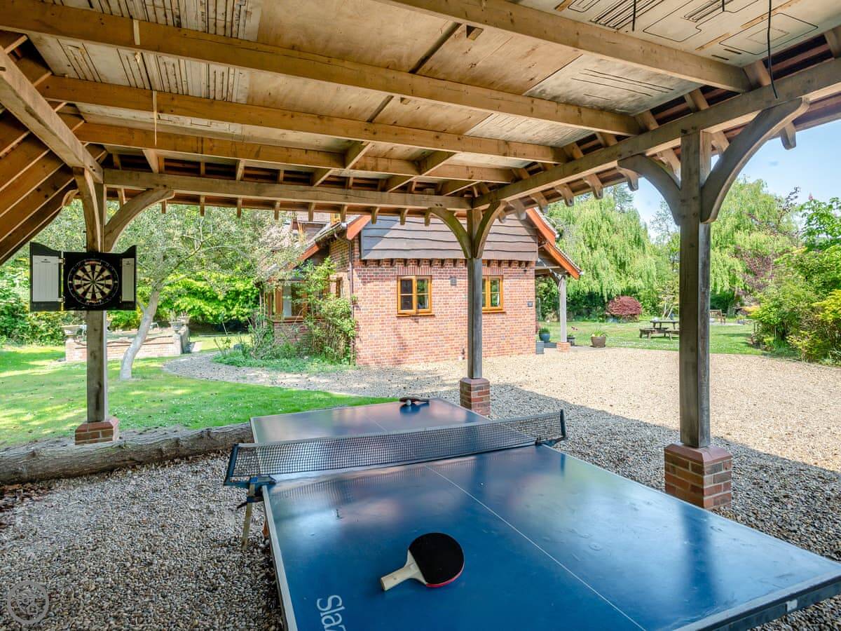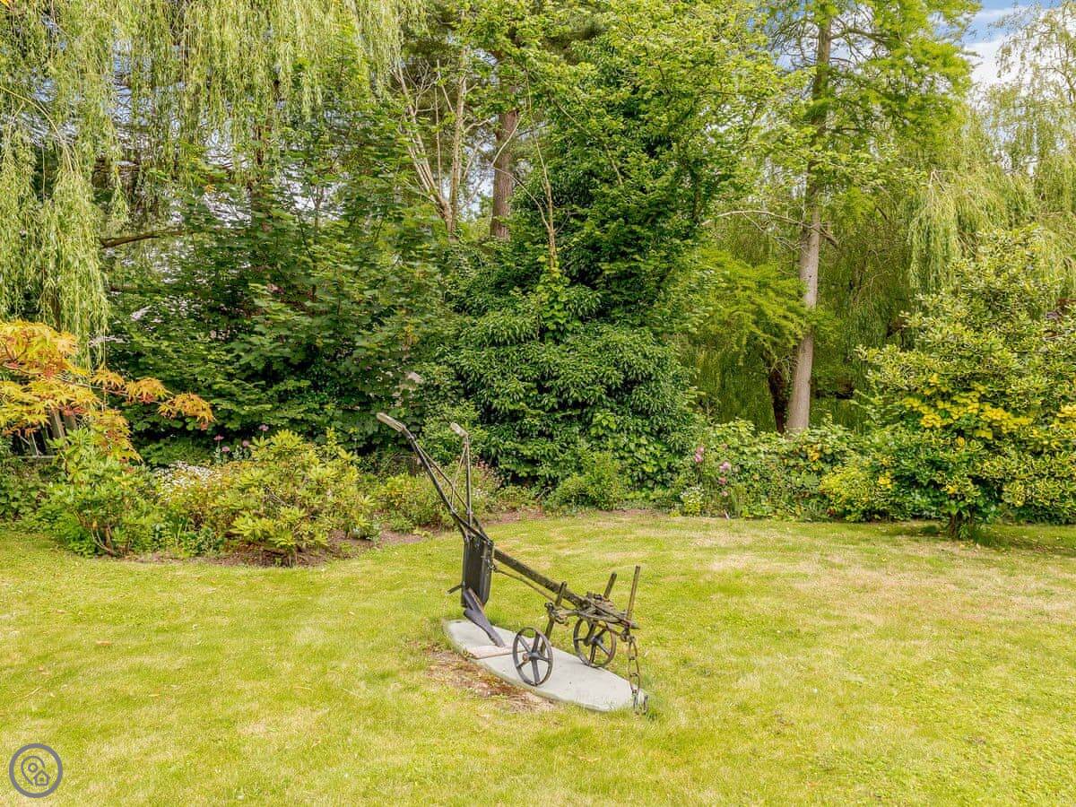 You get the lawn, a terrace to sit out on, and a cart shed with a table tennis table in it. The river frontage is yours, so you can fish from the bank if that's your thing.