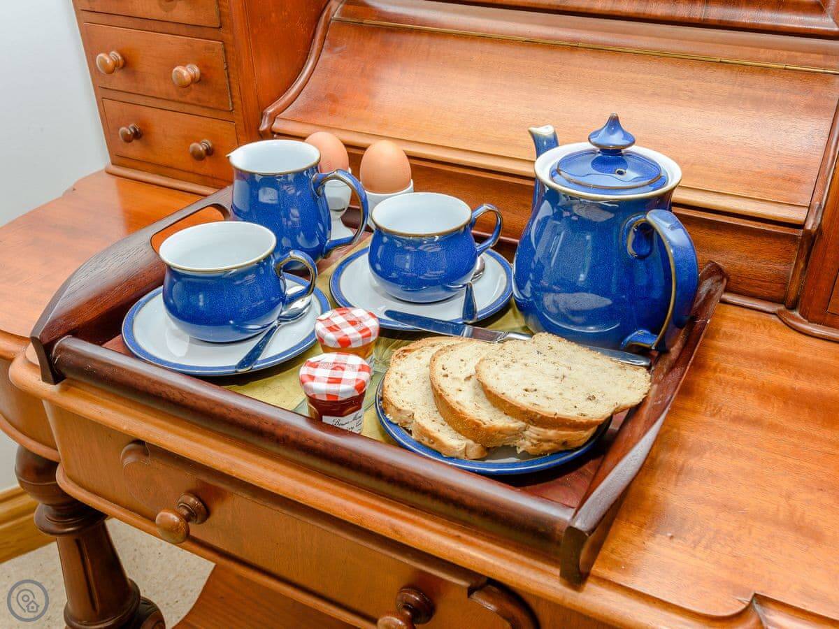 Things here: washing machine, dishwasher, cot, highchair, stairgate, wood burner, WiFi, TV, parking. Bedding and towels are included. No pets, I'm afraid.