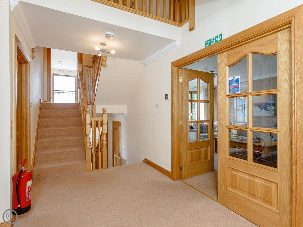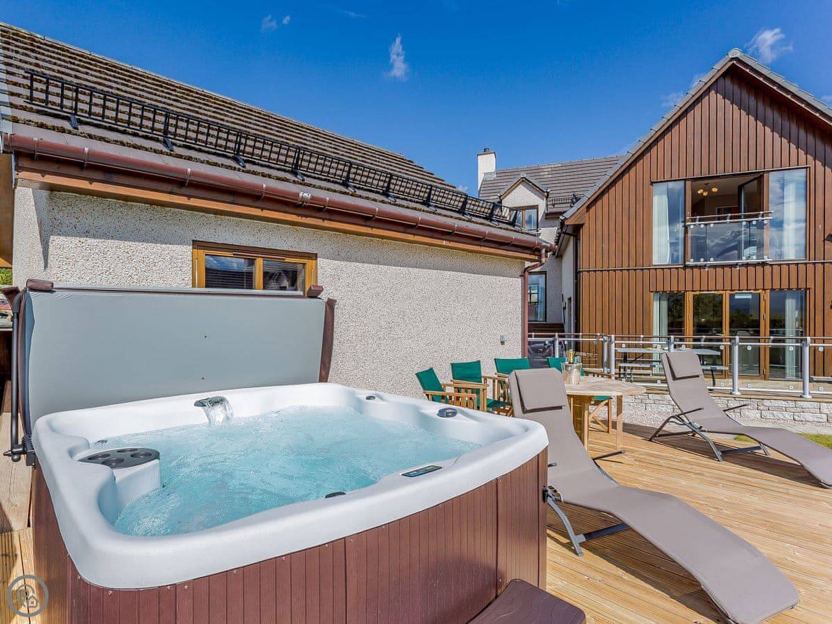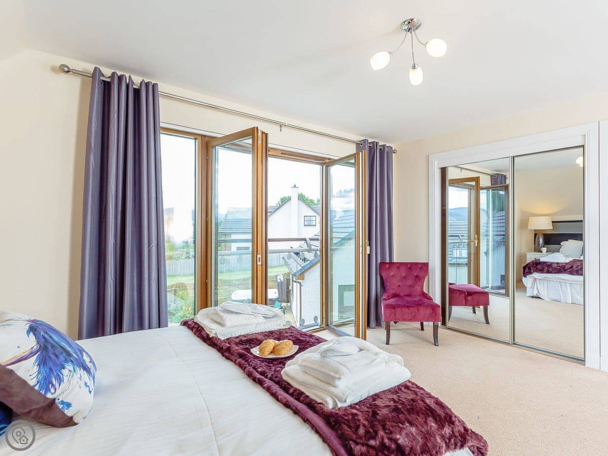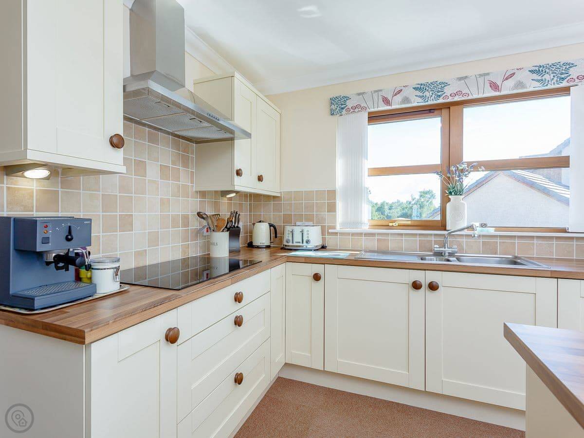 The house is on a quiet road next to a children's play park. You can walk into the town centre in about fifteen minutes. There's a shop, pub, and restaurants about a quarter of a mile away. The views from the front are straight out over the fields to the Cairngorms.