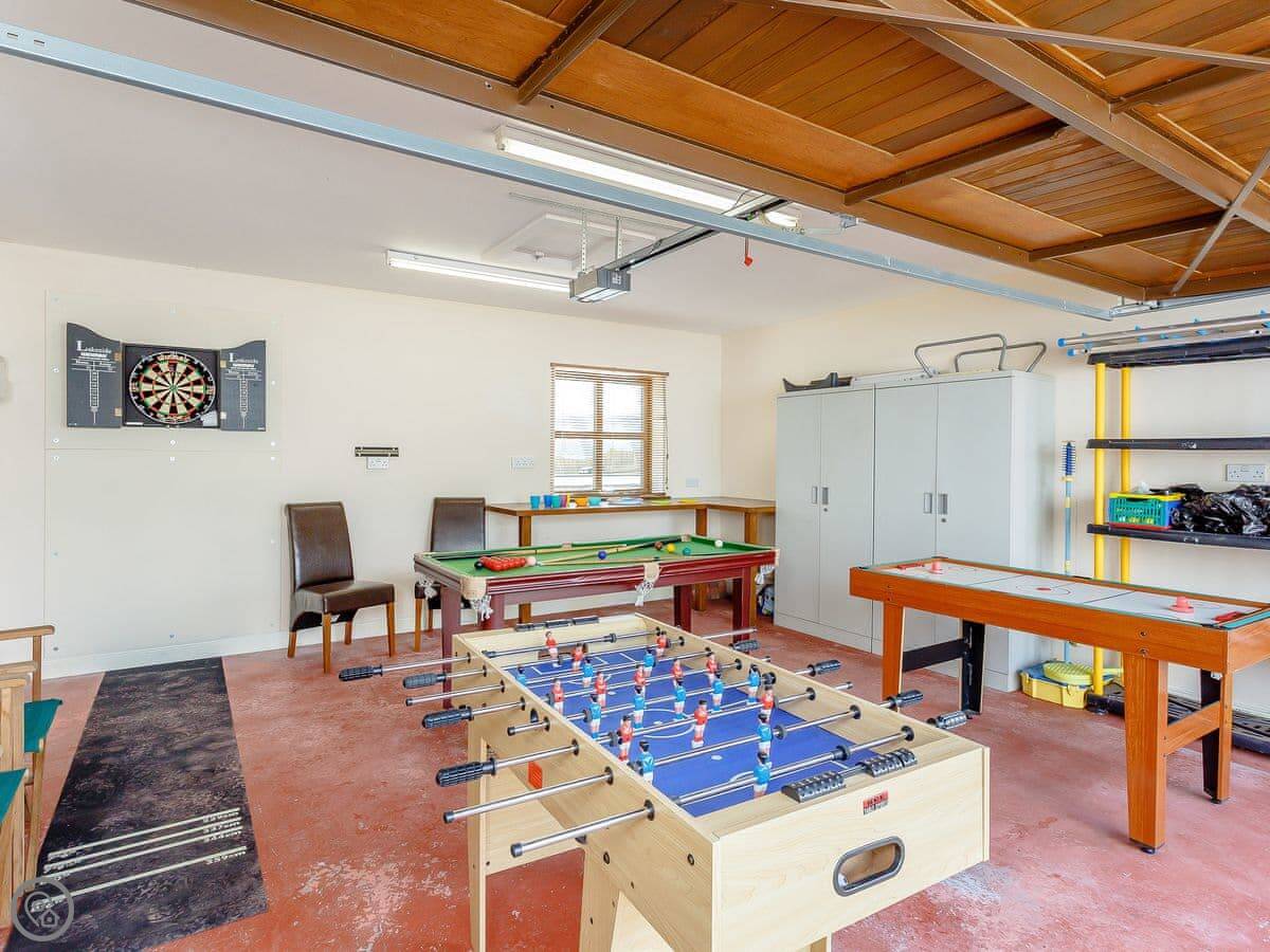 It sleeps ten, in five bedrooms. There are three bathrooms. The rating is 4 Star, which basically means it's got good quality stuff and is well looked after. It's spacious inside, and there's a separate room for kids to play in. You get all your bedding and towels.