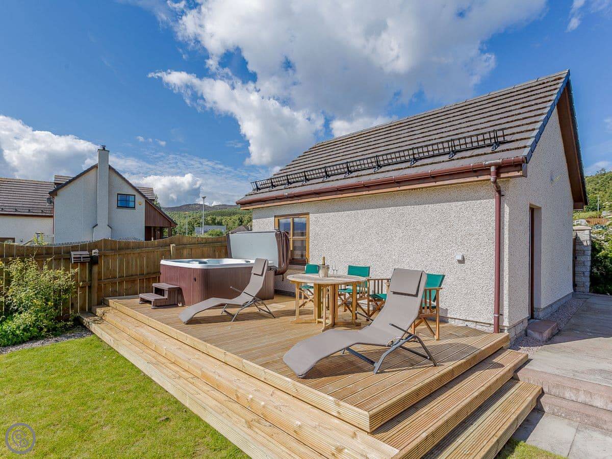 The Lookout is a detached house just on the edge of Aviemore. It's in a quiet spot, up a bit of a slope. You get the whole garden to yourselves, it's fully enclosed.