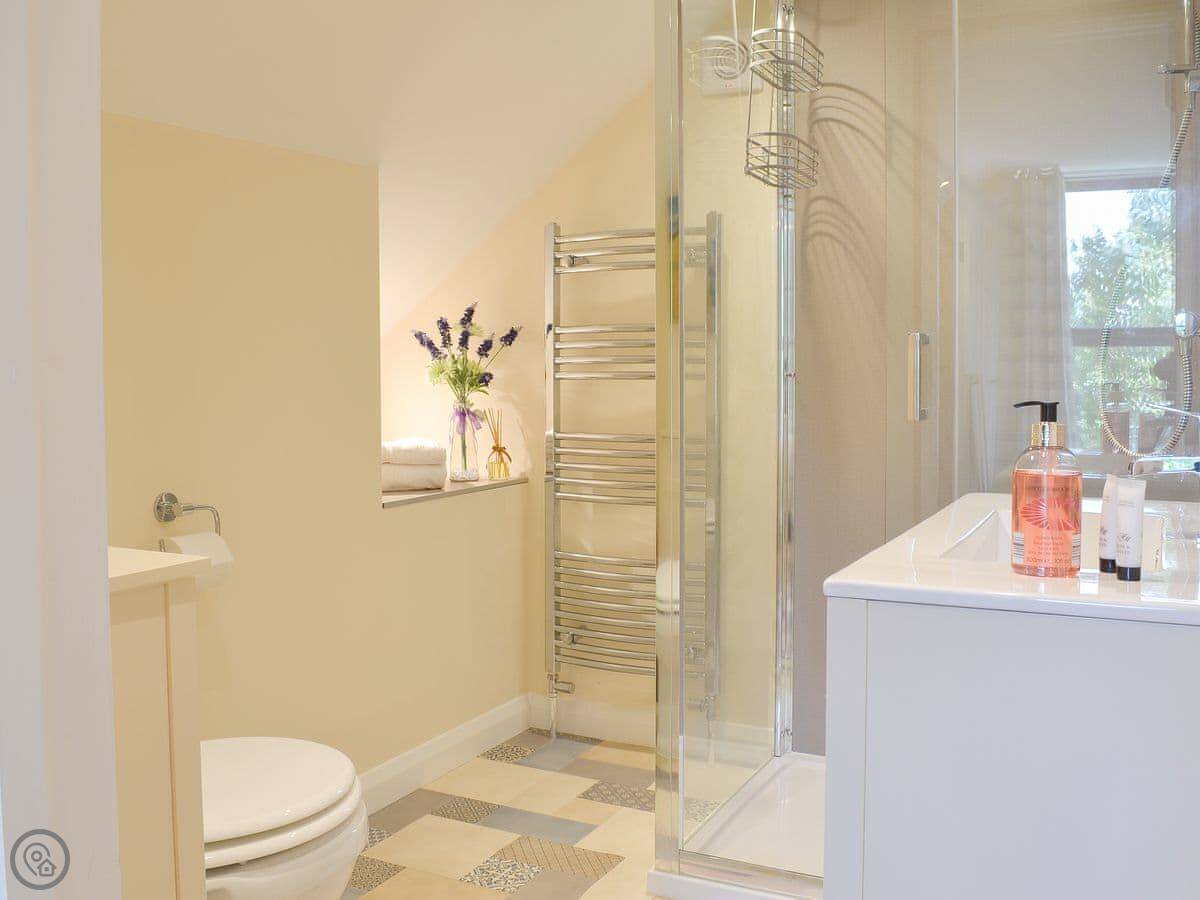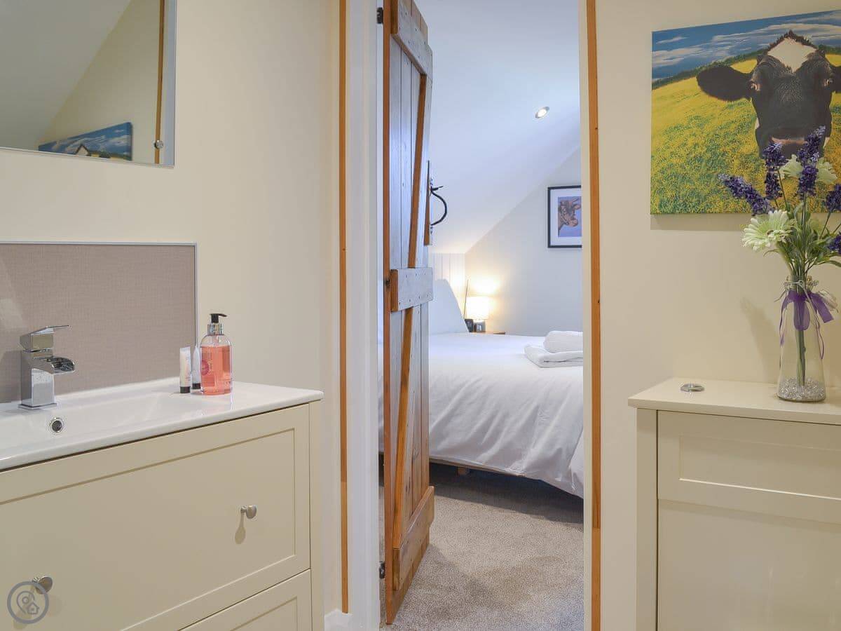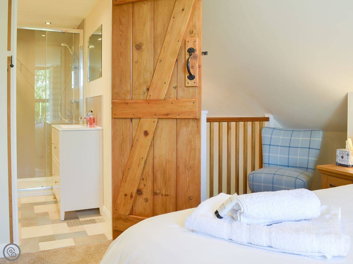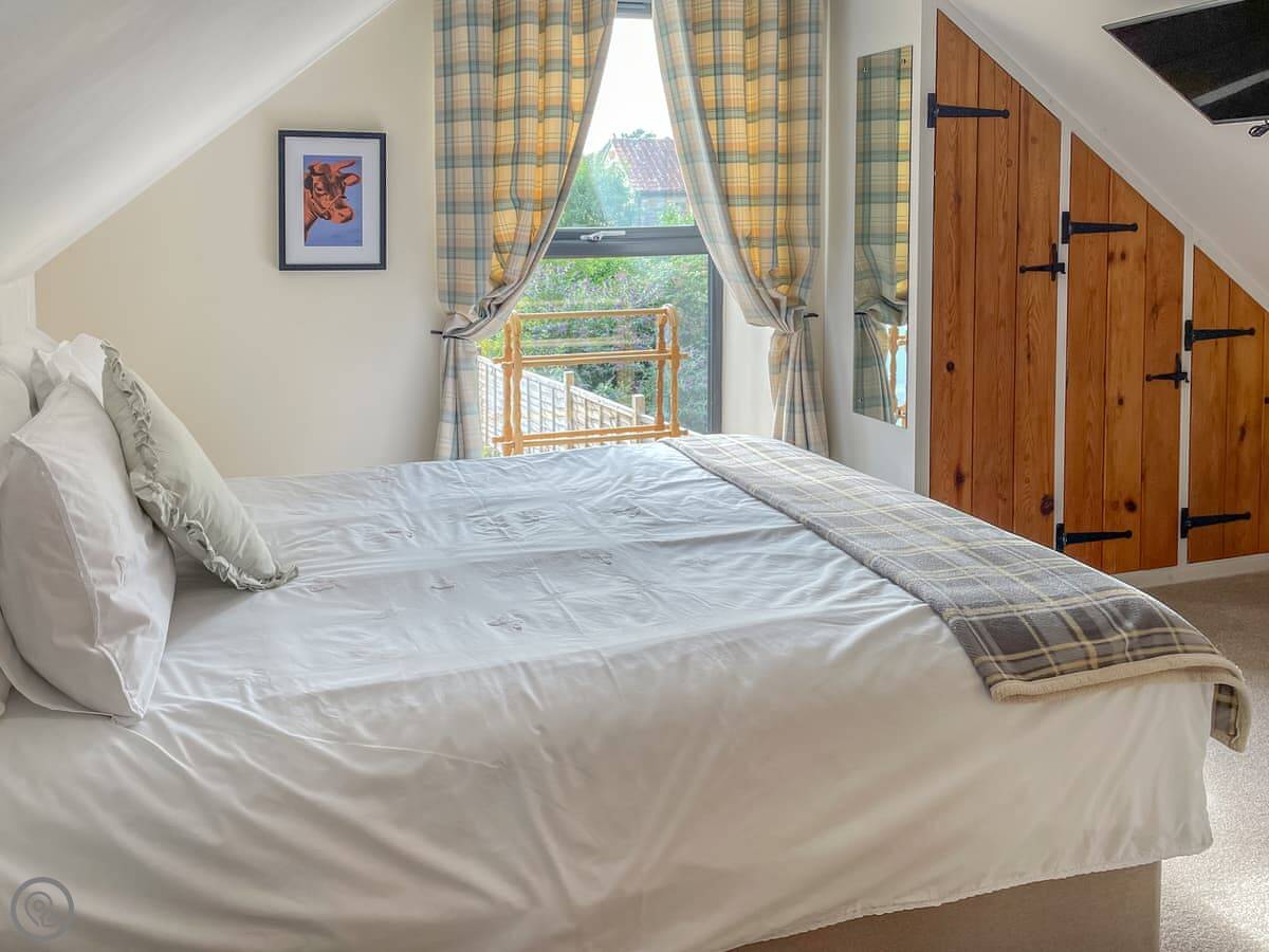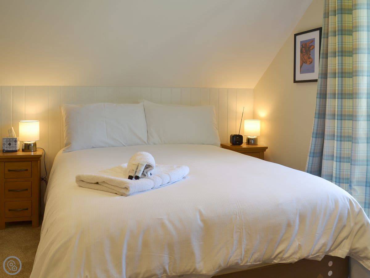 It's a 4 Star property. That means it's comfortable and well-finished, but not a show home. It feels more traditional than the other cottage here. The bedroom window has a nice view over the fields.