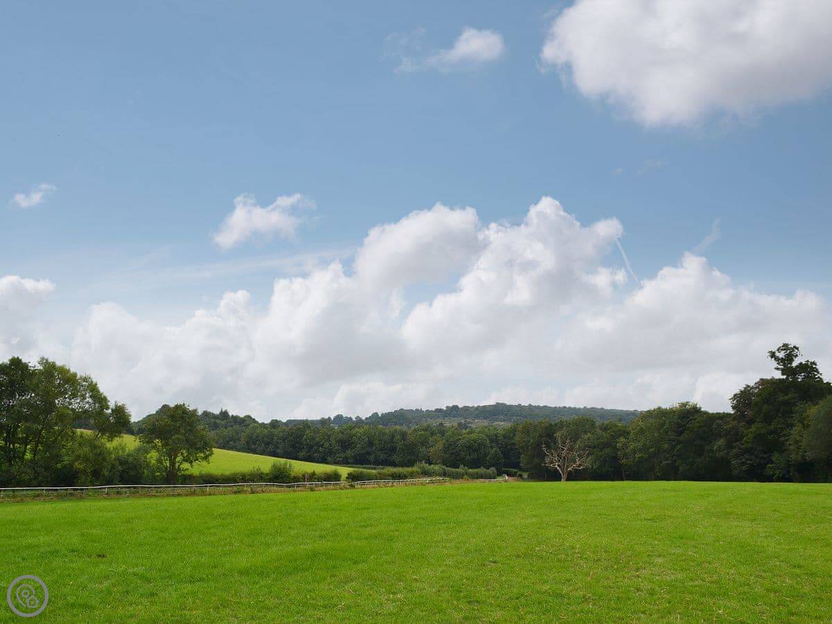 You look out over woodland at the back. There's a small sitting area for each cottage. You can walk straight out from the door onto the footpath. There's a good walk through the fields and woods to a pub in Tandridge. It takes about half an hour.