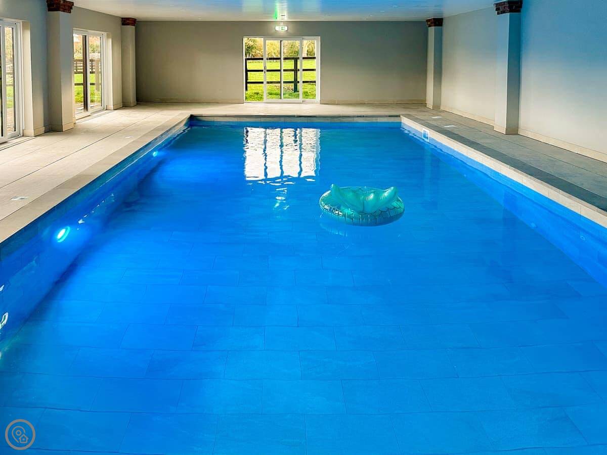 Being on the farm, there are a couple of on-site fishing lakes. The fishing is included in your stay, no extra fee. There's also a kids' play area and an indoor heated swimming pool you can use. Parking is right outside.