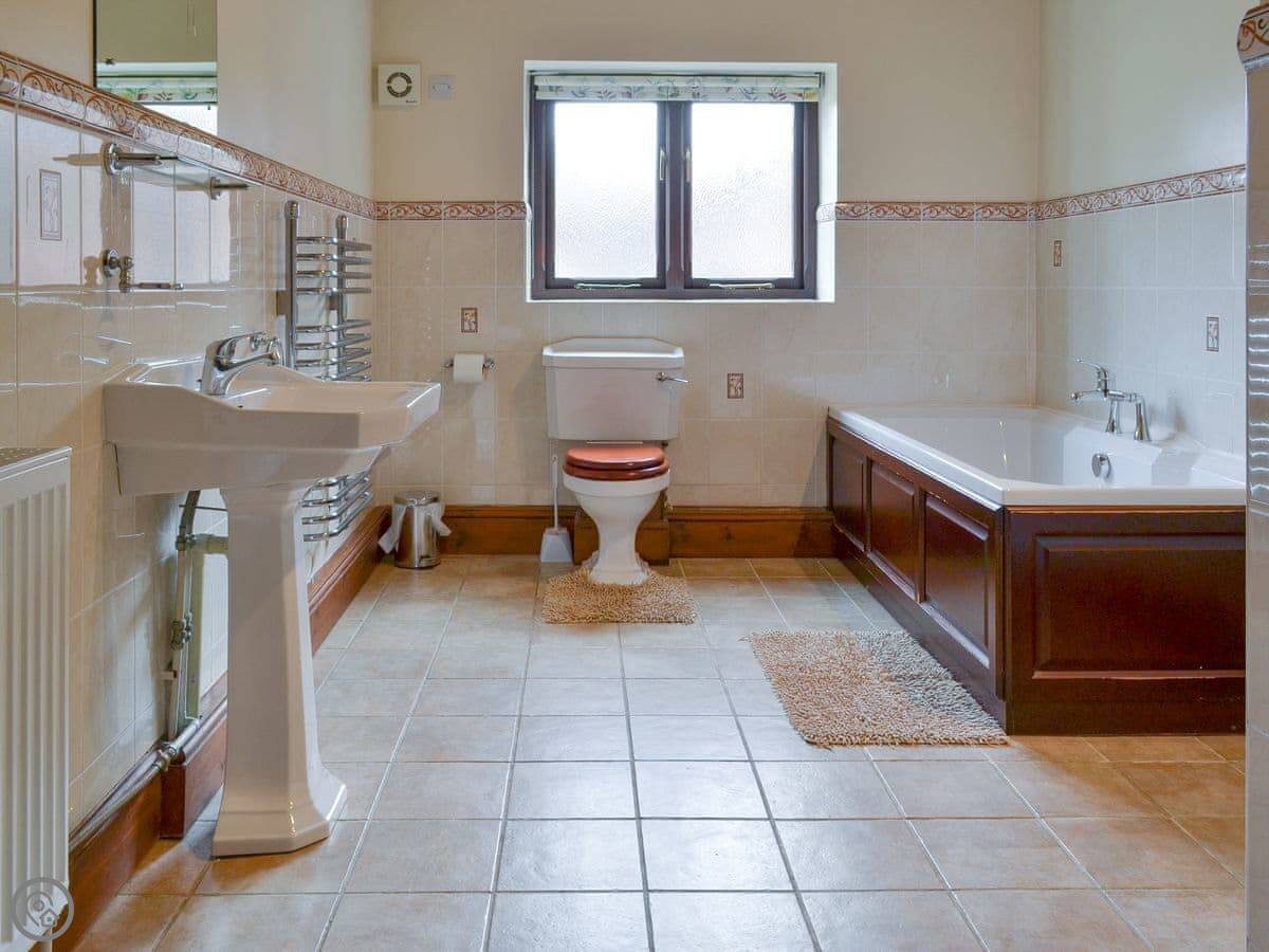 The barn sleeps six people. Three bedrooms, one bathroom. It's got a 3 Star rating, so it's comfortable and clean but not luxurious. The floors are tiles, I think. It used to be part of the farm buildings, so it's got a solid feel.