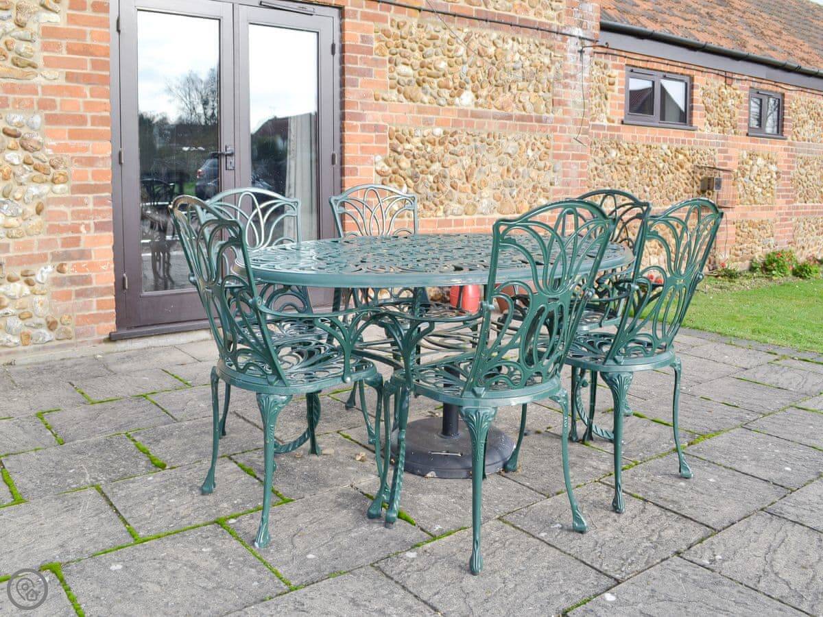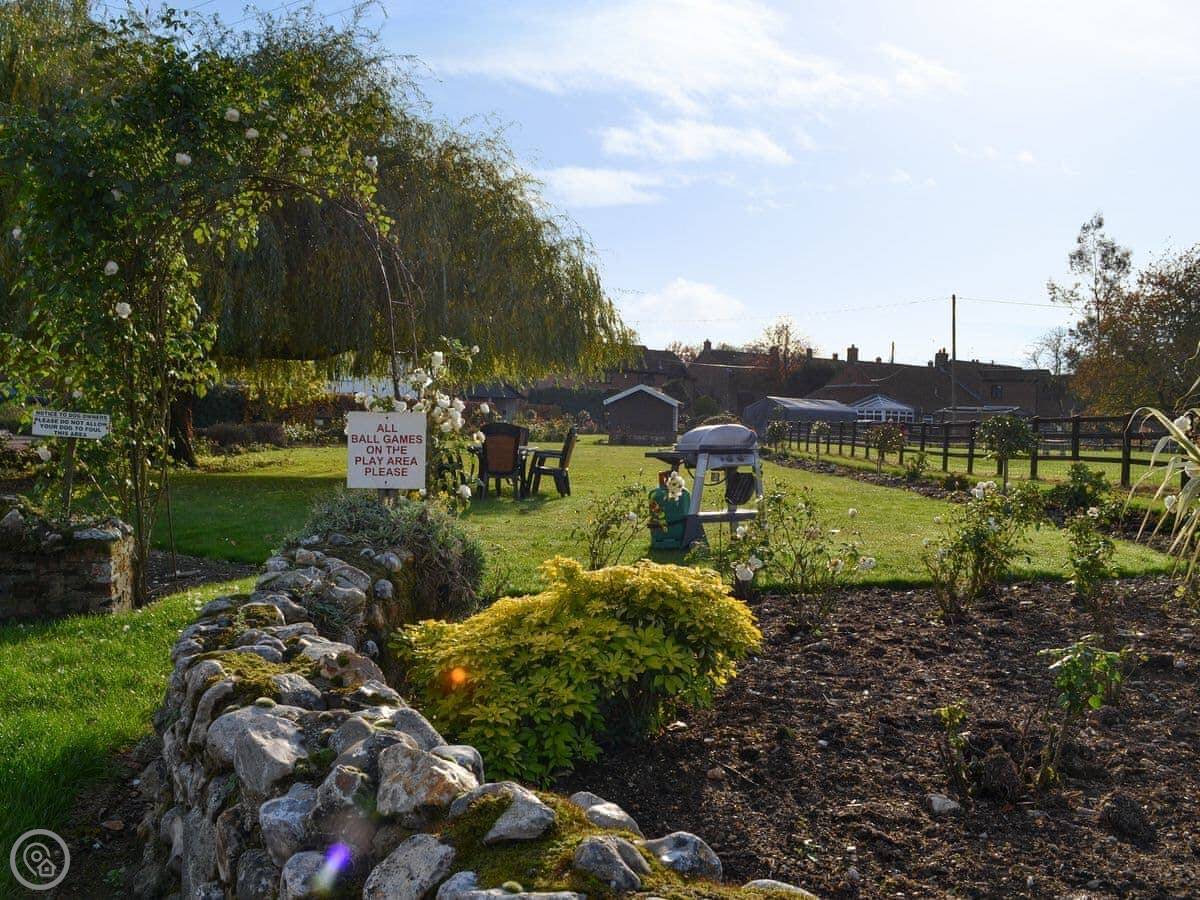 Outside, there's a private garden. It gets the sun in the morning. The farm itself is a working beef farm, but you won't see a lot of that from the barn. On site, there's a play area for children and a couple of fishing lakes. The fishing is included in the price.