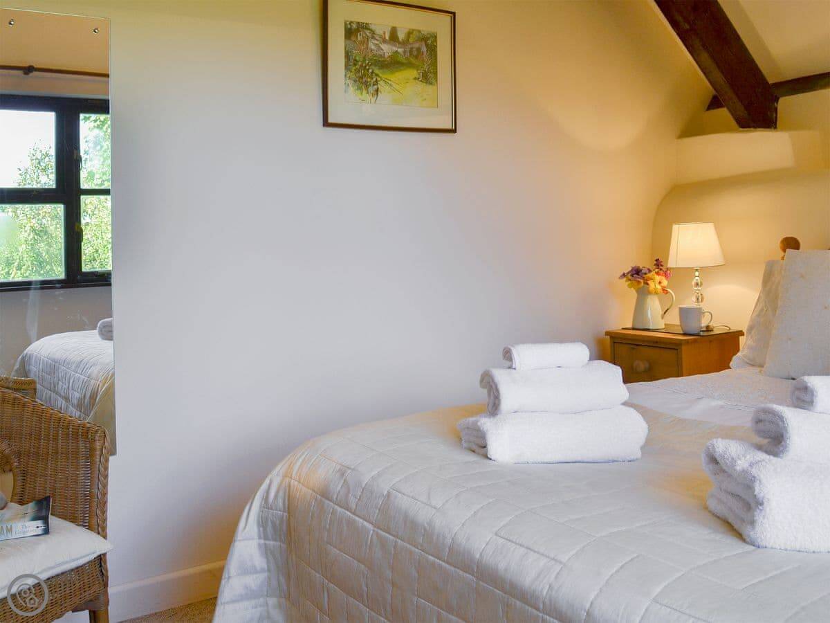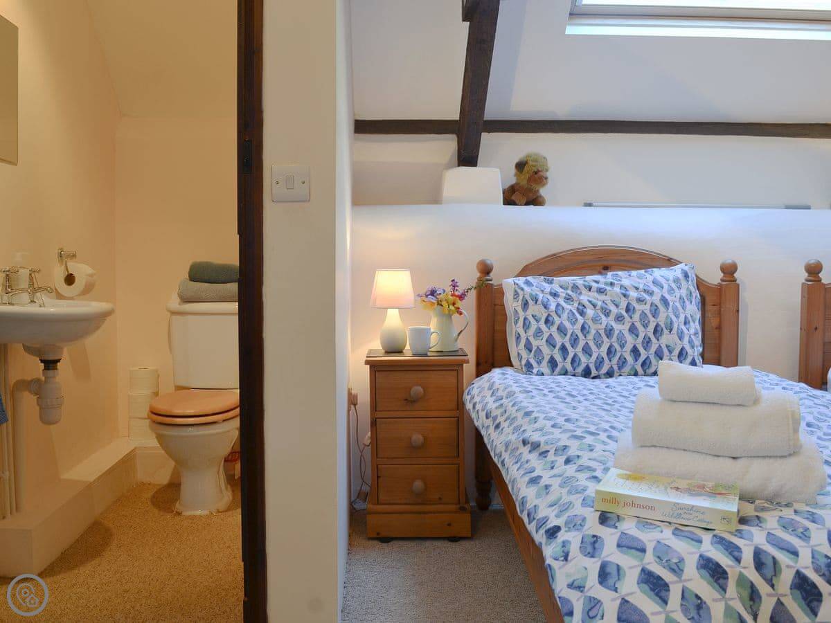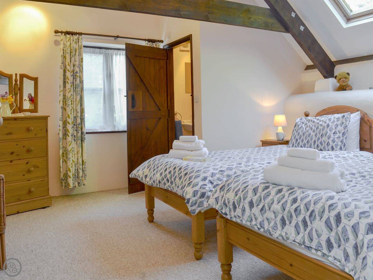 It sleeps four people in two bedrooms. There's one bathroom. It's got a 4 Star rating. That means it's comfortable and well-equipped. The stairs are open and a bit steep, which is common in barns.