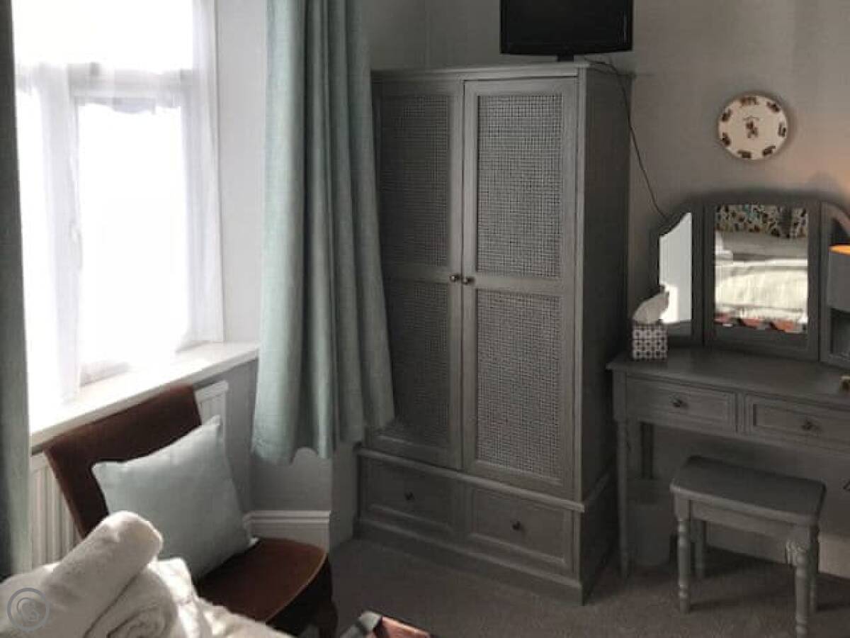 Outside, there's a garden. It's lawned and enclosed. You can park about twelve cars on the drive. There's a barbecue.