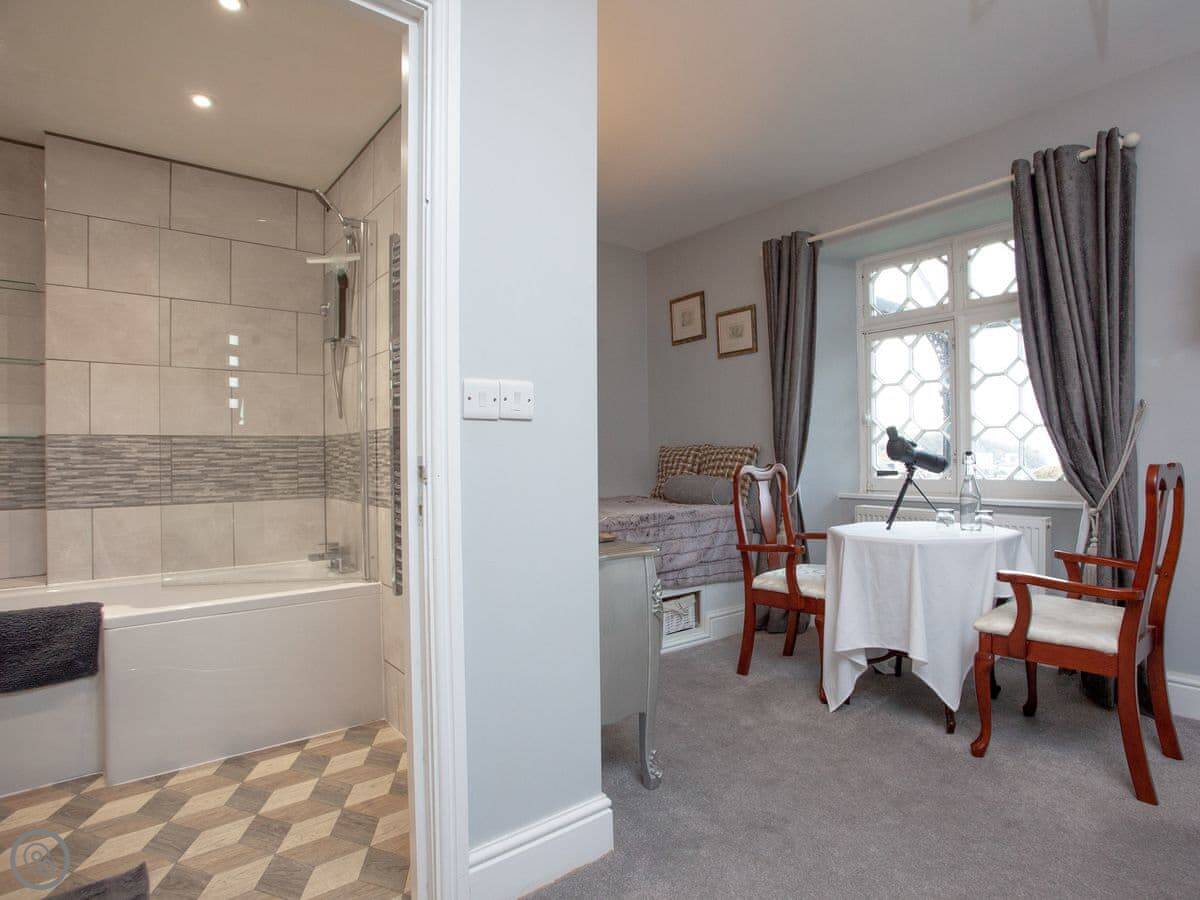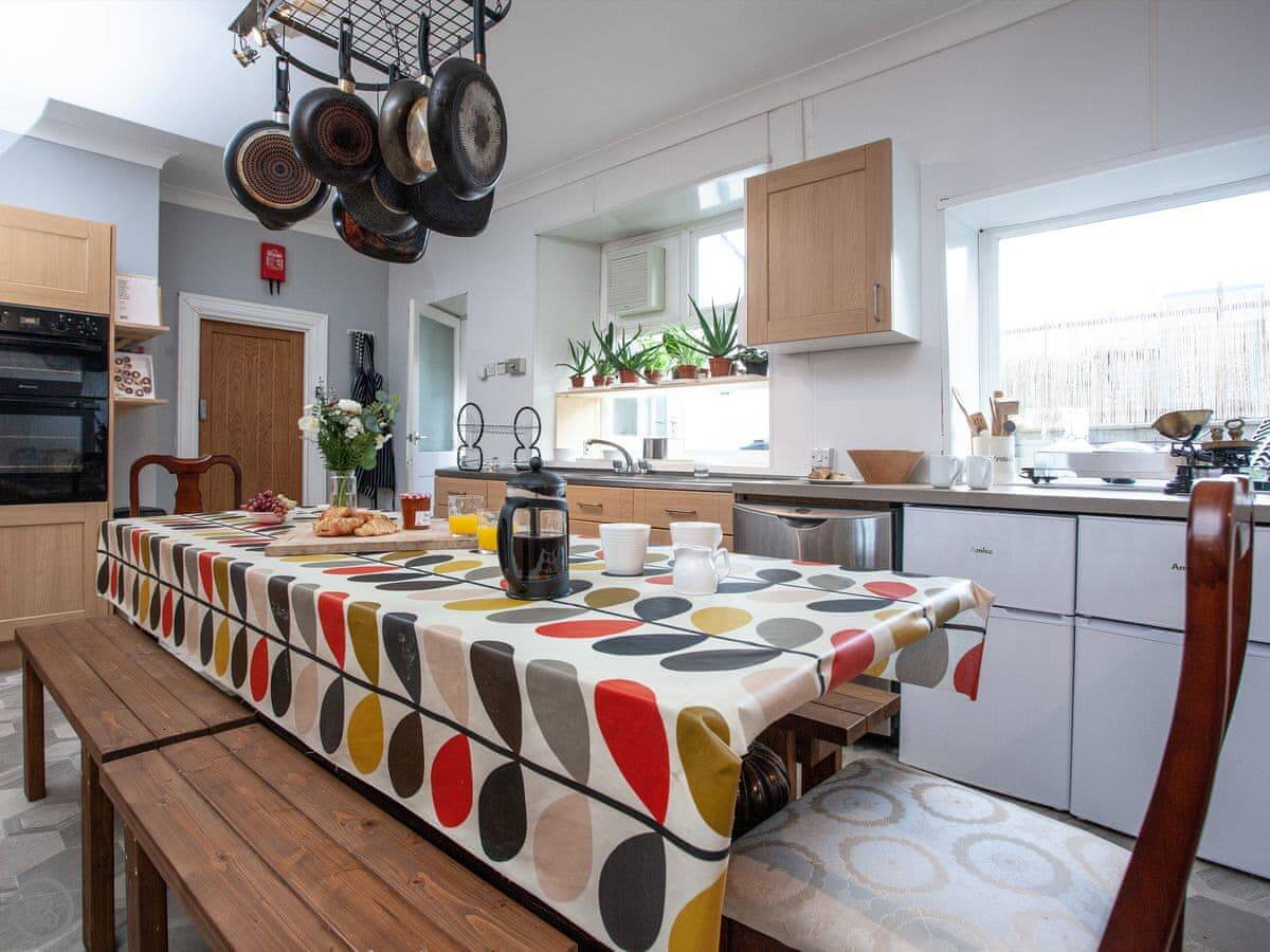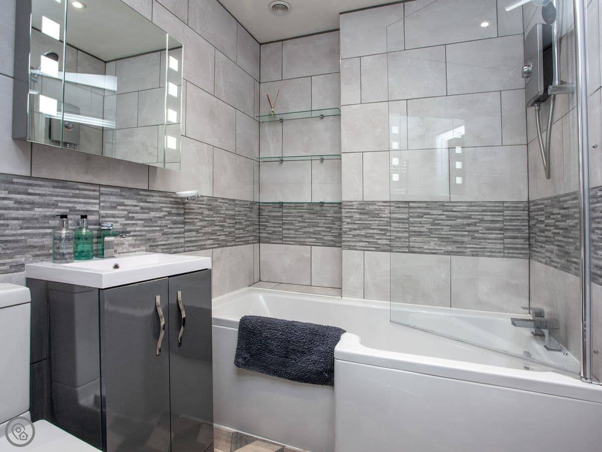 Downstairs there's a kitchen and a big living and dining area. On the lower ground floor there's a bar area with a pool table, Sky Sports, and some games. There's also a small snug room if you want somewhere quiet.