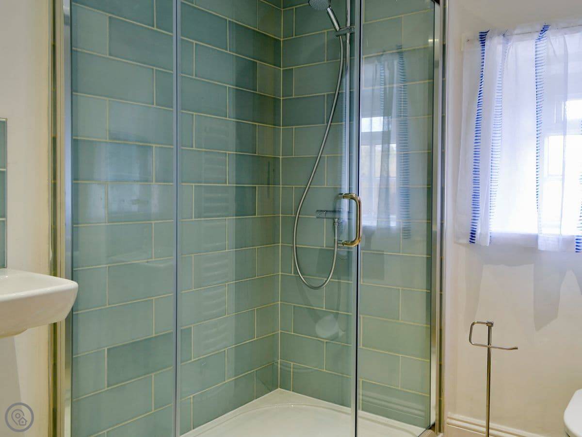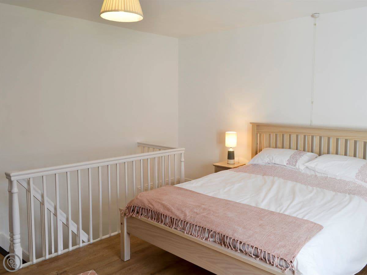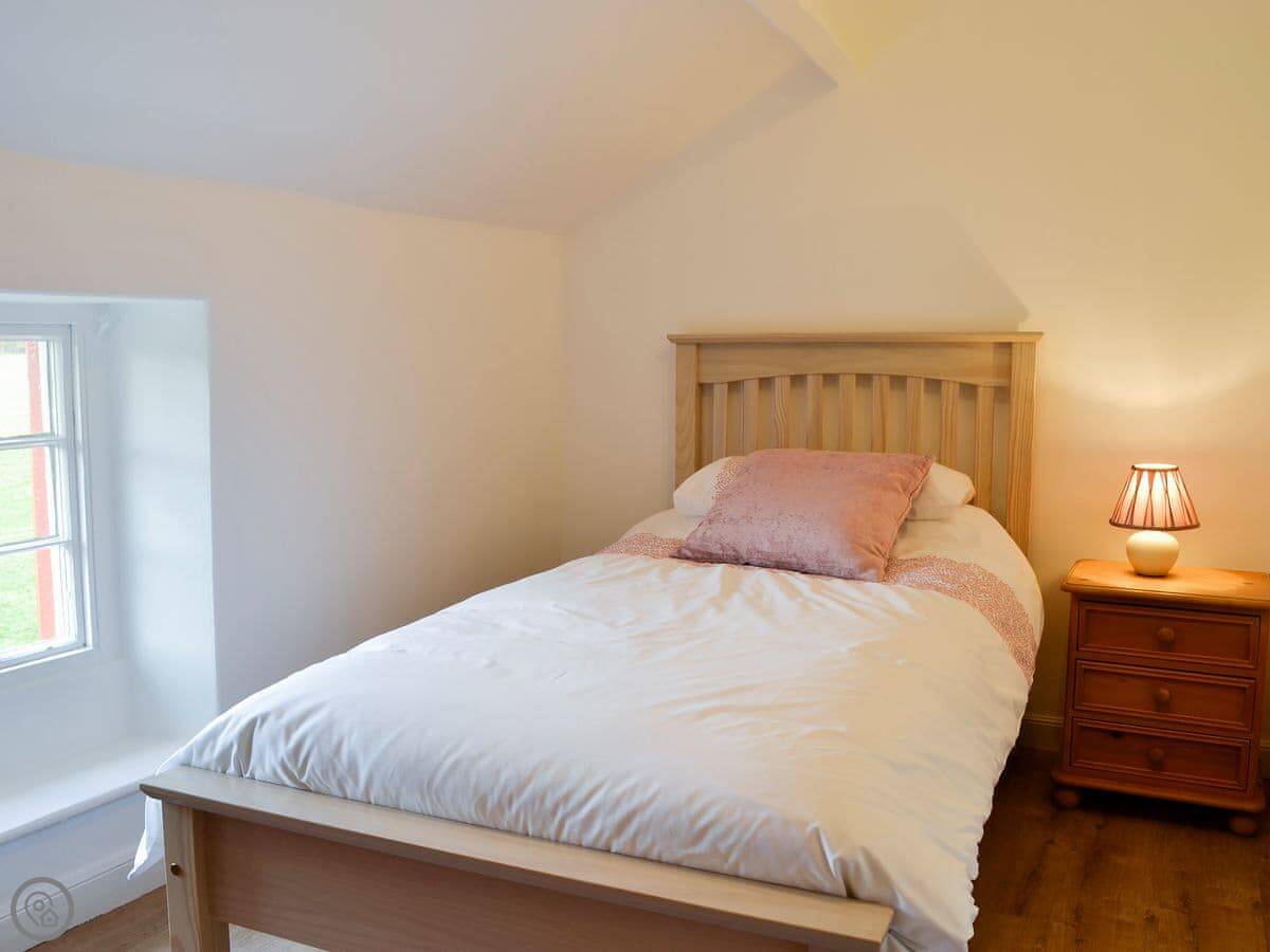 It sleeps three. There are two bedrooms and one bathroom with a shower. It's a 3 Star place, so it's comfortable and clean, not luxurious. It was all modernised a few years ago. The stairs are typical cottage stairs, so they're a bit steep and narrow. We've put a stairgate at the top.