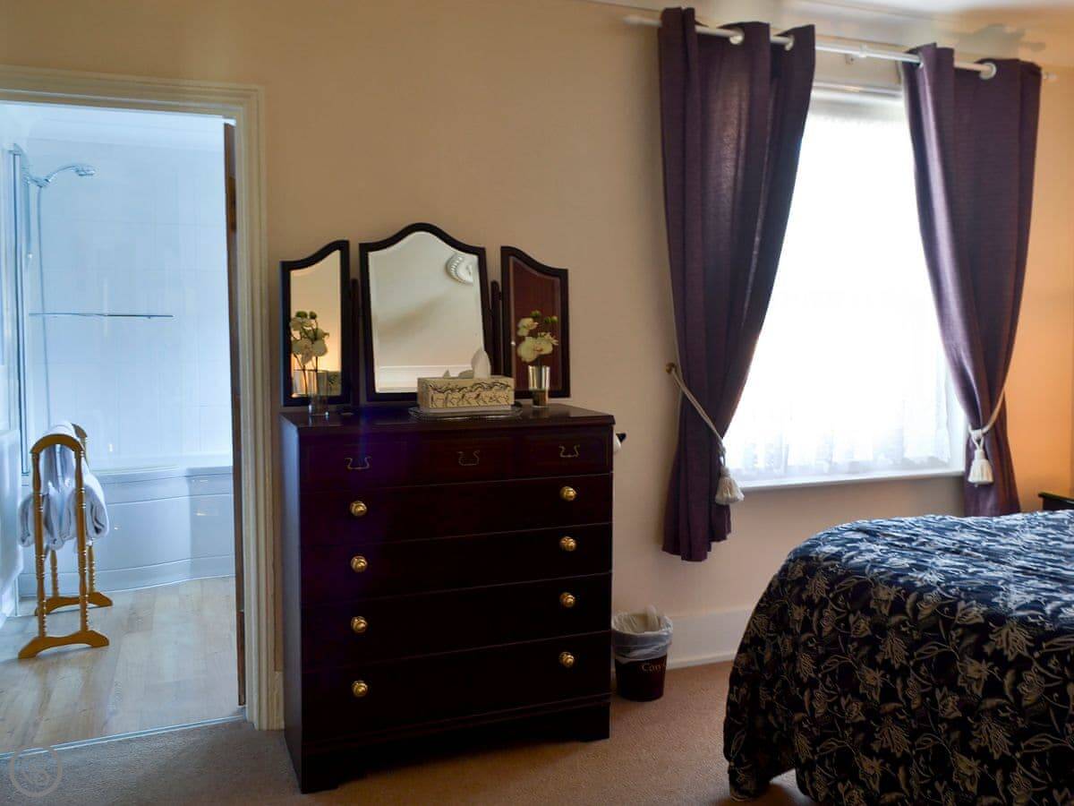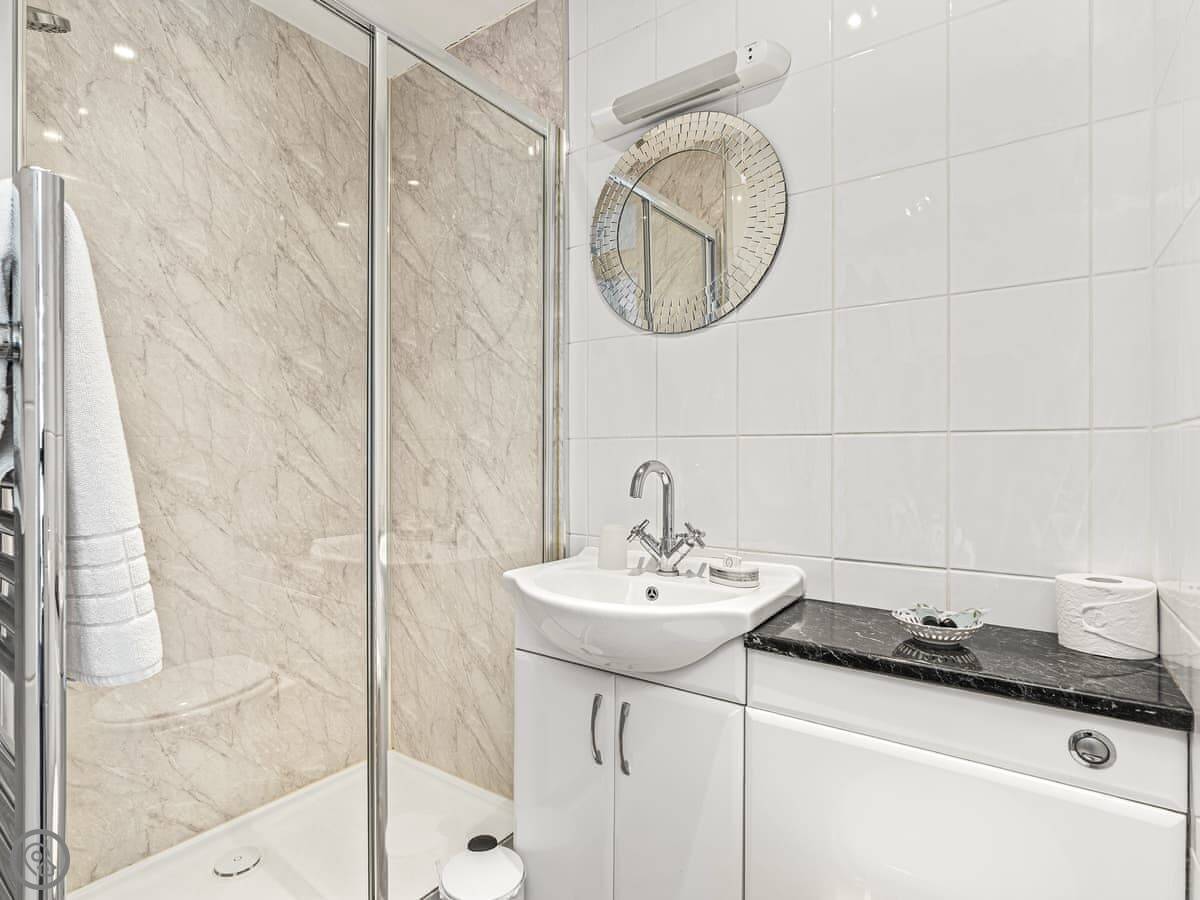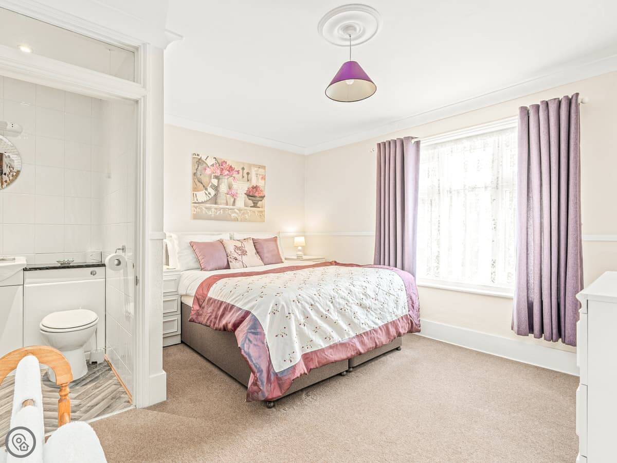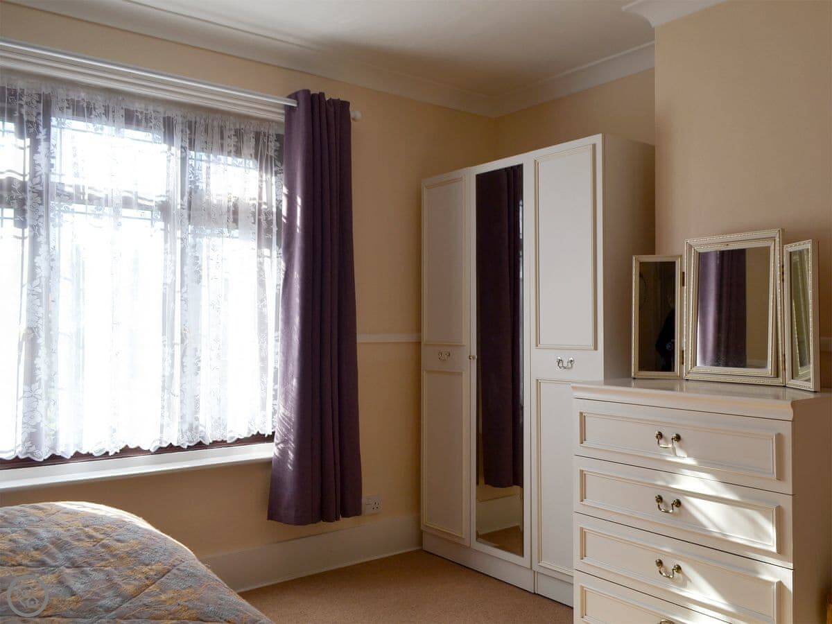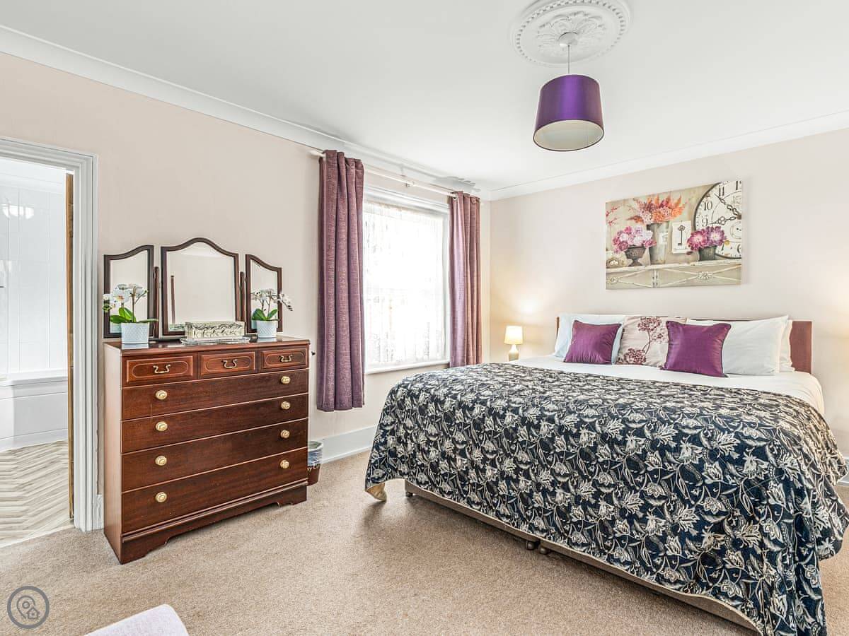 Because both bedrooms are ensuite and the living space is all on the ground floor, it sometimes works well for two couples or someone with limited mobility. There's a step at the front door.