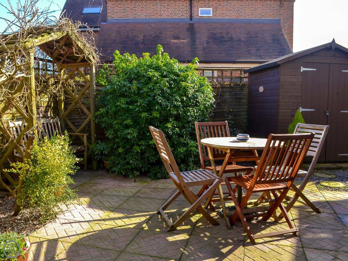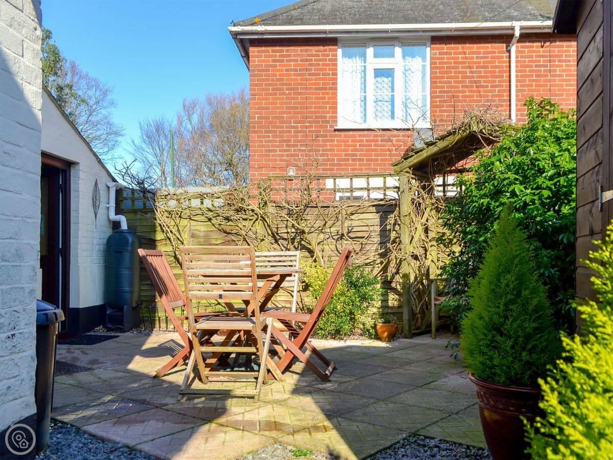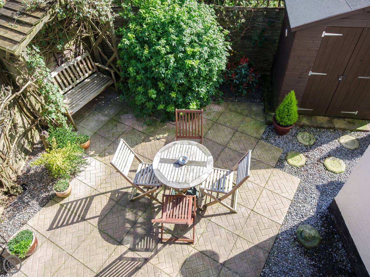 The garden is at the back. It's enclosed, which is why we allow up to two dogs. There's a patio and a bit of lawn.