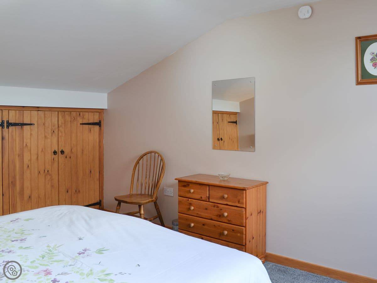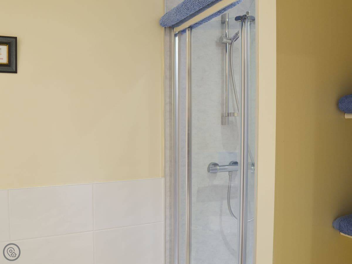 It's for two people. One bedroom, one bathroom with a shower. It's got a 4 Star rating, so it's comfortable and well looked after. The patio has a picnic bench. The garden bit is enclosed, if that matters.