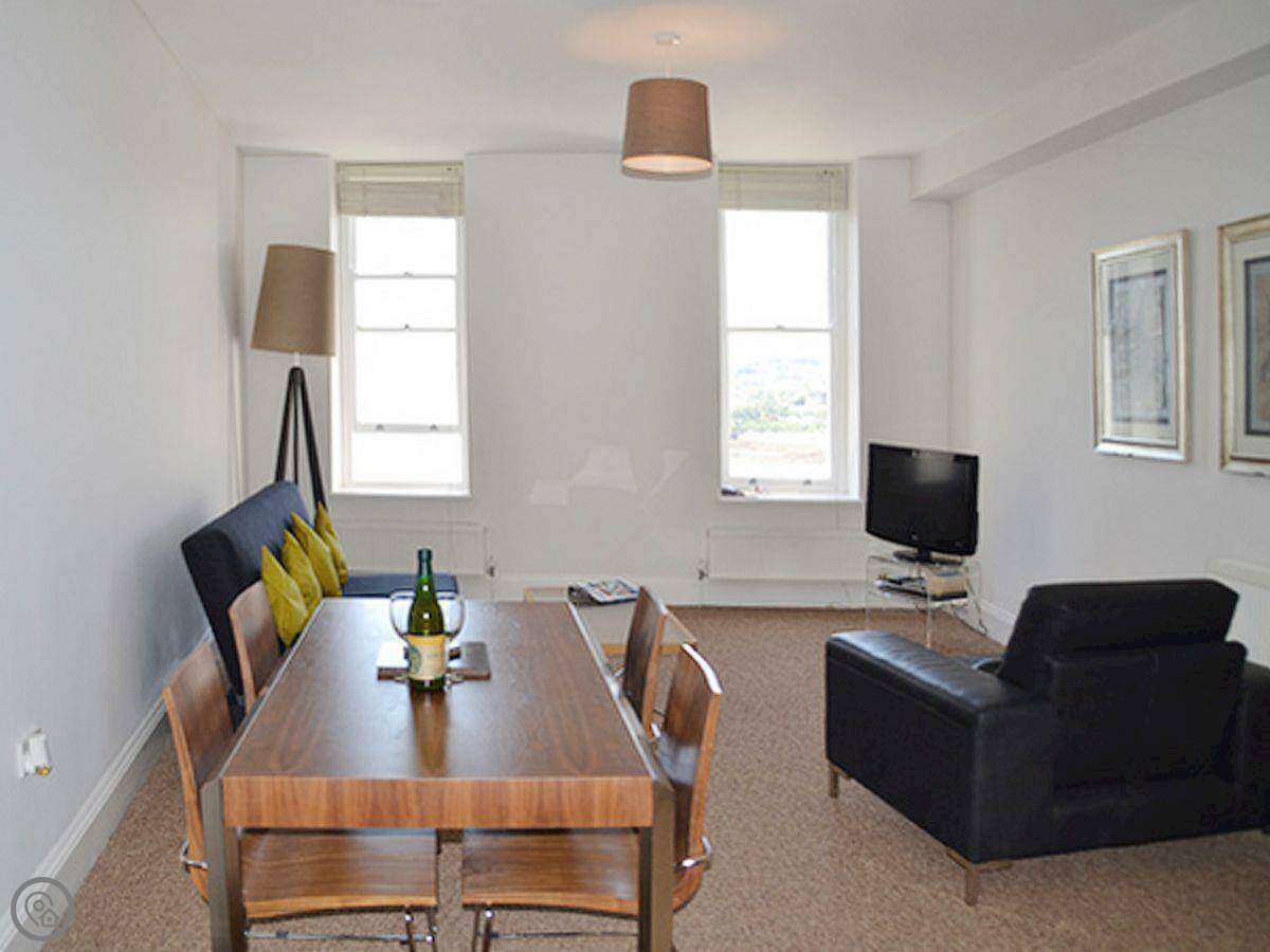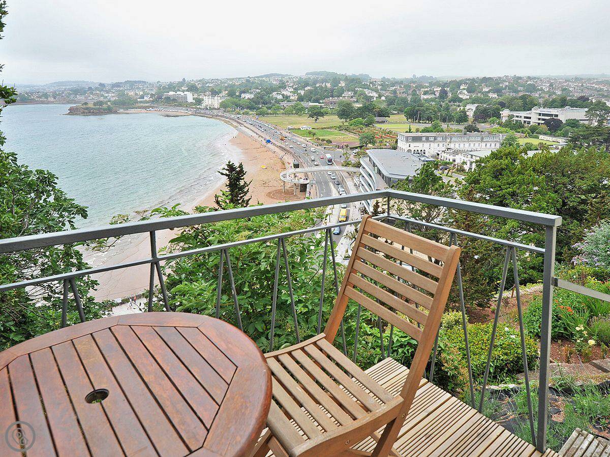 The main thing is the view. It faces south over the garden and you can see the sea. It's about a five minute walk down to the seafront and the marina. The town centre is close, maybe ten minutes on foot.