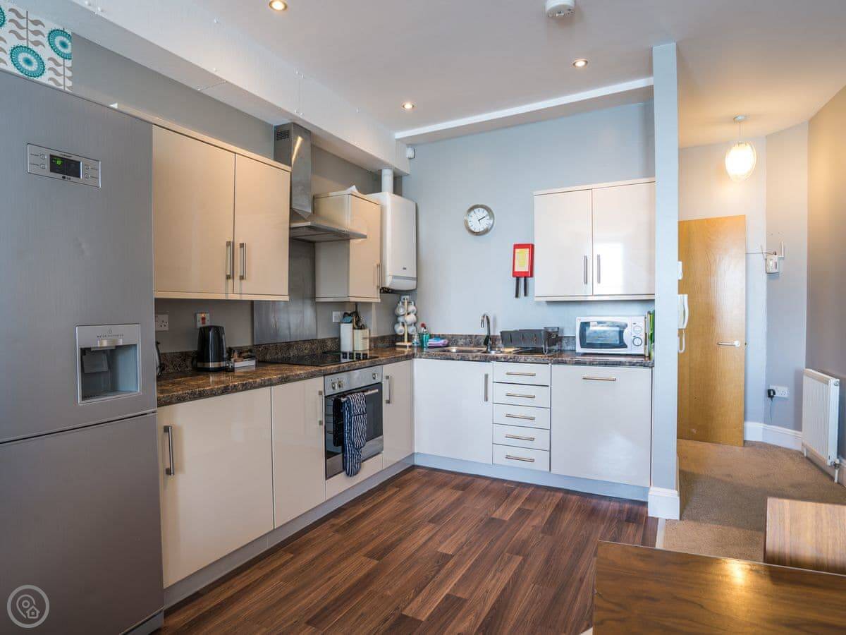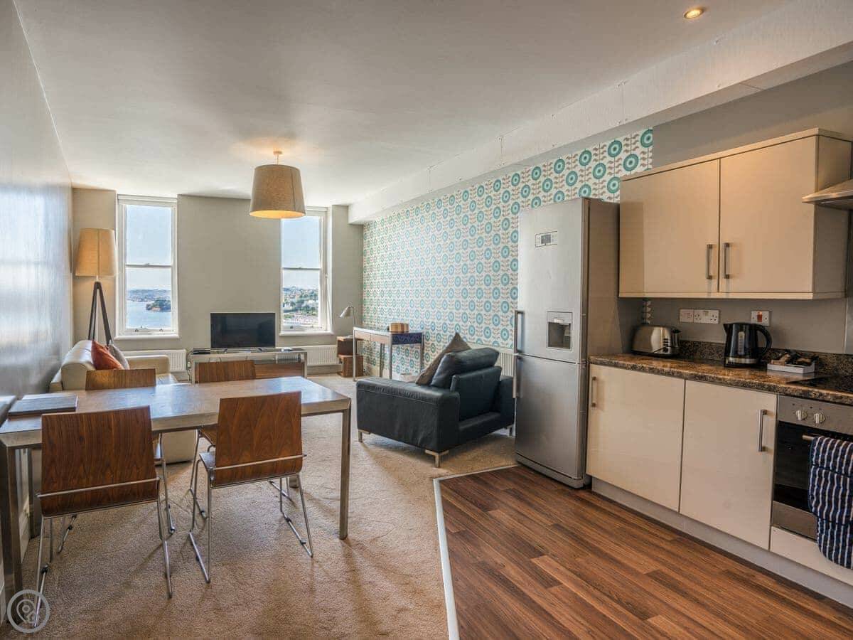 The apartment has parking on site, which is a relief in Torquay. There's a washing machine, a dishwasher, WiFi, and a TV. We provide bedding and towels. We can put a cot and highchair in for you if you need them.