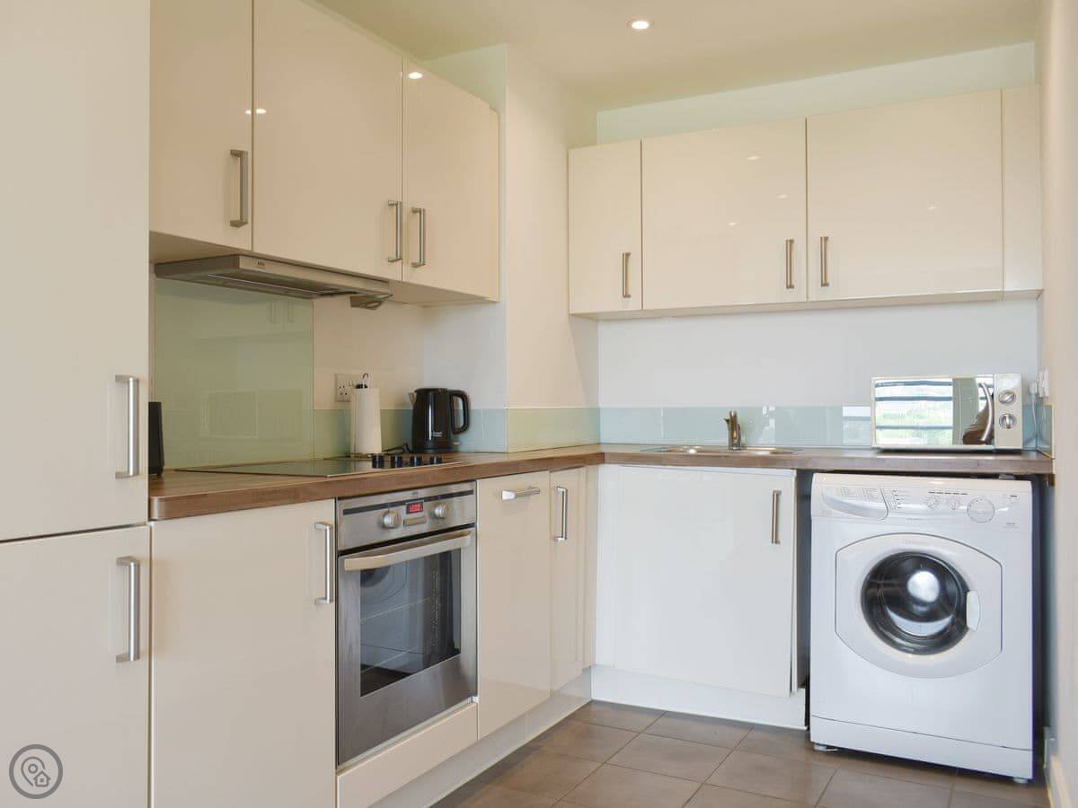 It's a one-bedroom flat, so it sleeps two. One bathroom. It's got a 4 Star rating, so it's well-equipped and modern. Everything is on one level, which is handy. The living area is open plan and quite light. There's underfloor heating.