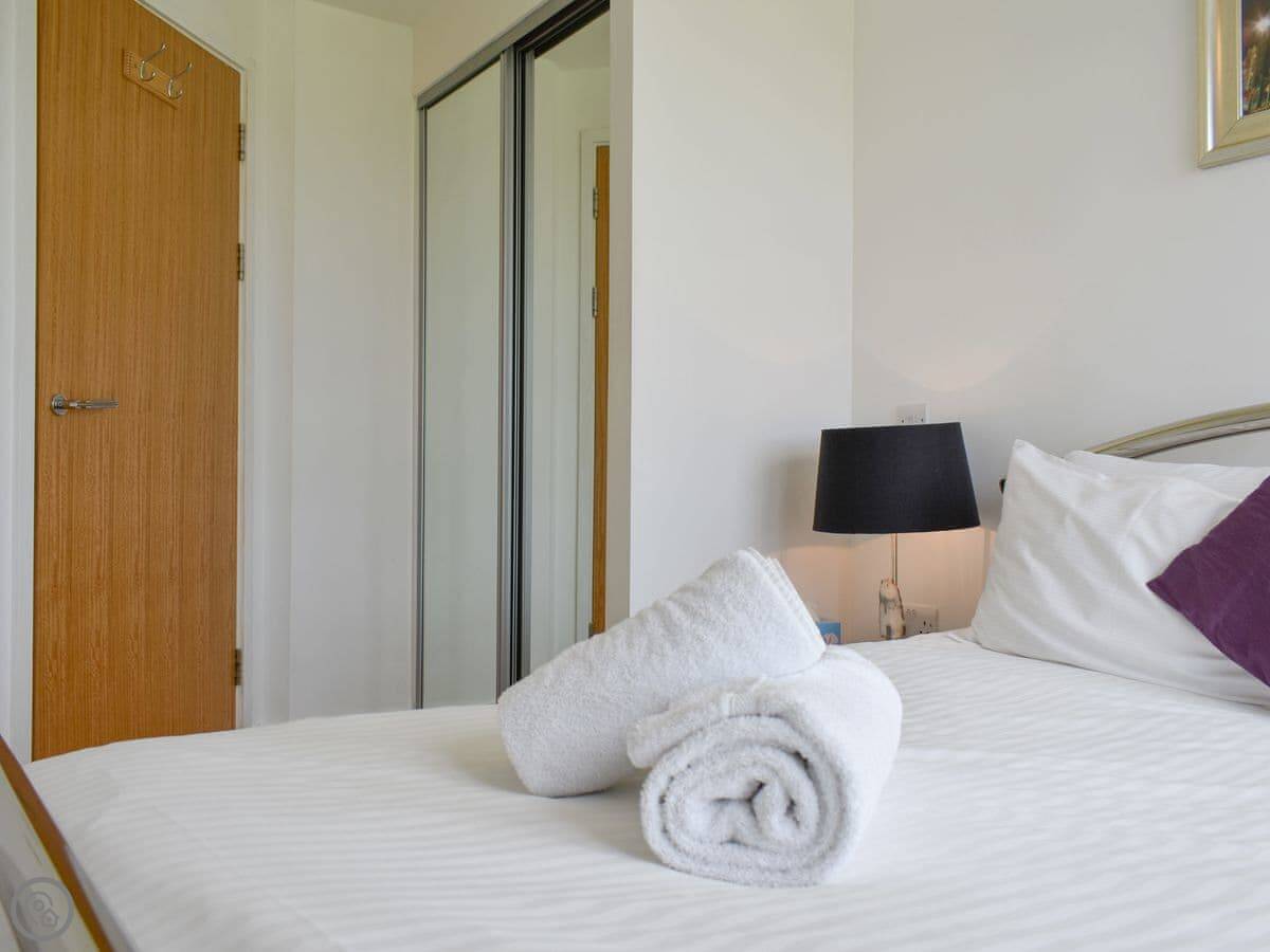 The One Bedroom is in that tall, red building on the Gunwharf Quays in Portsmouth. You might have seen it. They call it the Lipstick building. It's an apartment on one of the upper floors.