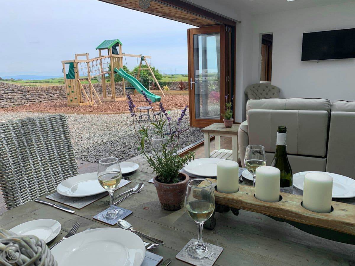 This very spacious, detached property is the ultimate getaway, with both a games room and an outdoor play area for children. It also has superb living, kitchen and dining areas for the rest of the family. Meadow View is perfect for families coming together, or for large groups needing somewhere to meet as a base and enjoy fun and time together. With the Roanhead Beach just over 3 miles away, and only a short drive into the South Lakes, this is superbly positioned accommodation for any occasion. Equally, you could just remain on site for a relaxing time away, parked behind the electric gates, and enjoy the on-site gymnasium, hot tub and games areas without the need to drive anywhere else. For those bringing infants and toddlers, the property provides ample equipment such as a baby bath with a seat insert for the main bath too, bottle maker, bottle warmer, steriliser, baby bouncer, electronic swing chair, a few toys, highchair, travel cot and a wooden cot which can be placed in any room. Beach 3½ miles. Shop 1 mile, pub ¾ mile and restaurant 1½ miles.