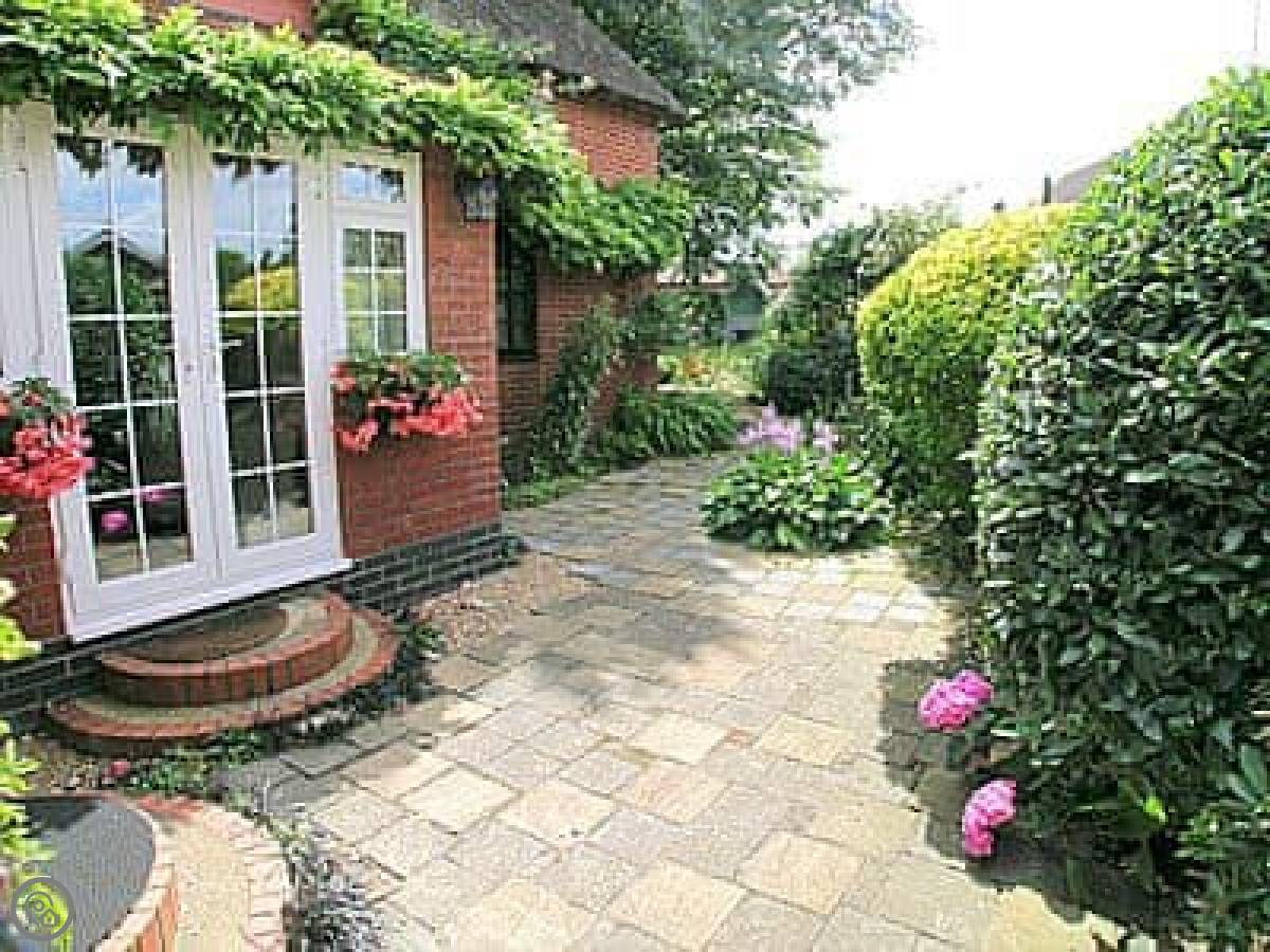 Starboard Cottage is a detached thatched place in Winterton on Sea. The thatch is nice but it's the quiet crescent that's the real benefit. It's very peaceful.