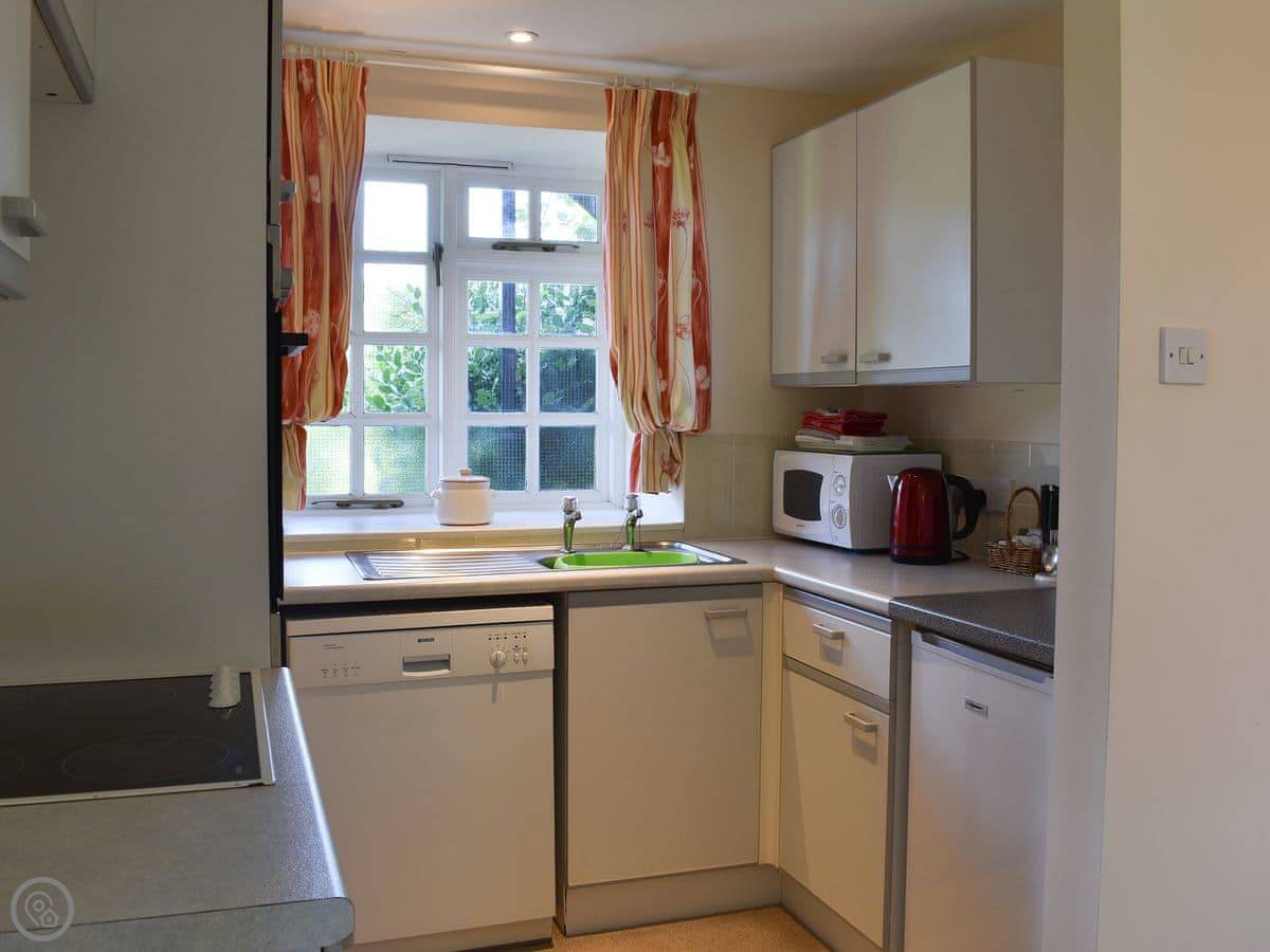 Facilities are straightforward. It's open plan, with a kitchen, dining and living area. There's a dishwasher, TV, and parking right outside. Bedding and towels are included. There's an electric vehicle charger on site.