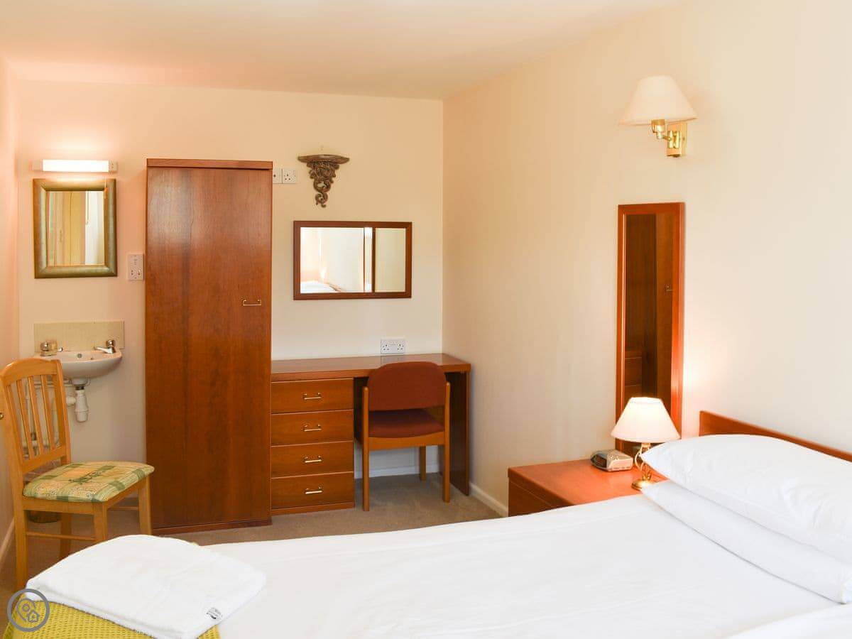 It sleeps two. One bedroom, one bathroom. It's a 3 Star rating, which means it's comfortable and clean. It's all on the ground floor and the doors are wide, so it works well if you have mobility issues or use a wheelchair. There's a walk-in shower, not a bath.