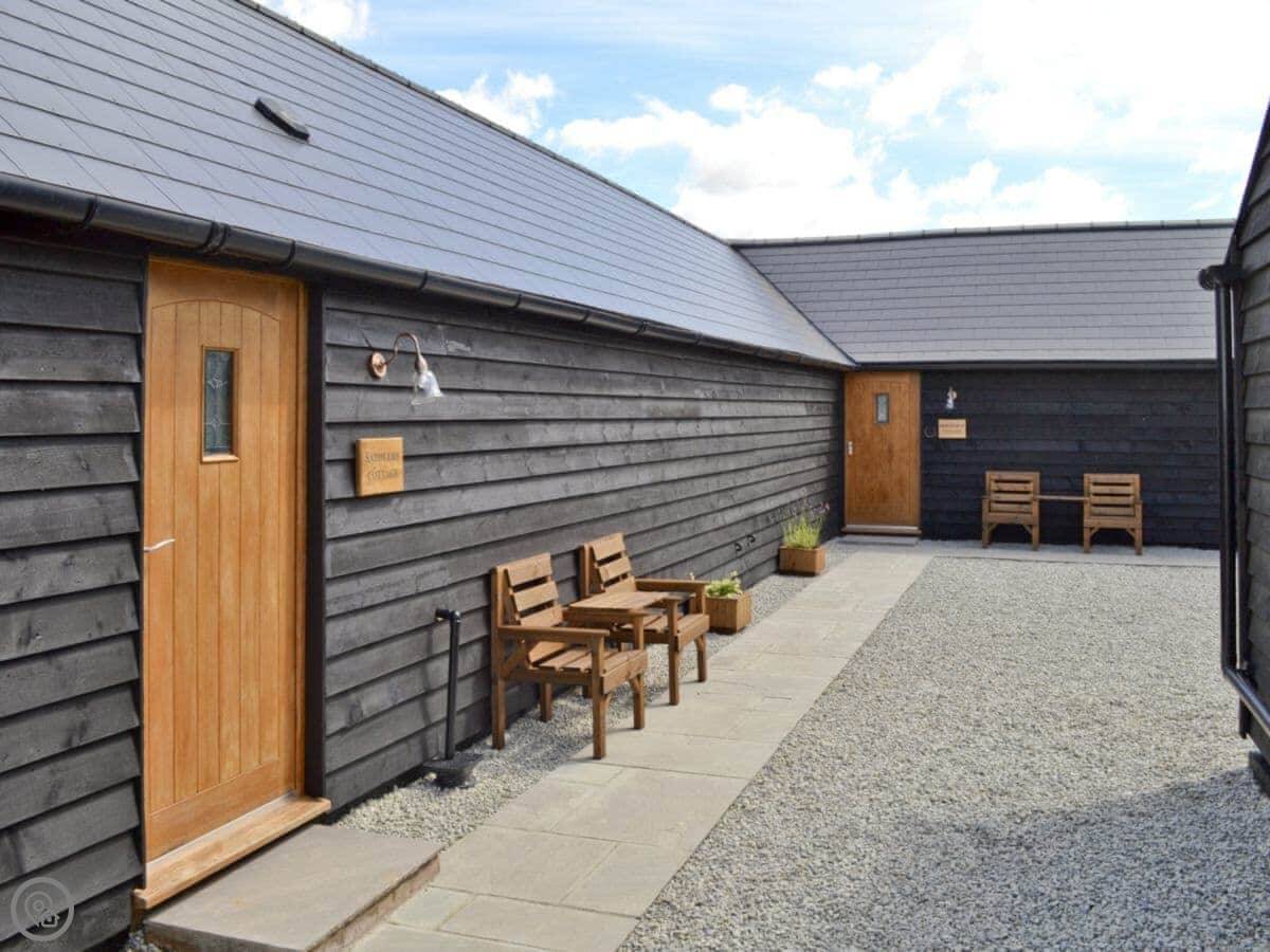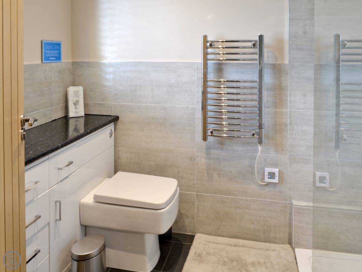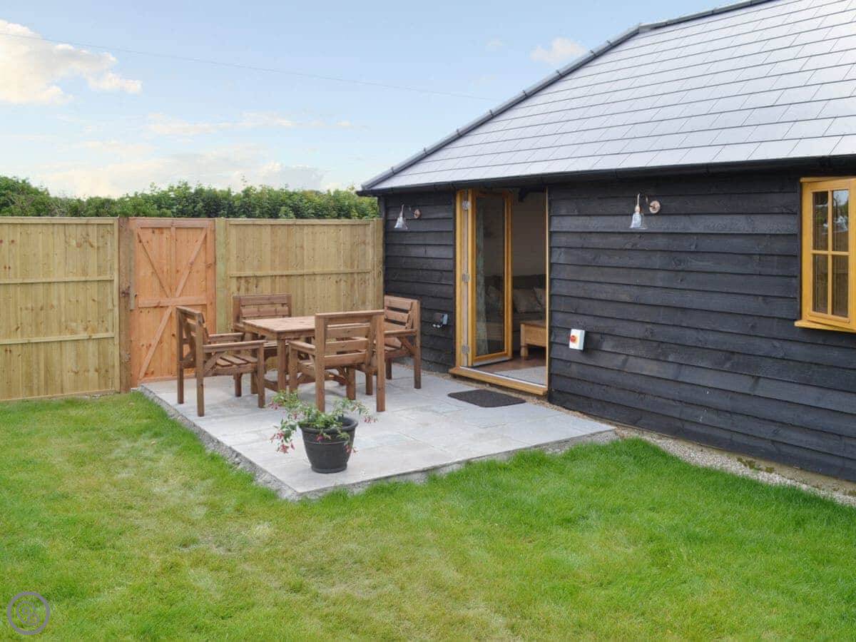 It sleeps four. Two bedrooms, both with their own bathrooms. Everything's clean and in good order. It's got a Four Star rating. The garden is enclosed and private, which is good if you've got dogs or kids. You can bring up to two dogs.