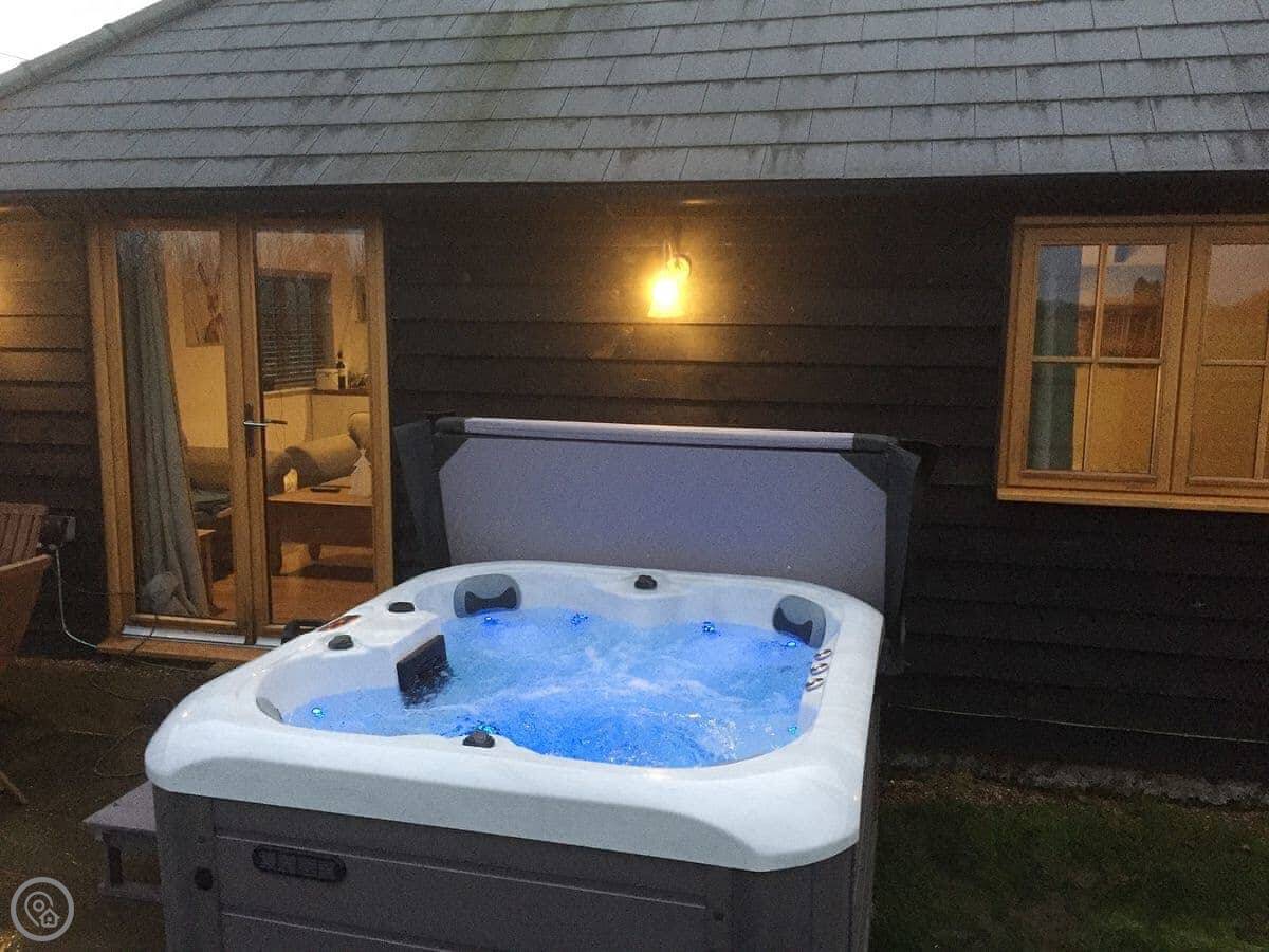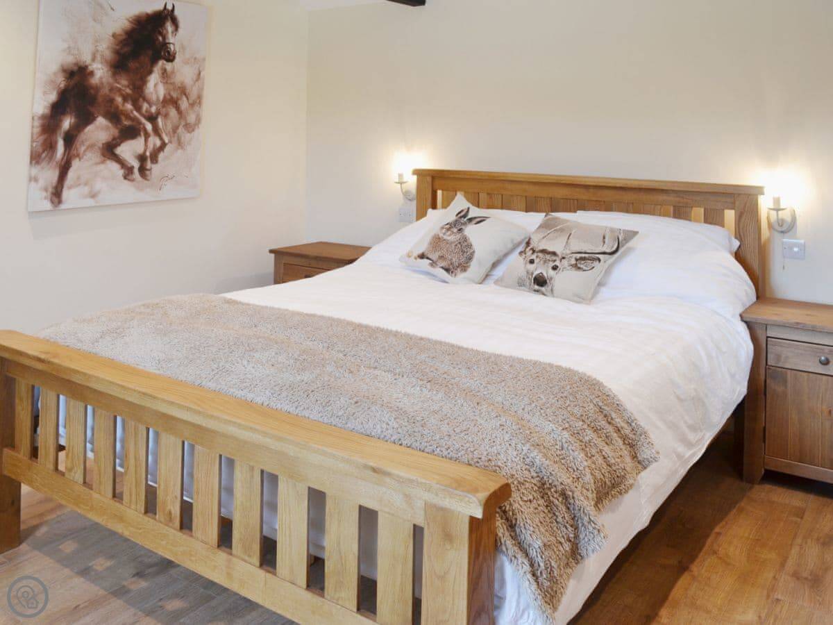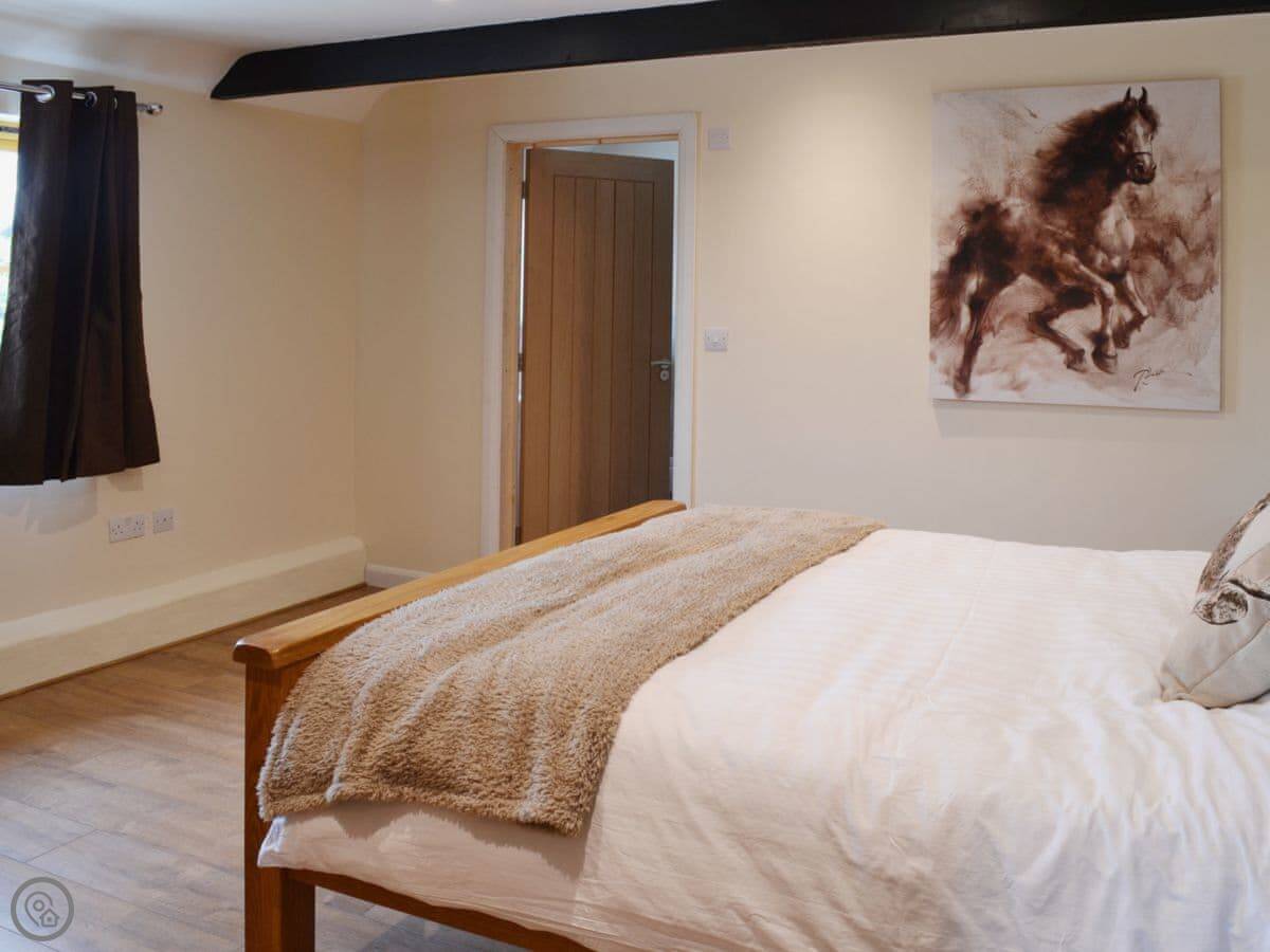 It sleeps four. Two bedrooms, both with their own bathrooms. Everything's clean and in good order. It's got a Four Star rating. The garden is enclosed and private, which is good if you've got dogs or kids. You can bring up to two dogs.