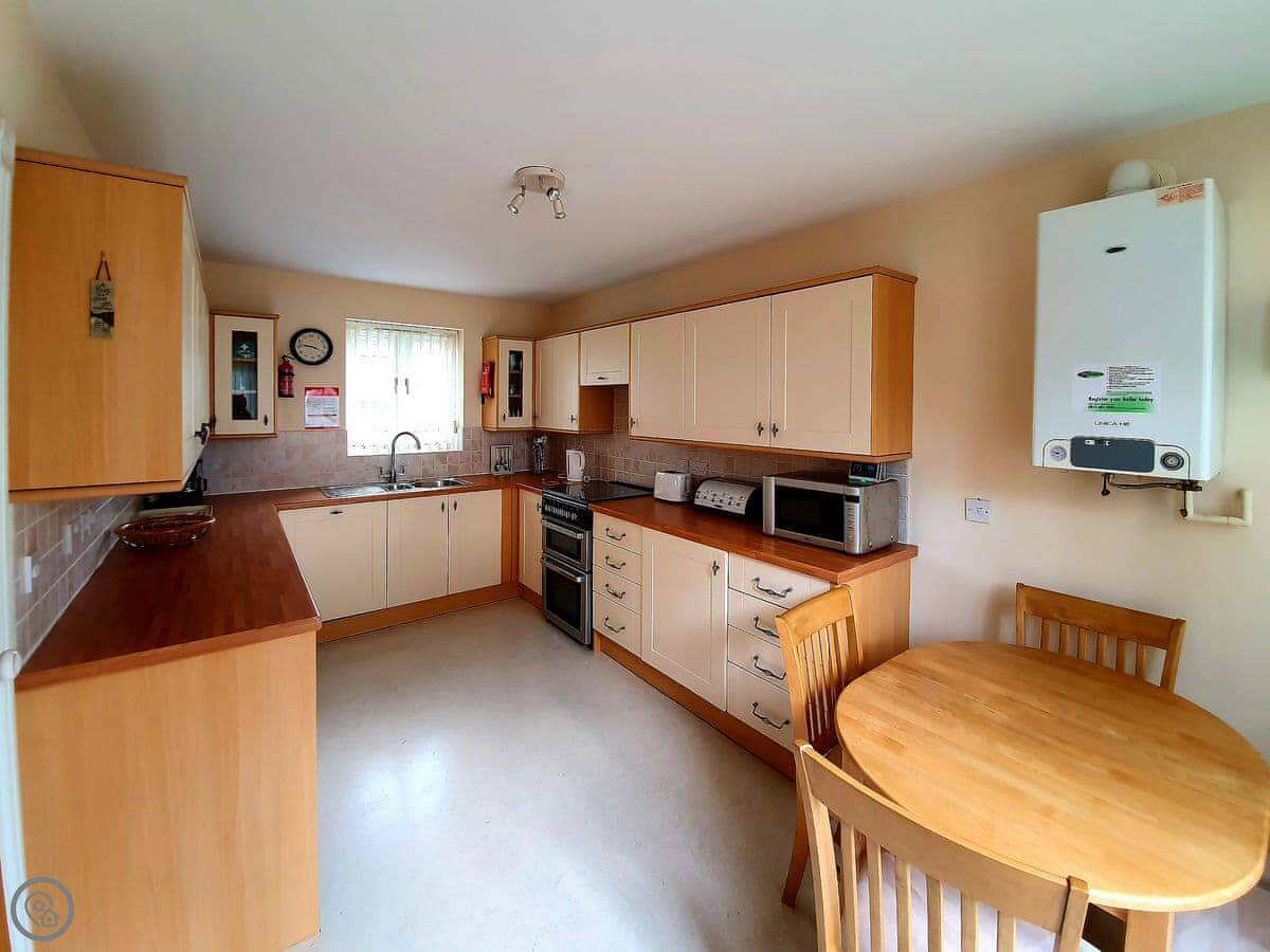 The house sleeps four, across two bedrooms. There are three bathrooms, which is more than you'd expect. One is downstairs and is a bit small, but it's handy. The rating is 4 Star. It's a modern and comfortable place.