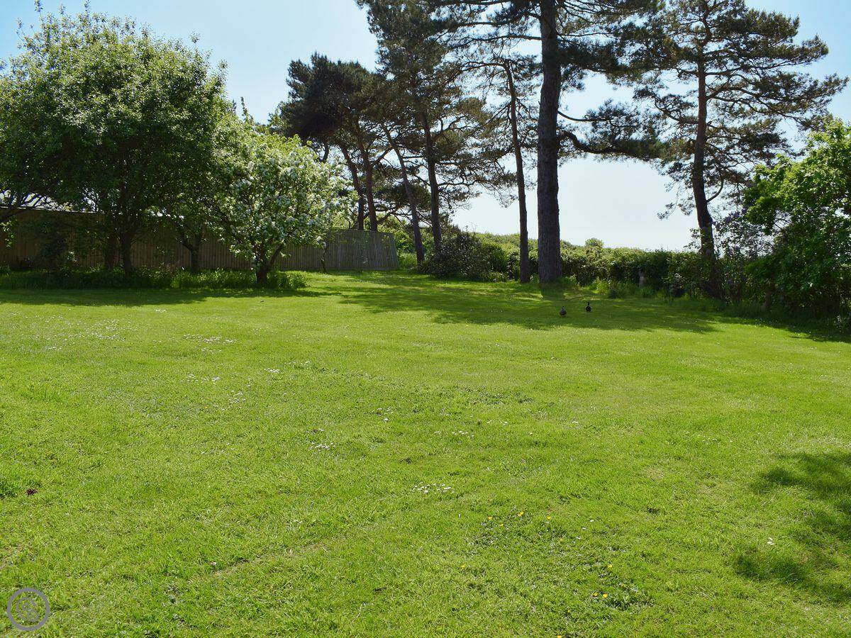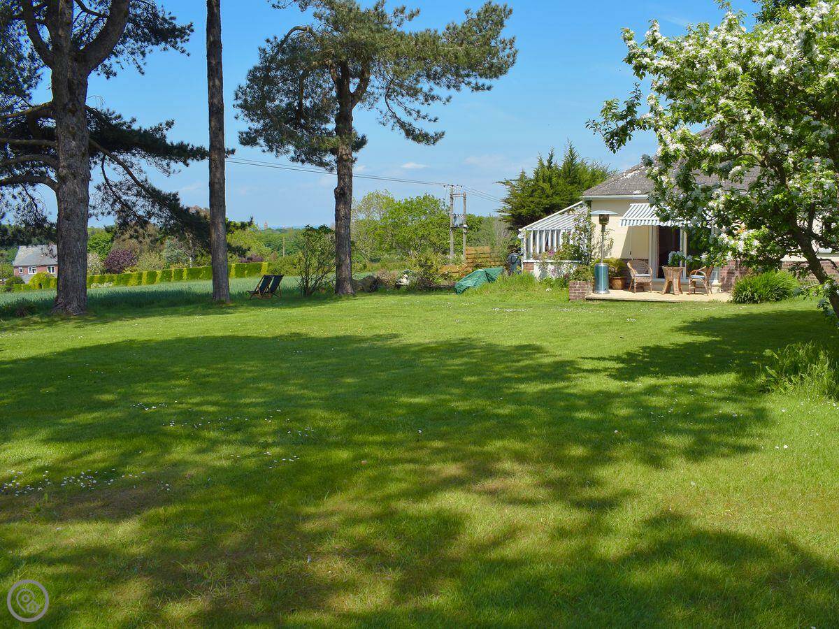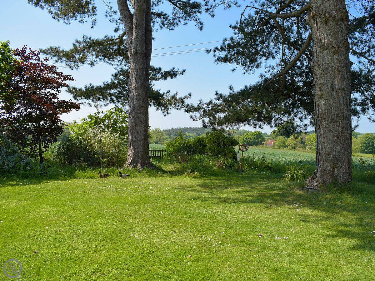 The garden is mostly lawn. We get ducks wandering over from the field pond sometimes, and you might see herons. There’s a patio area with furniture.