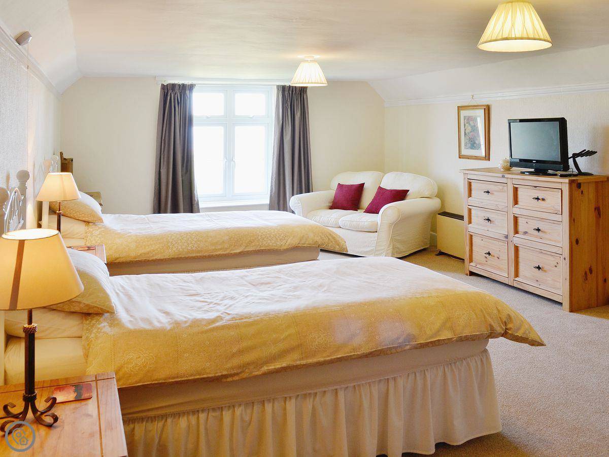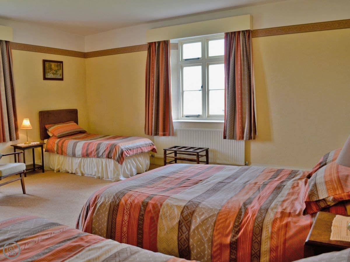 It sleeps up to eleven people across four bedrooms. That's why it often works for two families. There are two bathrooms. It's got a 4 Star rating. The rooms are genuinely big, which you don't always get in old houses.