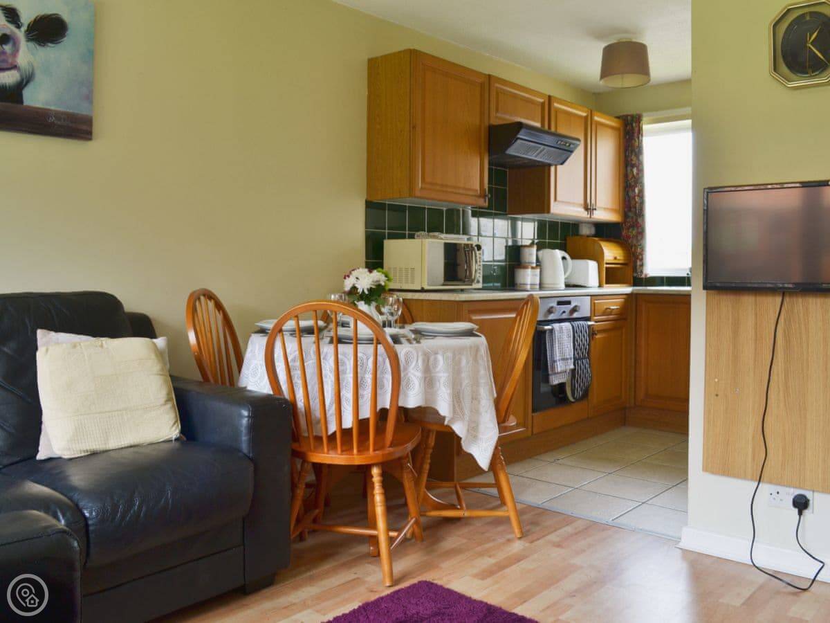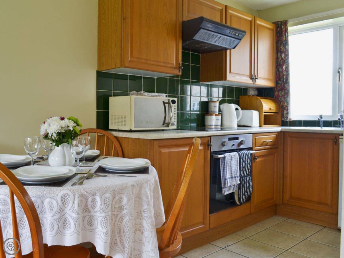 It sleeps four. Two bedrooms, one bathroom. The rating is 3 Star, so it's comfortable and clean. You can bring one dog.