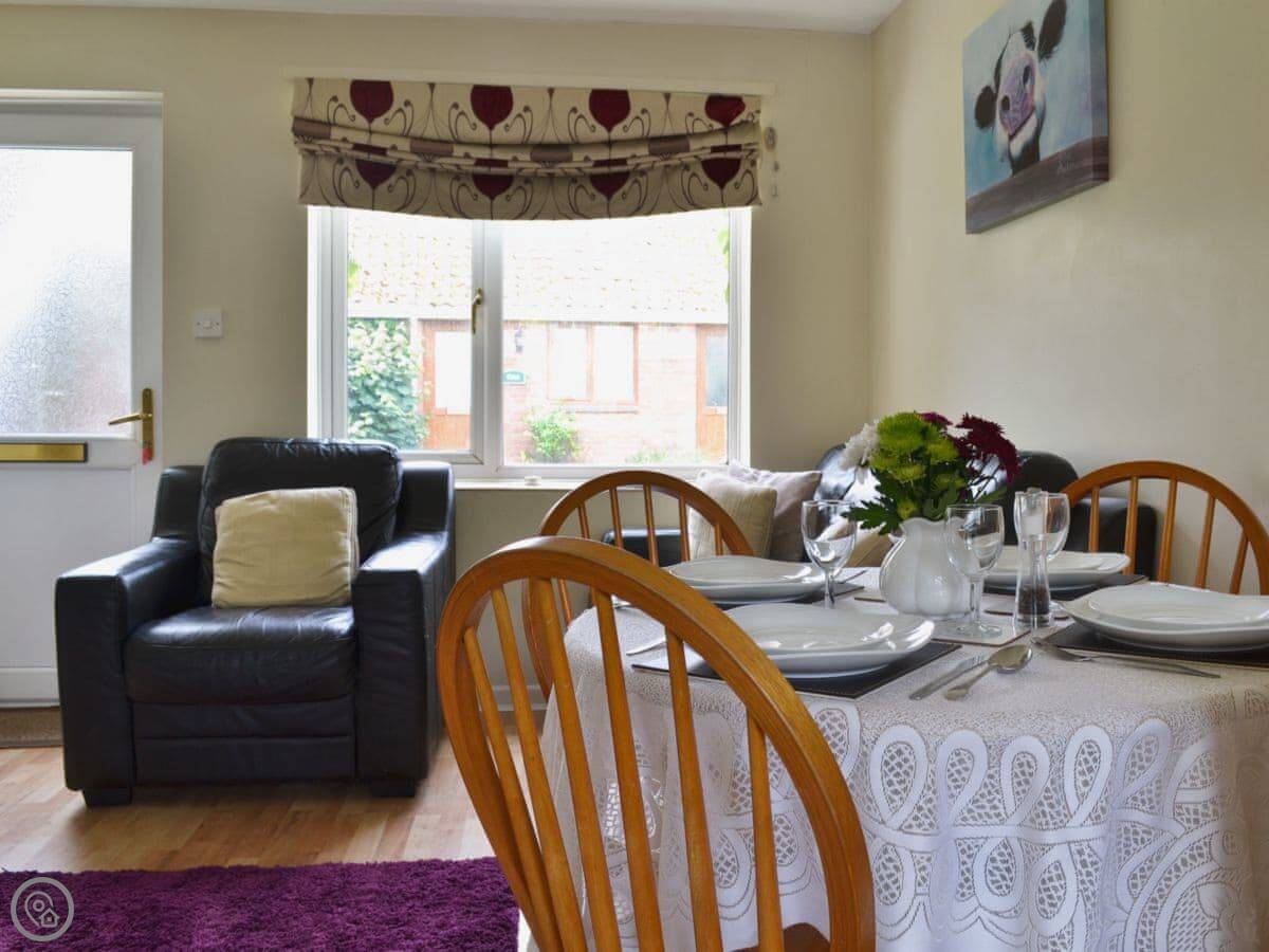 Birch Cottage is one of five cottages on Withy Grove Farm, near East Huntspill. It's a working dairy farm, so you'll hear and see the cows. The cottages are single-storey, built around a courtyard.