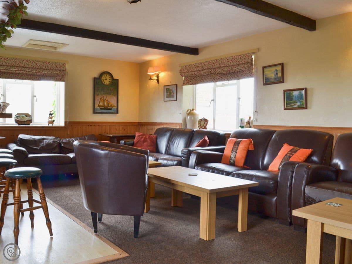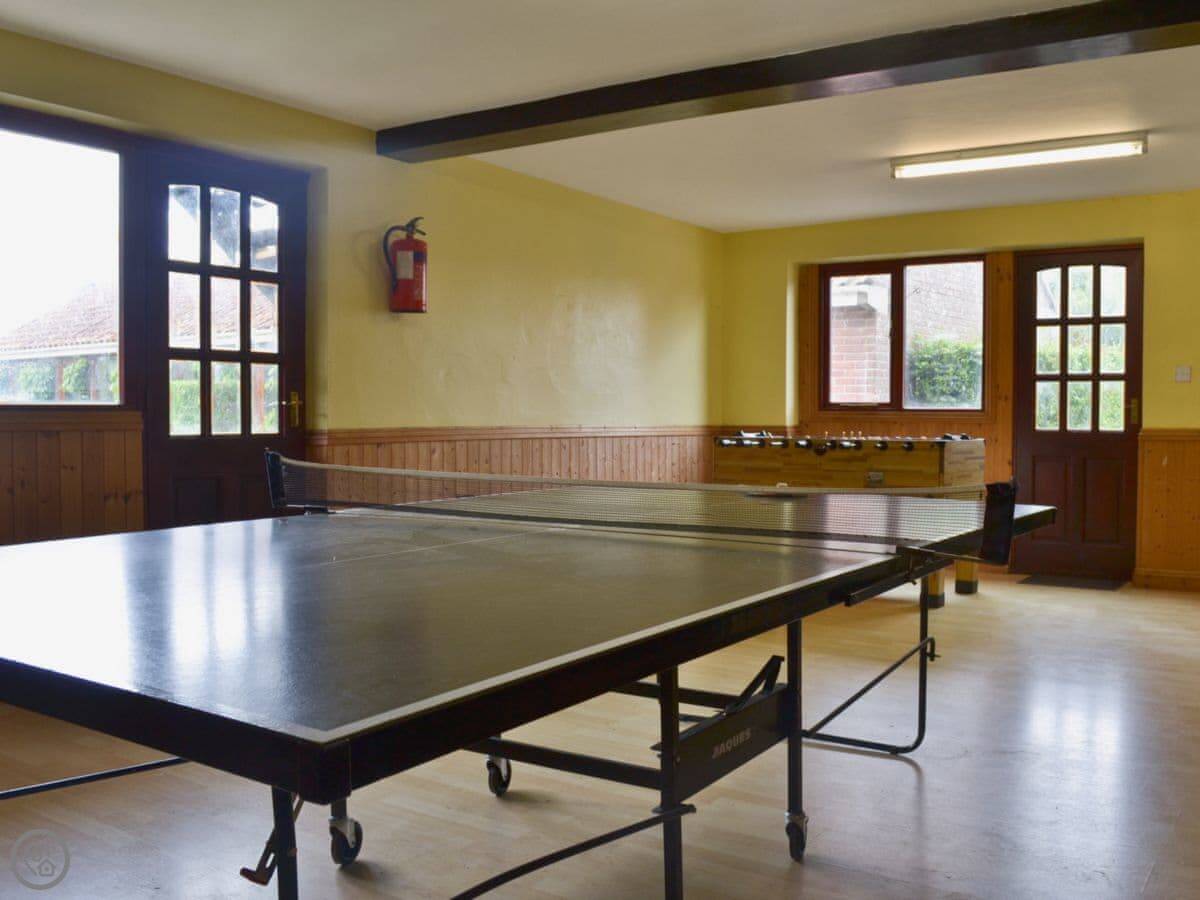 The farm has animals. Chickens, sheep, horses, a Shetland pony called Alf, and two small goats. Kids usually like it. There's a shared heated outdoor pool open in summer, a games room with a pool table, and a skittle alley. The owners run a small bar some evenings with quizzes.