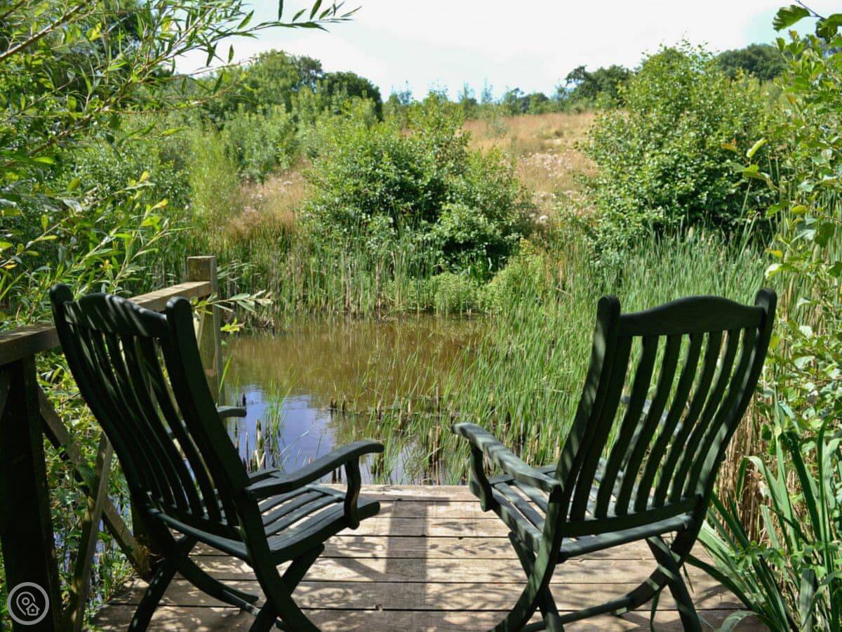 You can walk around our land. There's a summerhouse by the pond. The lanes and footpaths around here are quiet.