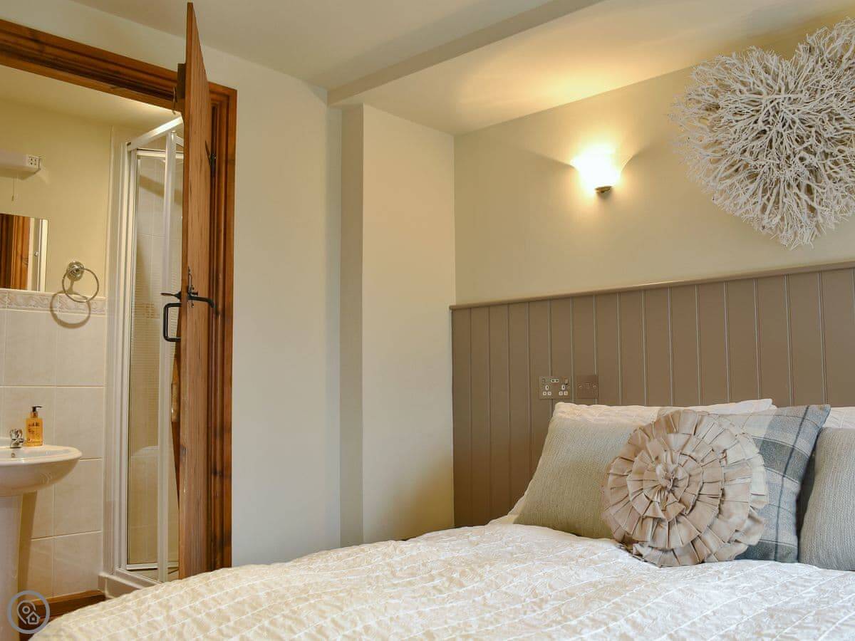 Inside the cottage the living area on the first floor is open plan and full of character with cosy sofas and a well-equipped kitchen and dining area. The two double bedrooms on the ground floor each have en-suite facilities with power showers, towels and bathrobes provided.