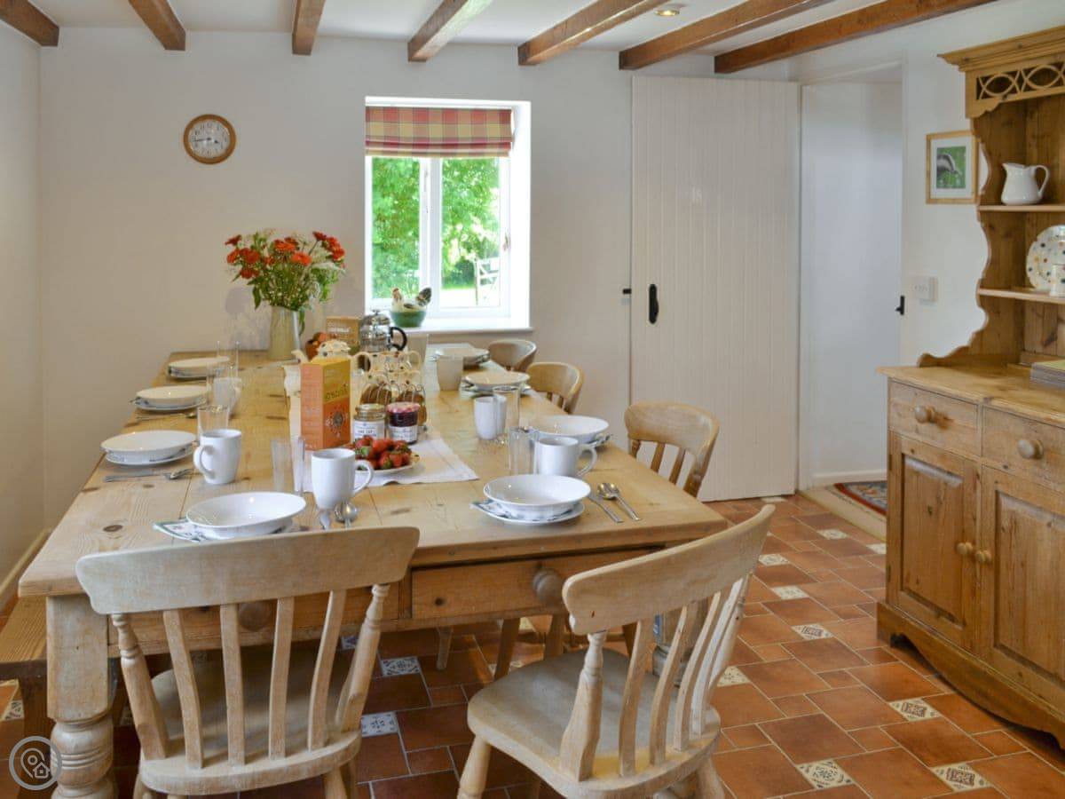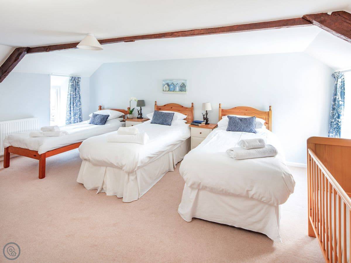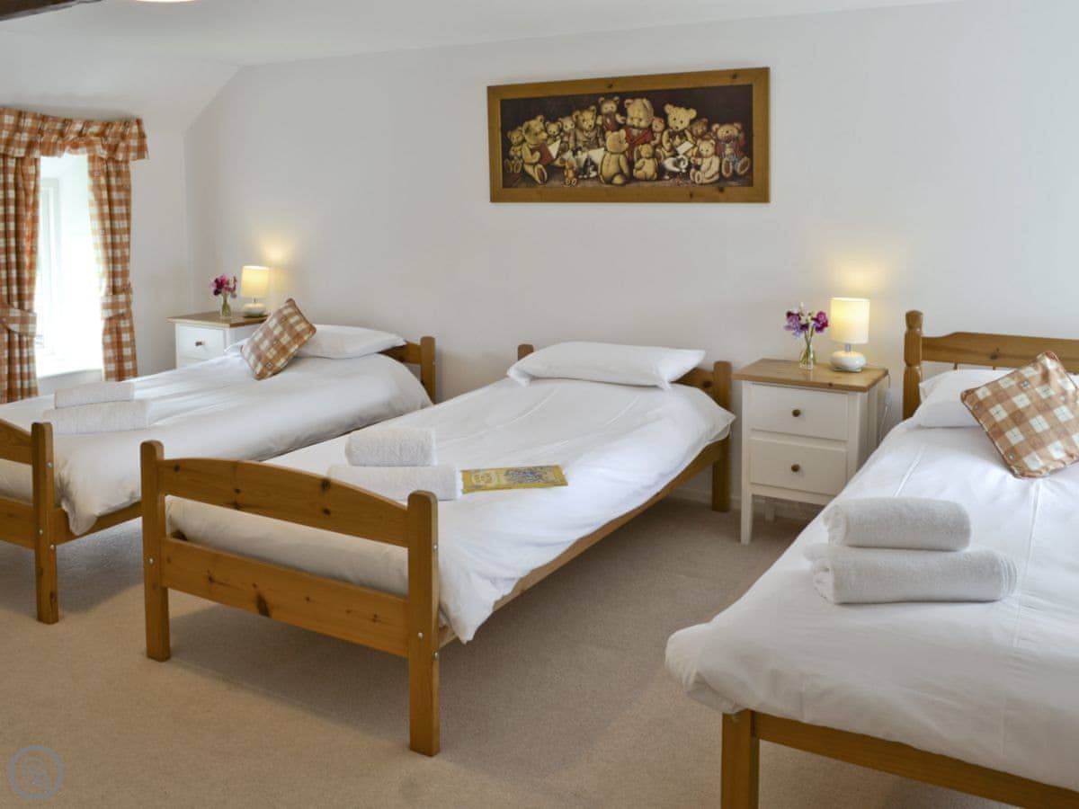 Badgers House is in New Inn, which is in Devon. It's part of a larger estate called Libbear Barton, which has a few other holiday cottages and a big farmhouse. This one is detached. It sleeps nine people in four bedrooms, and has two bathrooms.