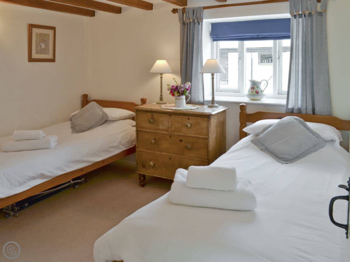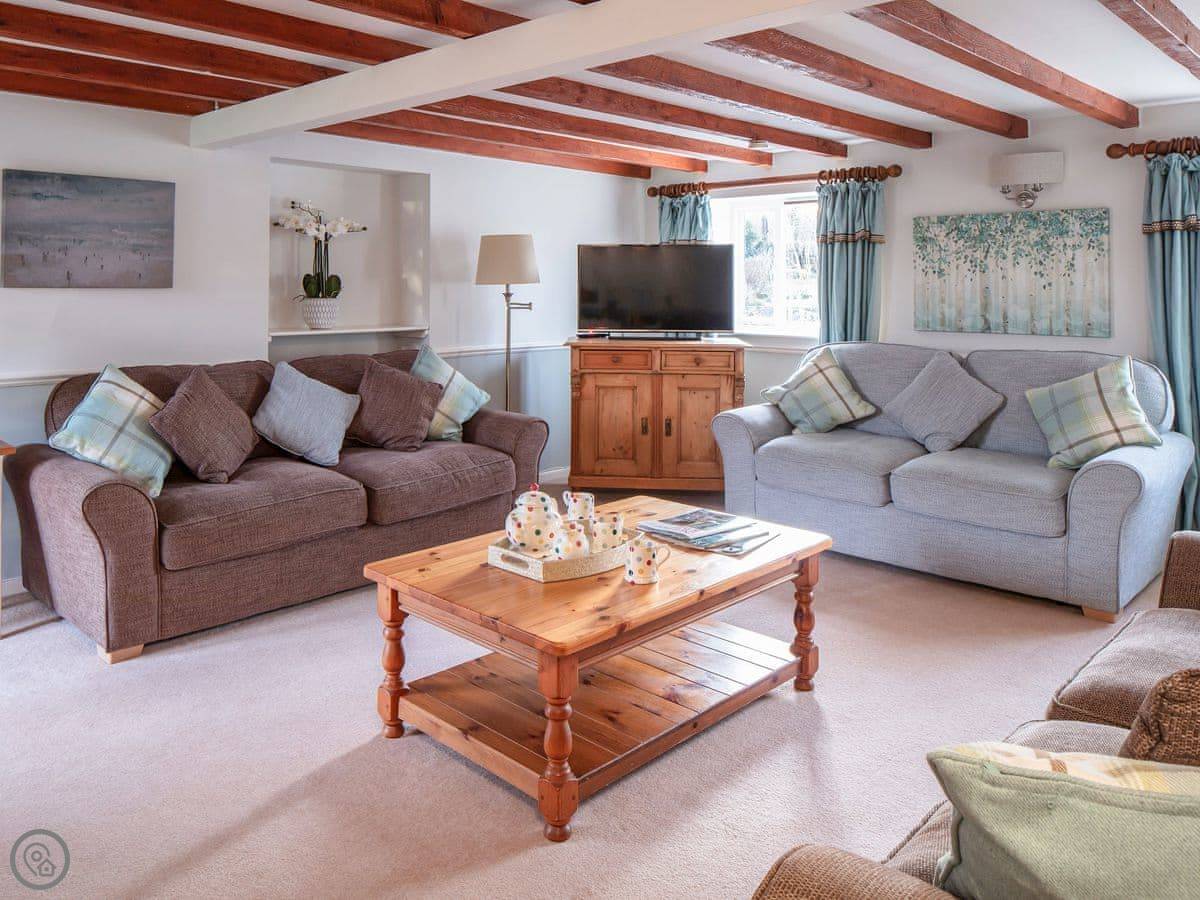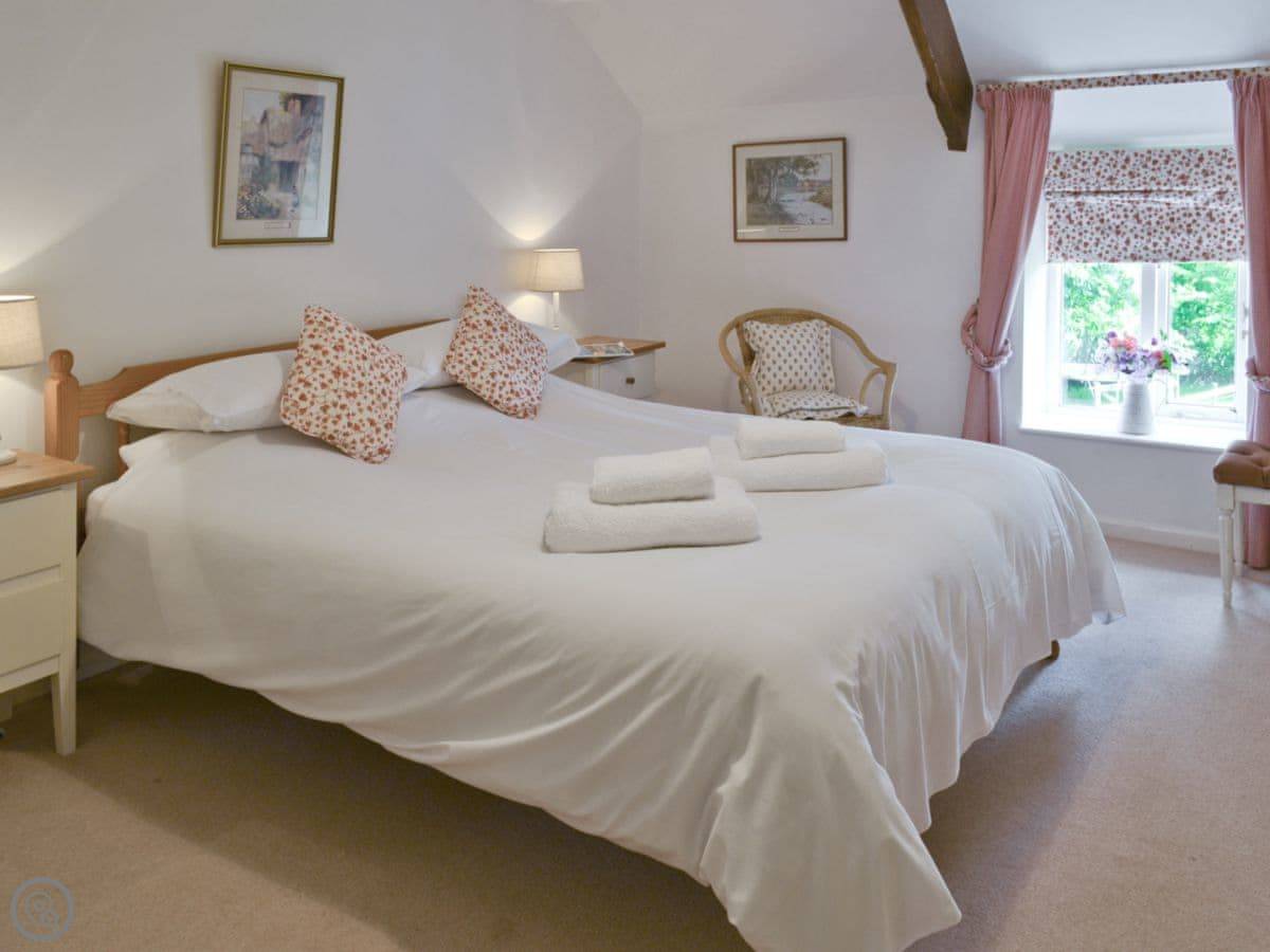 Badgers House is in New Inn, which is in Devon. It's part of a larger estate called Libbear Barton, which has a few other holiday cottages and a big farmhouse. This one is detached. It sleeps nine people in four bedrooms, and has two bathrooms.