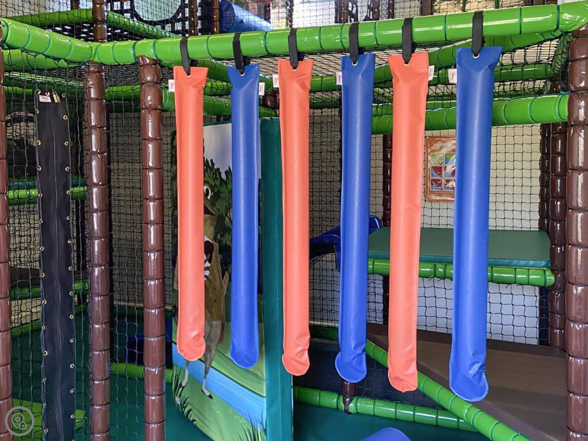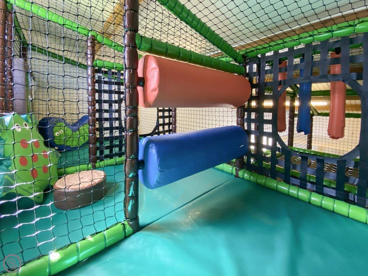 You share the wider estate facilities with any other guests who are here. There's a large, heated indoor swimming pool, a sauna, a games room, a small soft play area for little ones, and an outdoor adventure playground. There's also a gym and some woodland walks on the 40 acre site.