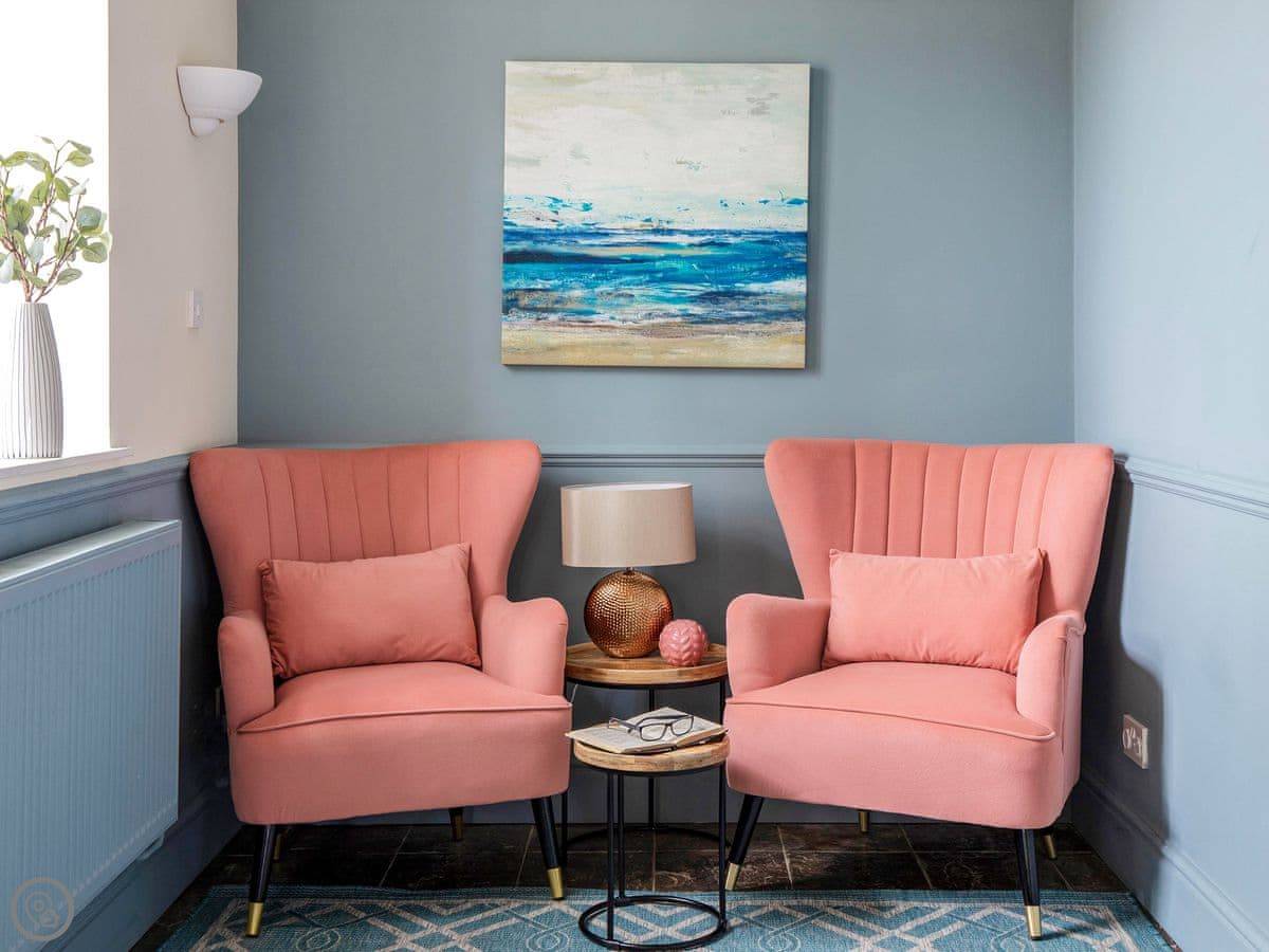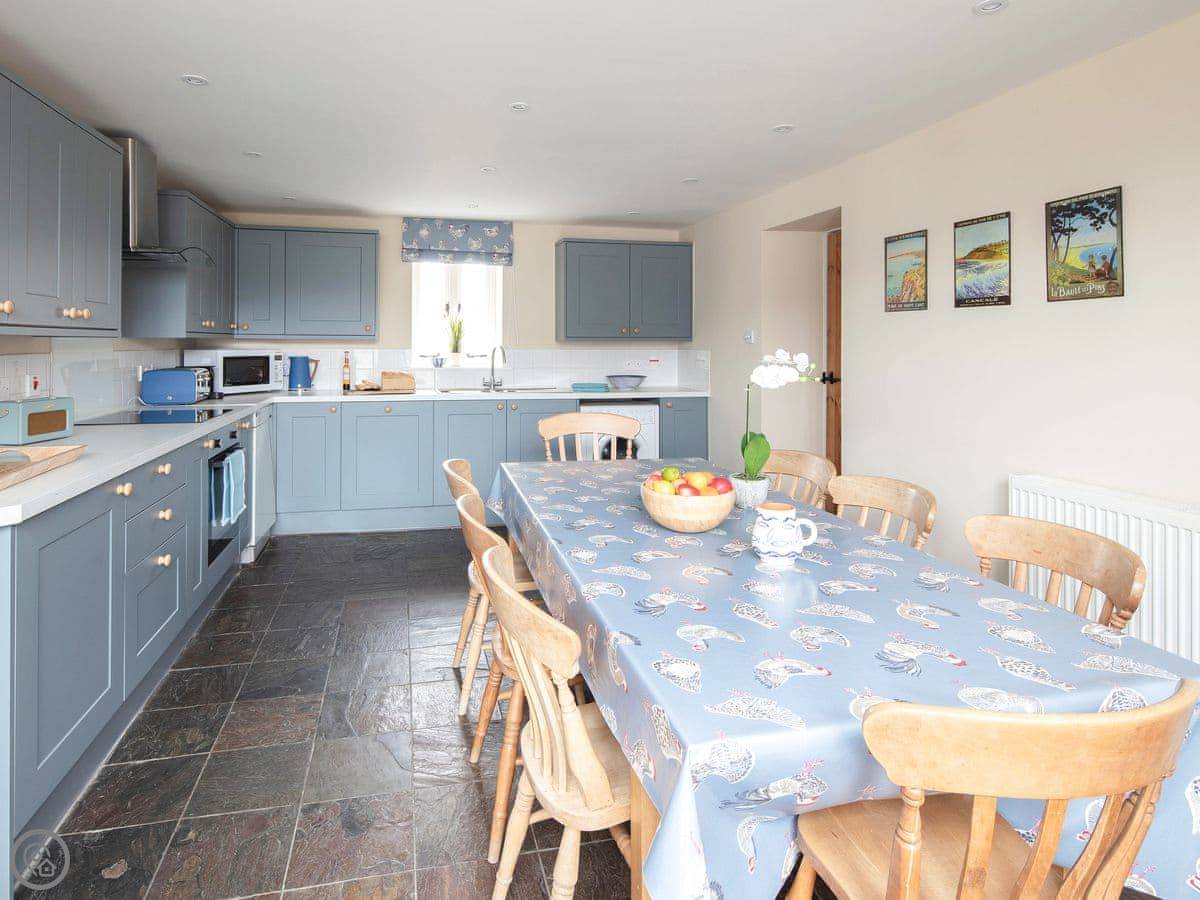 The cottage itself is cosy, but the kitchen and dining room are a good size for eight people. You get your own enclosed garden with a barbecue. Parking is right there.