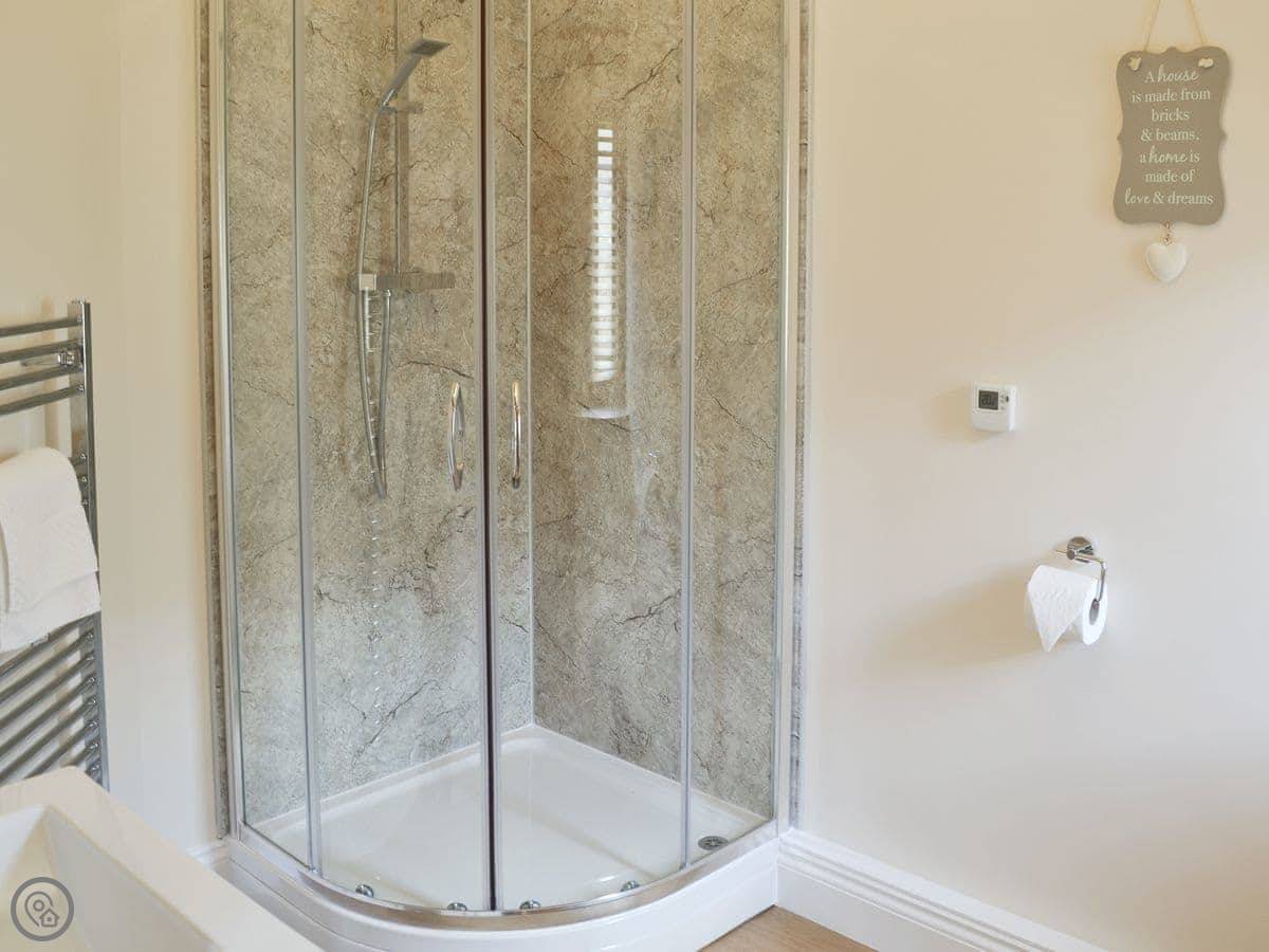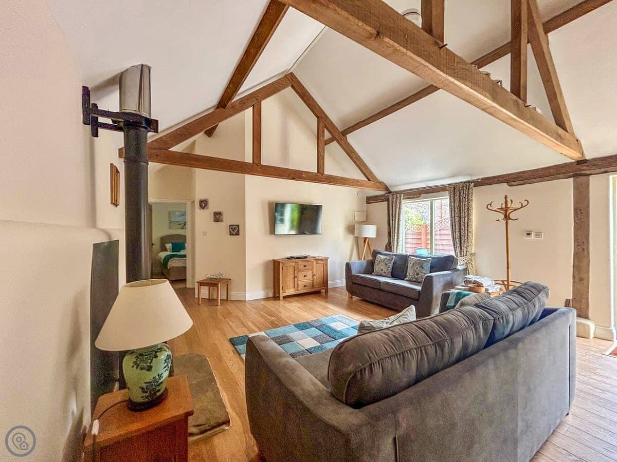 It sleeps four in two bedrooms, with two bathrooms. It's got a 5 Star rating. That means it's well finished. There's oak flooring, a wood burner, and it's all on one level.