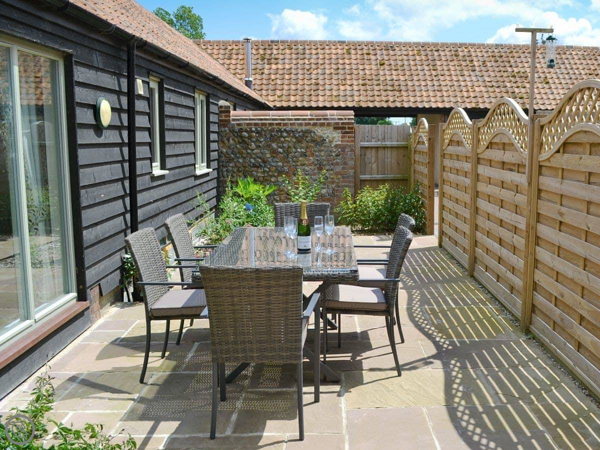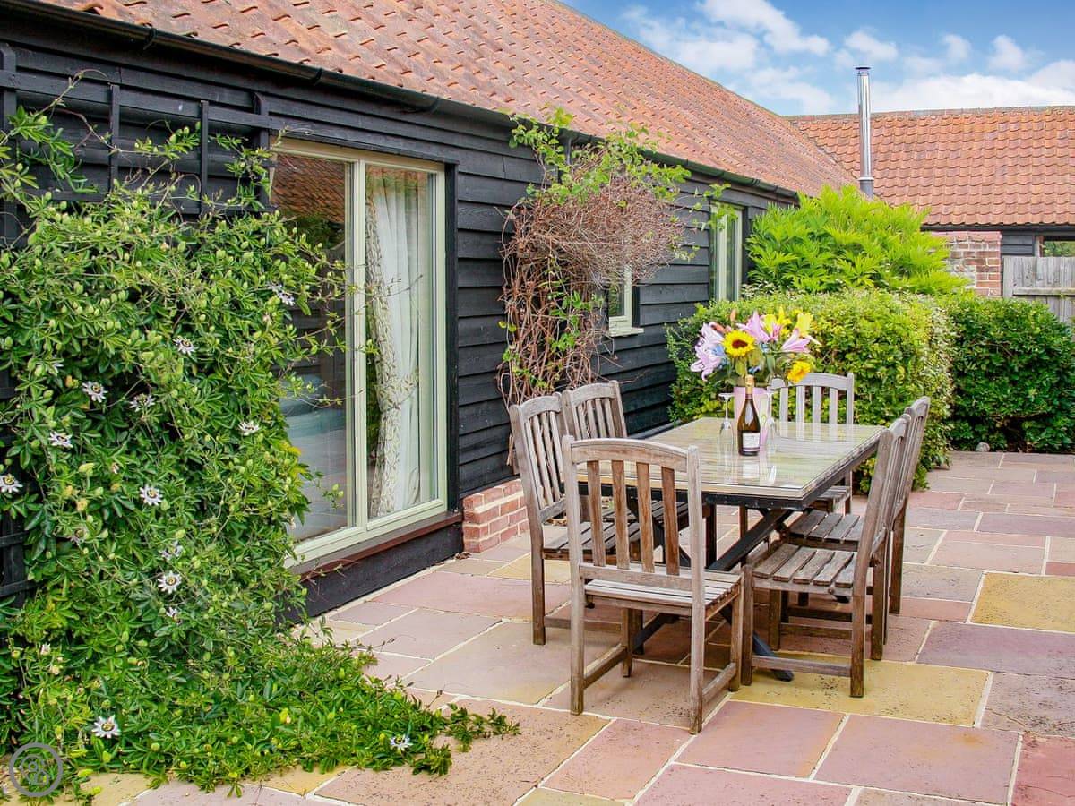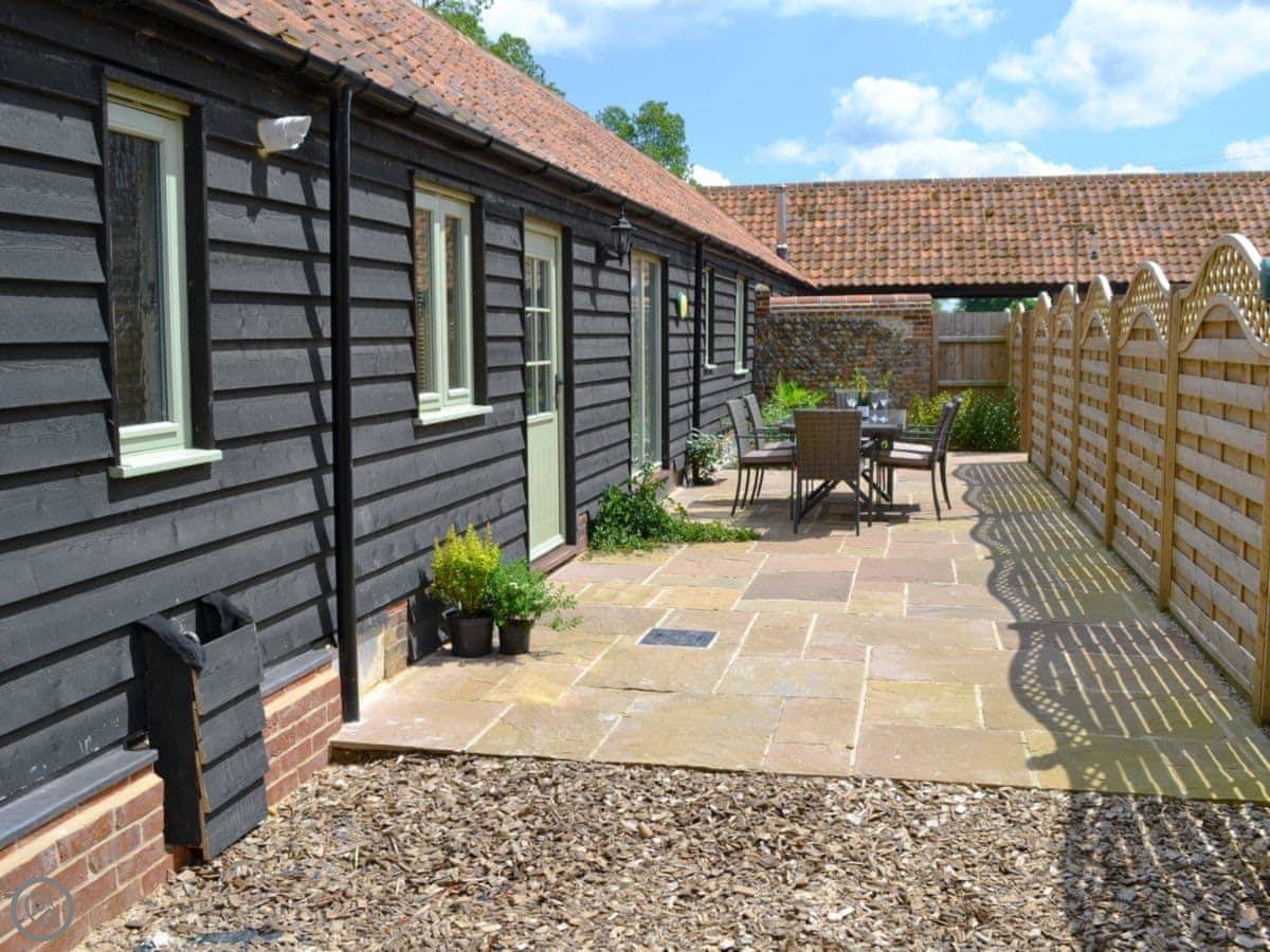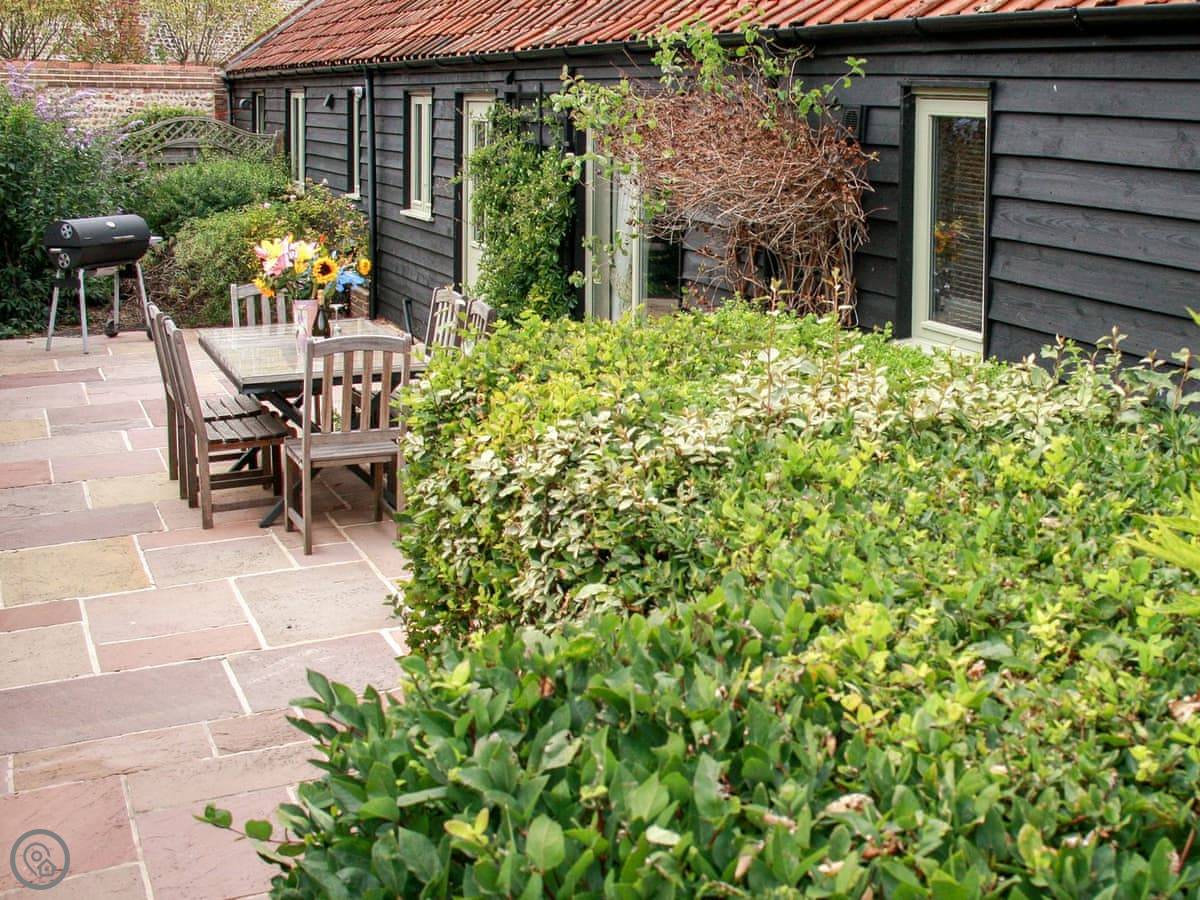 Squirrels Drey is in Witton, near the North Norfolk coast. It's one of a few converted brick and flint barns. The owners live on site, but the place is private. You get your own fenced courtyard with seating and a barbecue.