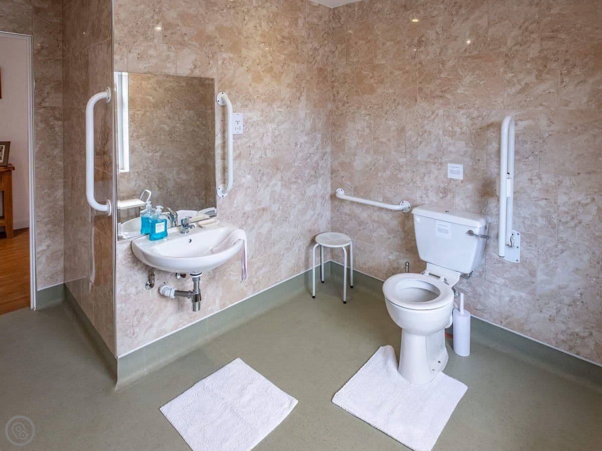 It sleeps six in three bedrooms, with two bathrooms. It's got a 4 Star rating. The whole place is on one level and it's wheelchair accessible. We designed it that way. There's no real step at the front door and the wet room is good for wheels.