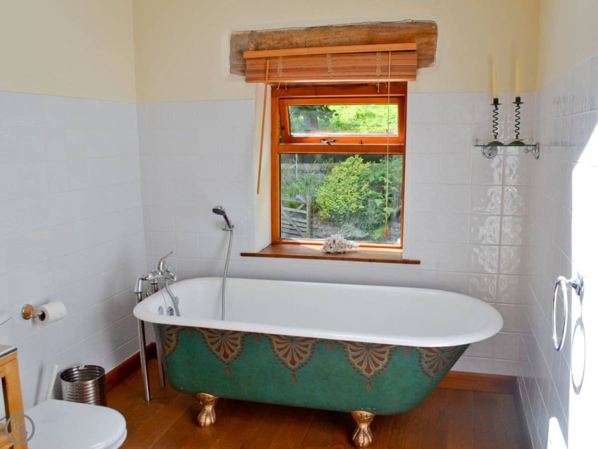It sleeps eight. Four bedrooms, two bathrooms. It's got a 4 Star rating. It's been modernised but it's still a solid old cottage. The description mentions open, steep stairs. They are cottage stairs, so watch your head in a couple of places.