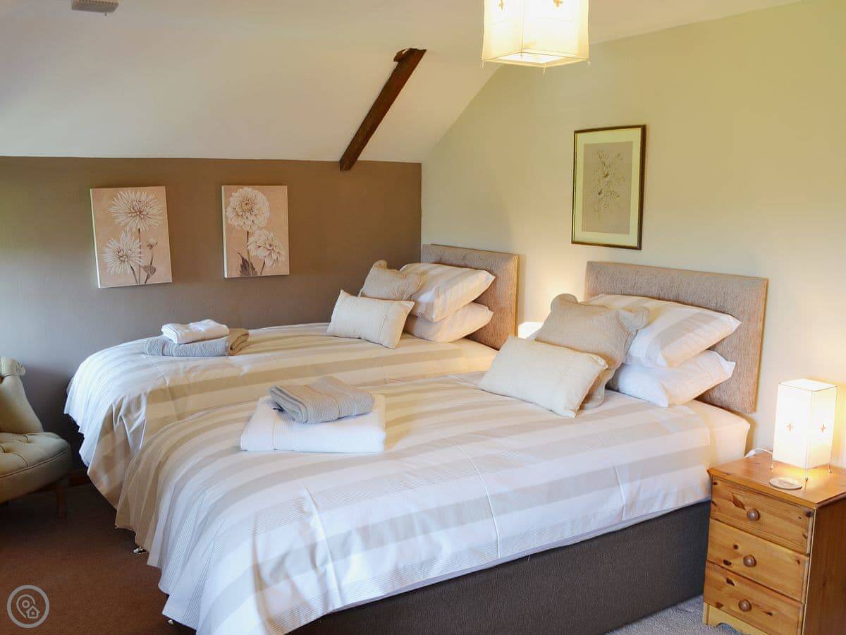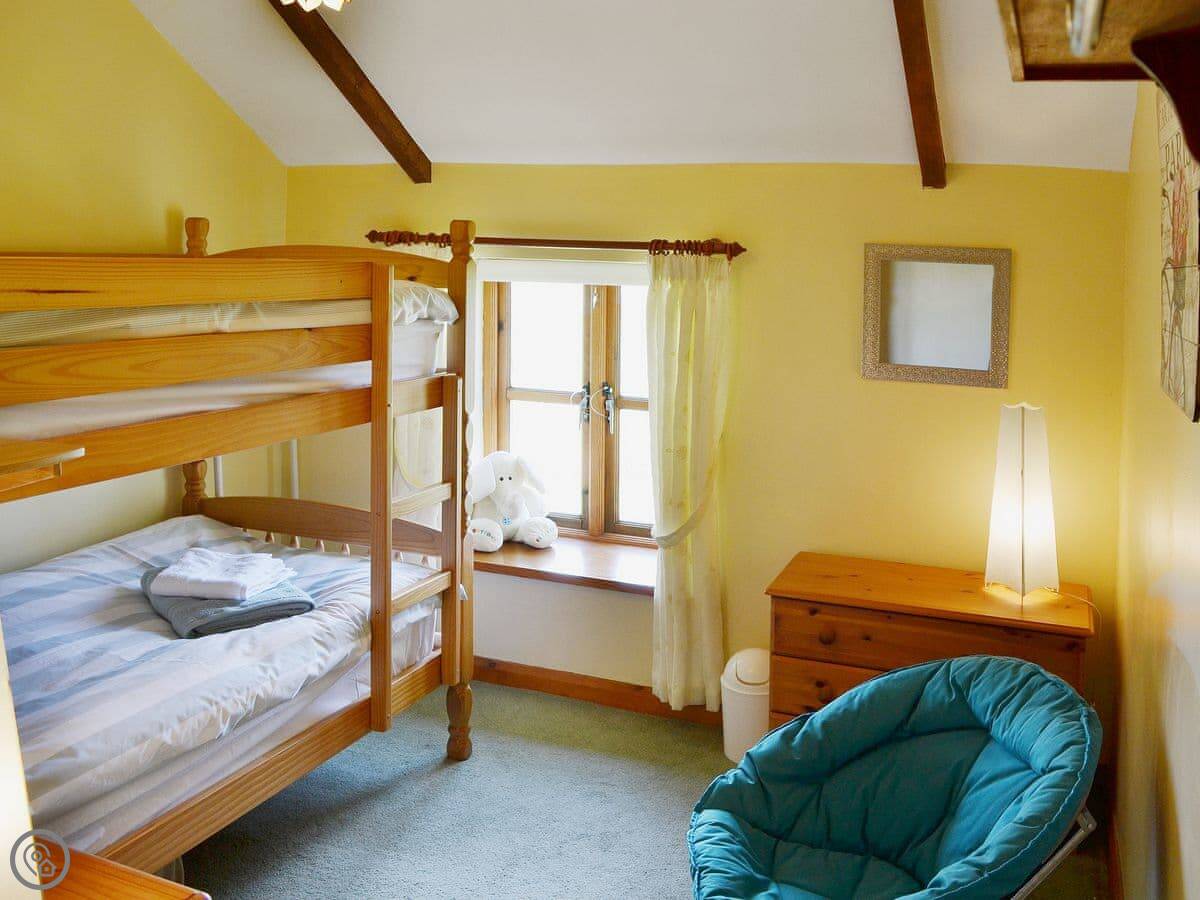 With stunning views over open countryside, this charming, three-bedroomed, terraced barn conversion is located just 5 miles from Newquay. It offers comfortable accommodation and nestles in the corner of an exclusive courtyard of private homes. Coachmans Cottage is a home-from-home, featuring little touches to help make your stay as comfortable as possible. There is a selection of books, DVDs, games, and children’s toys, as well as free Wi-Fi. On arrival, you’ll be greeted with a warm house and cosy ready-made beds. The open-plan kitchen/dining area provides social space to enjoy a family meal. The living room has an electric coal-effect fire, and traditional furnishings and provides access to a small terrace. From the terrace, stone steps lead down to the stone-walled private garden complete with furniture for six and a barbecue, perfect for al fresco dining. There’s also storage for bikes and surfboards and a stone-chipping patio where wetsuits can be rinsed and dried. There are two parking spaces to the rear of the courtyard, and access is permitted for loading and unloading at any time.