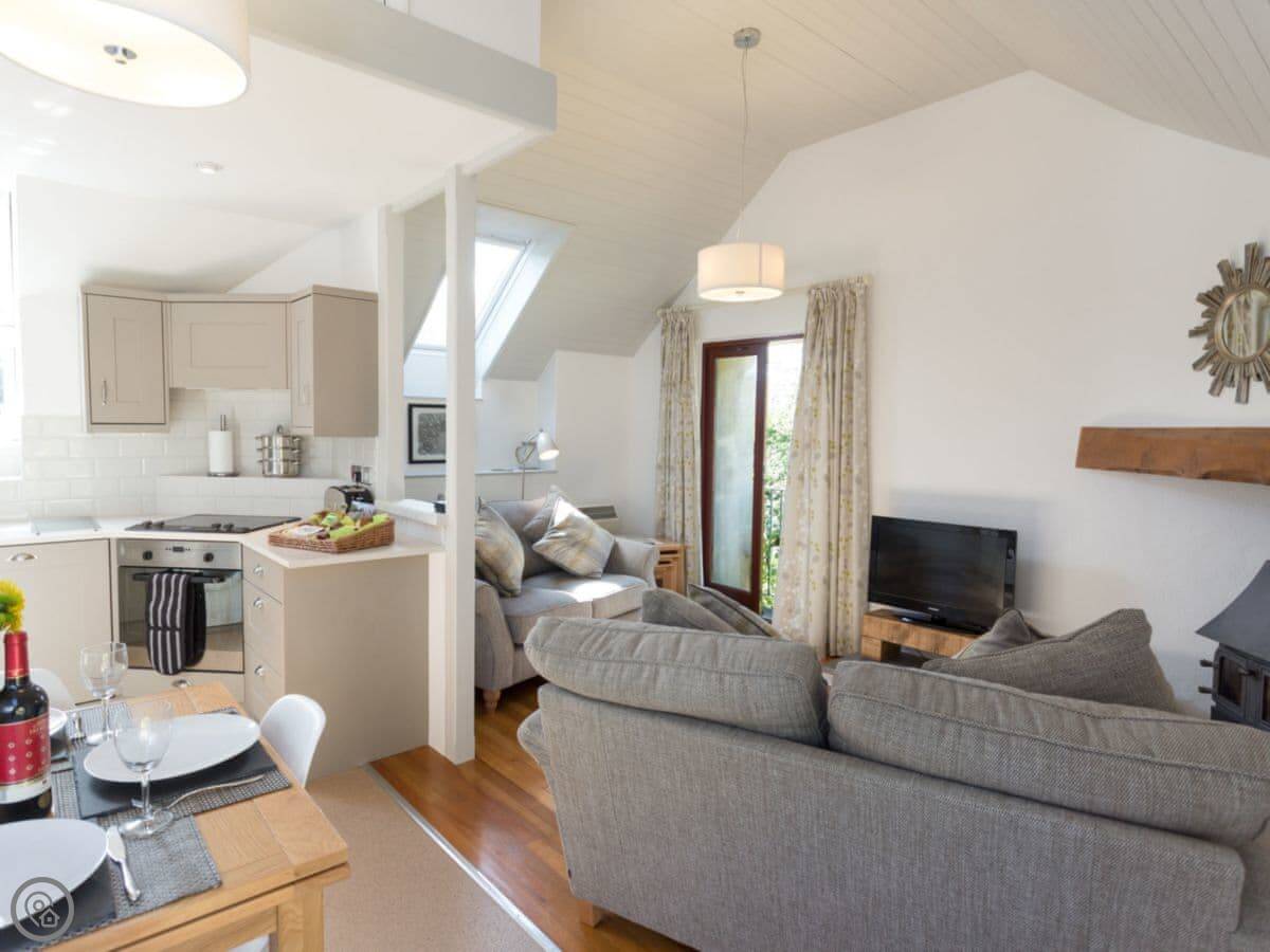 Facilities in the cottage: there's a woodburning stove, WiFi, a TV, a washing machine, and a dishwasher. Bedding and towels are included. There's parking right outside. Sorry, no pets.