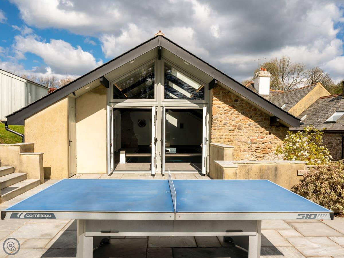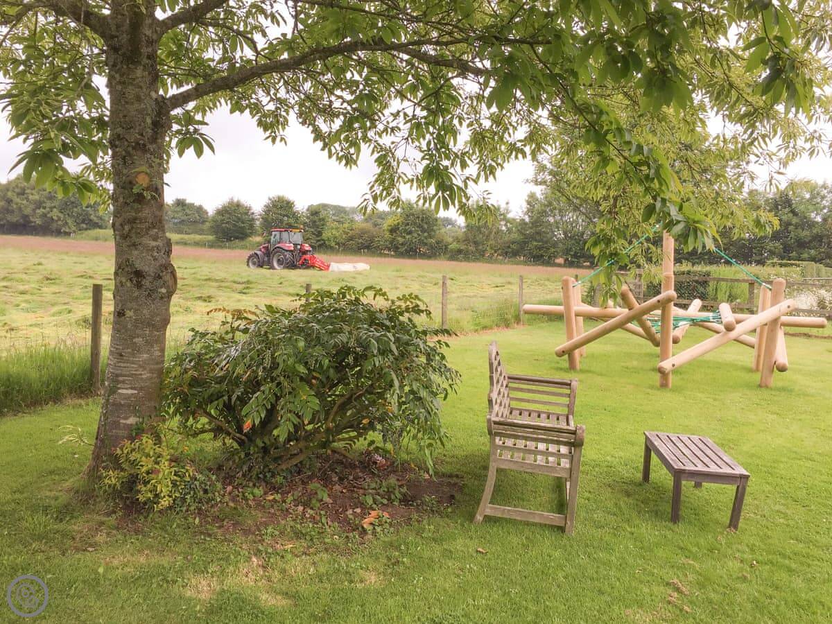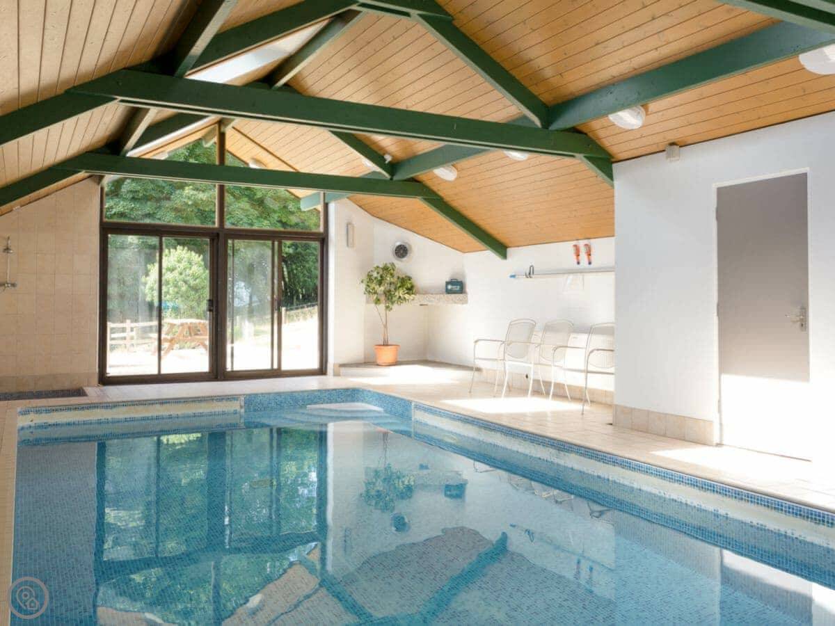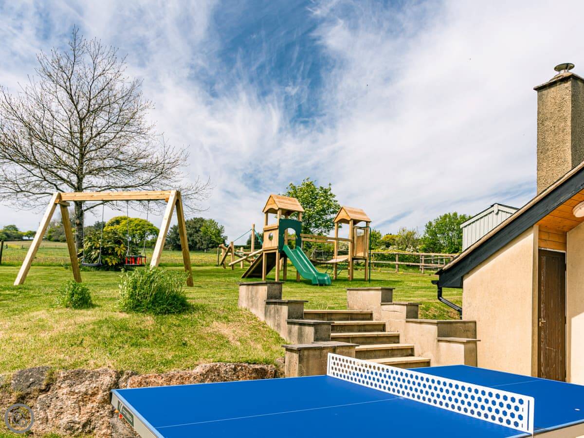 Being on a farm, there are shared facilities. There's an indoor heated swimming pool, a games room, and a children's play area. Each cottage has its own enclosed patio with a barbecue. You're welcome to explore the grounds. There's an ancient stone row, a stream, and a firepit you can use. If you find any eggs from our chickens, you can have them.
