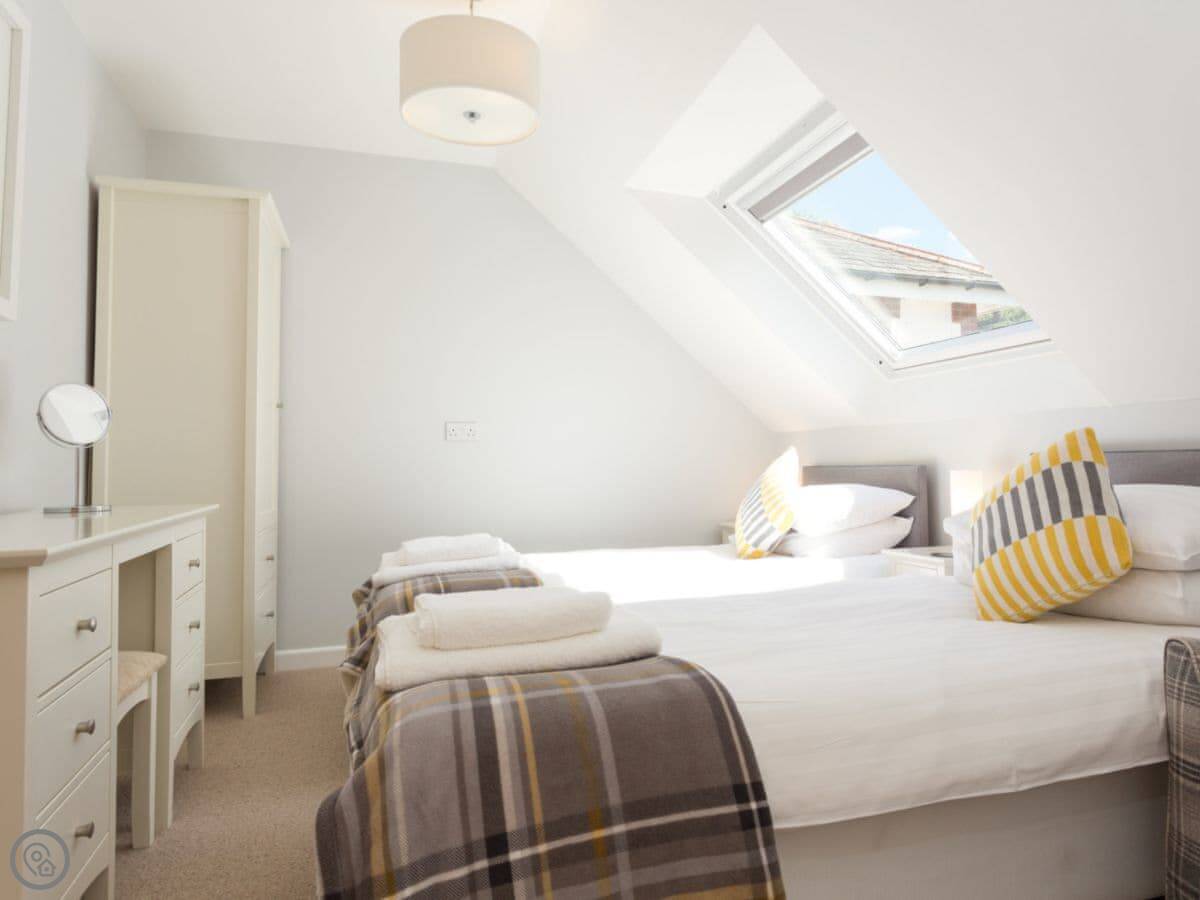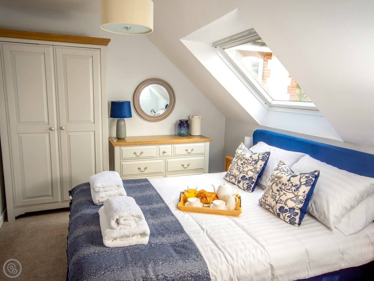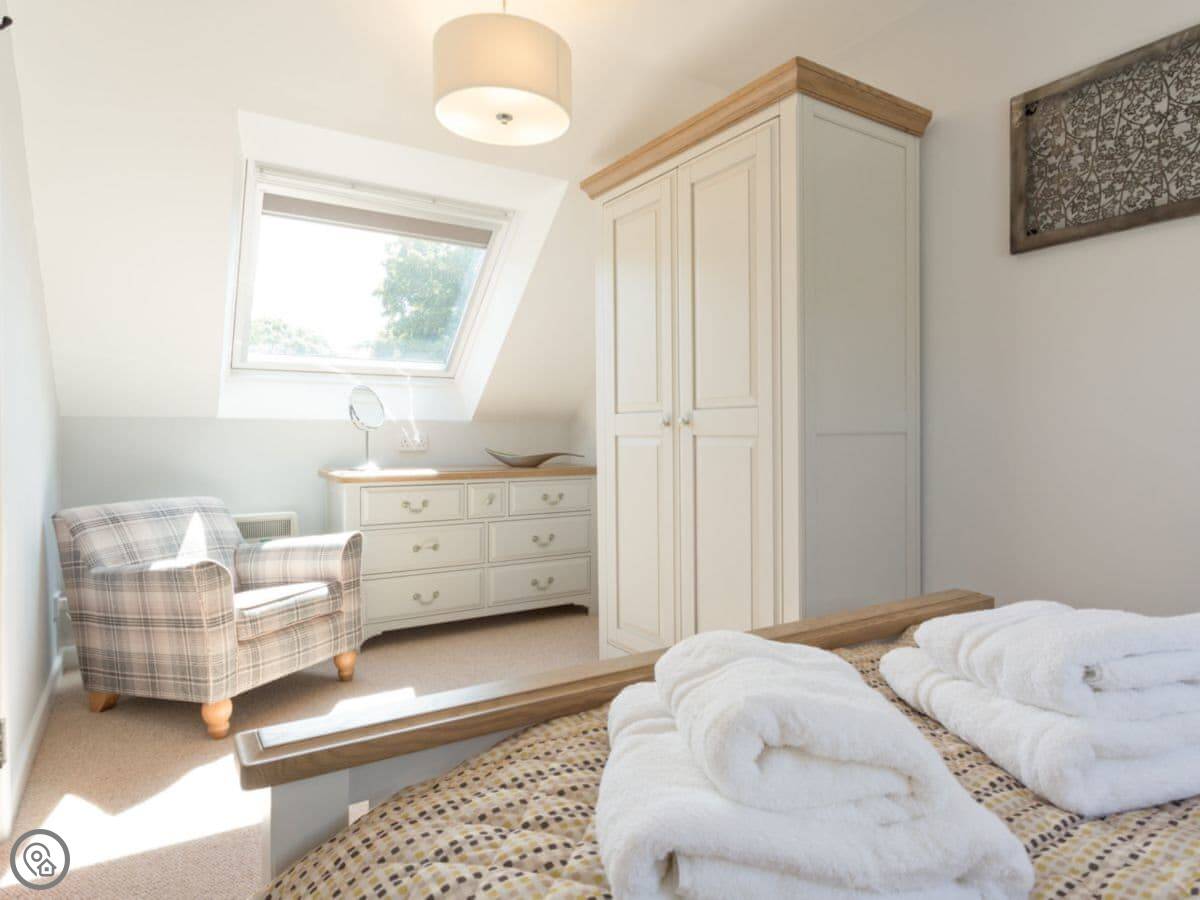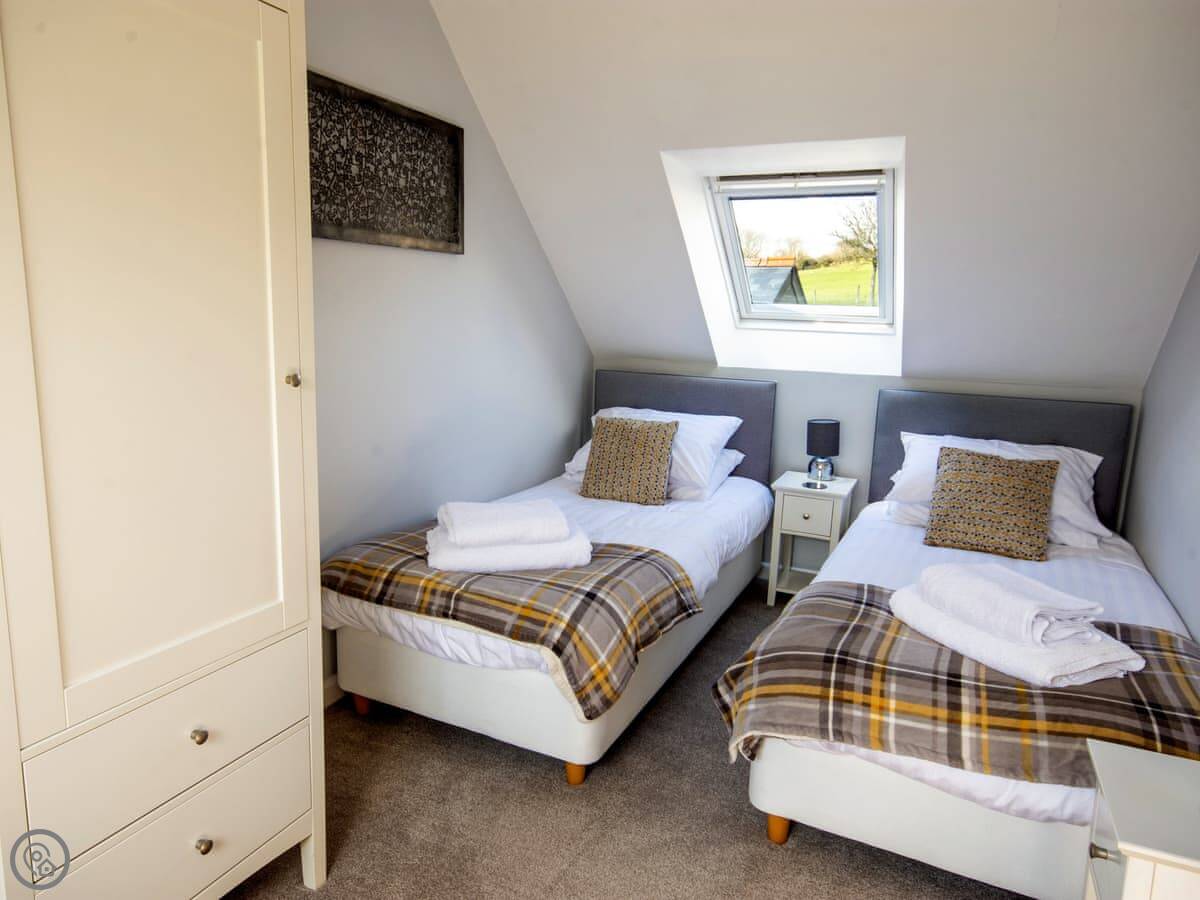 It sleeps four. Two bedrooms, both with their own bathrooms. It's got a 5 Star rating, which means it's been done to a high standard. The towels are good. You get a cream tea when you arrive.
