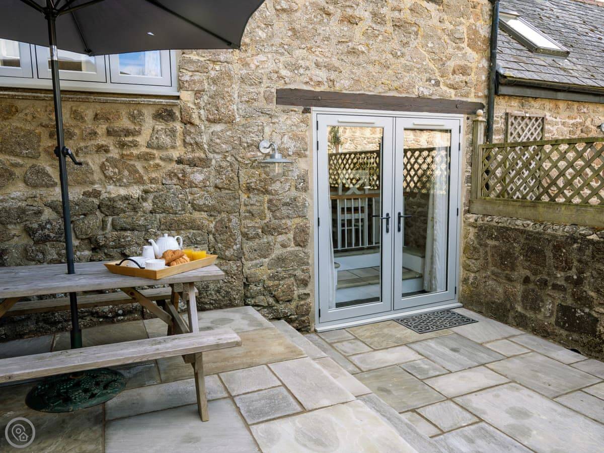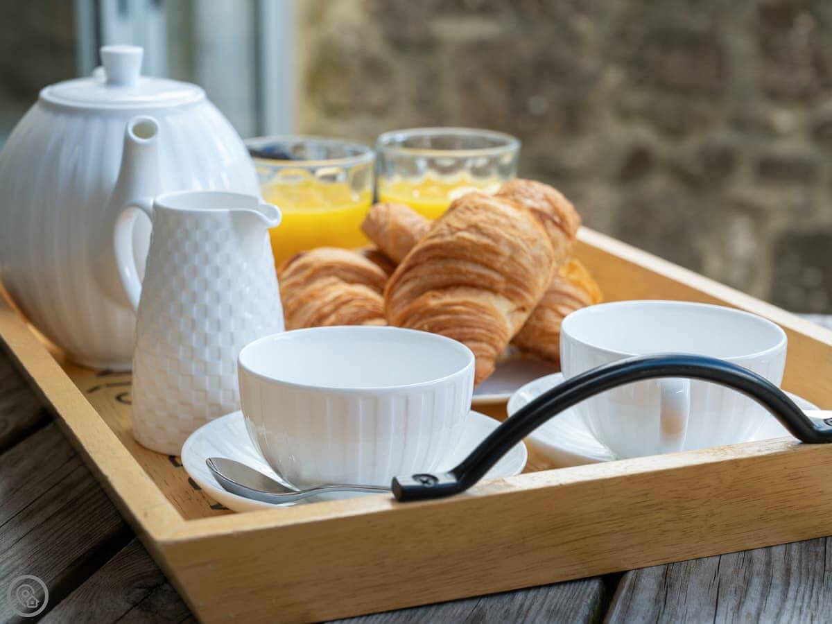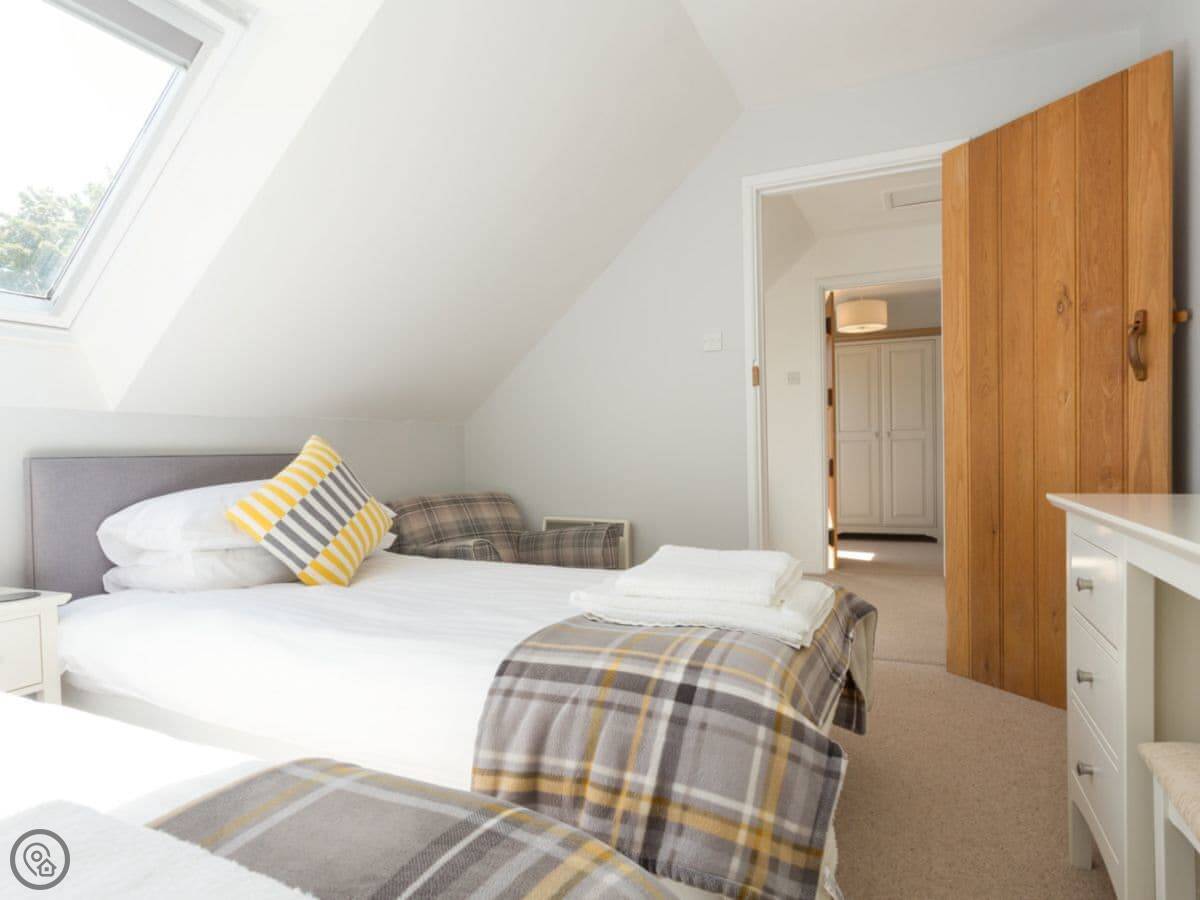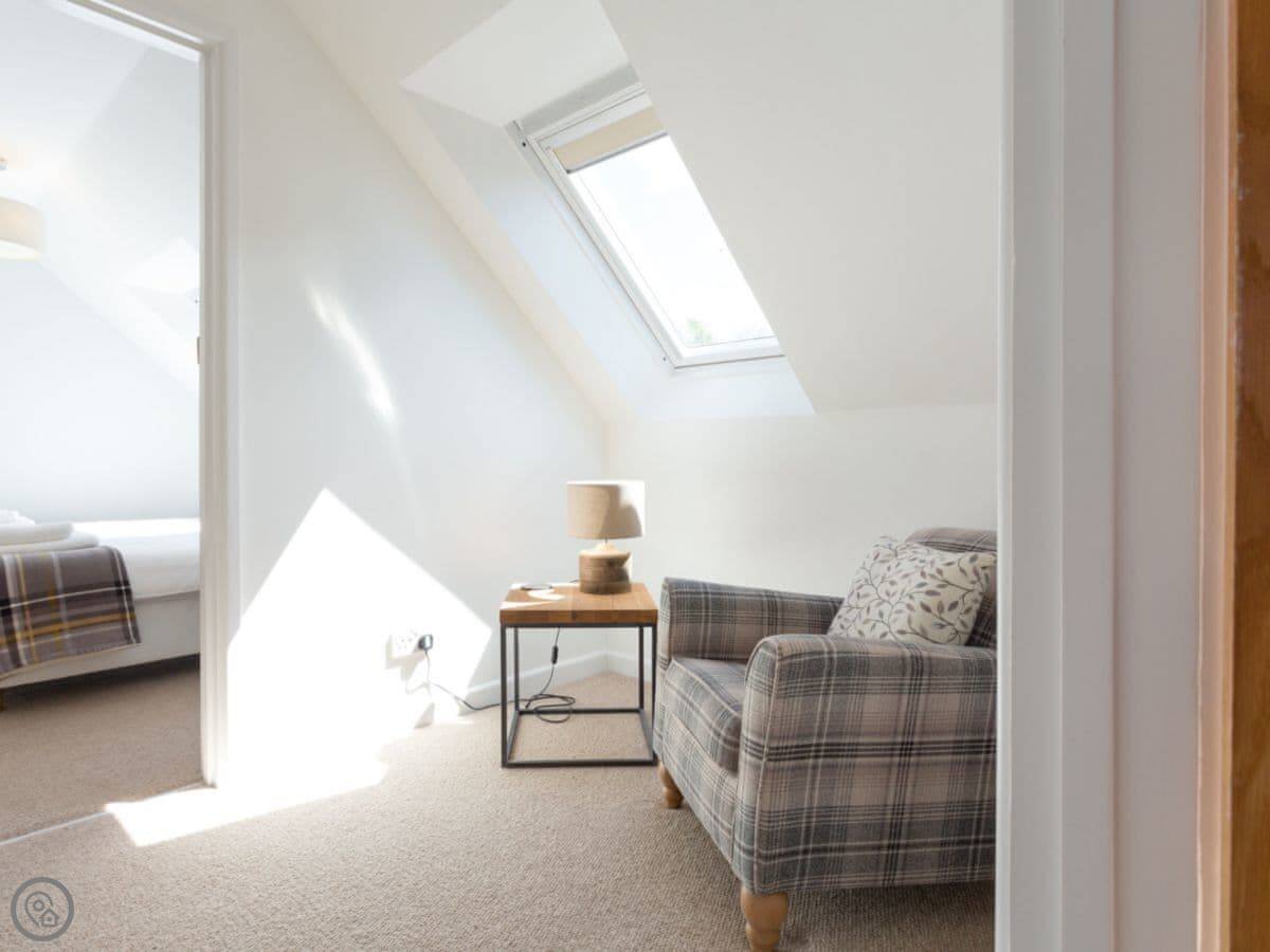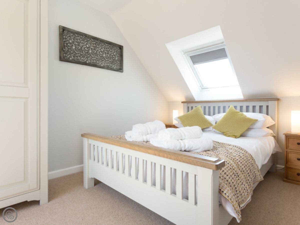 It sleeps four. Two bedrooms, both with their own bathrooms. It's got a 5 Star rating, which means it's been done to a high standard. The towels are good. You get a cream tea when you arrive.