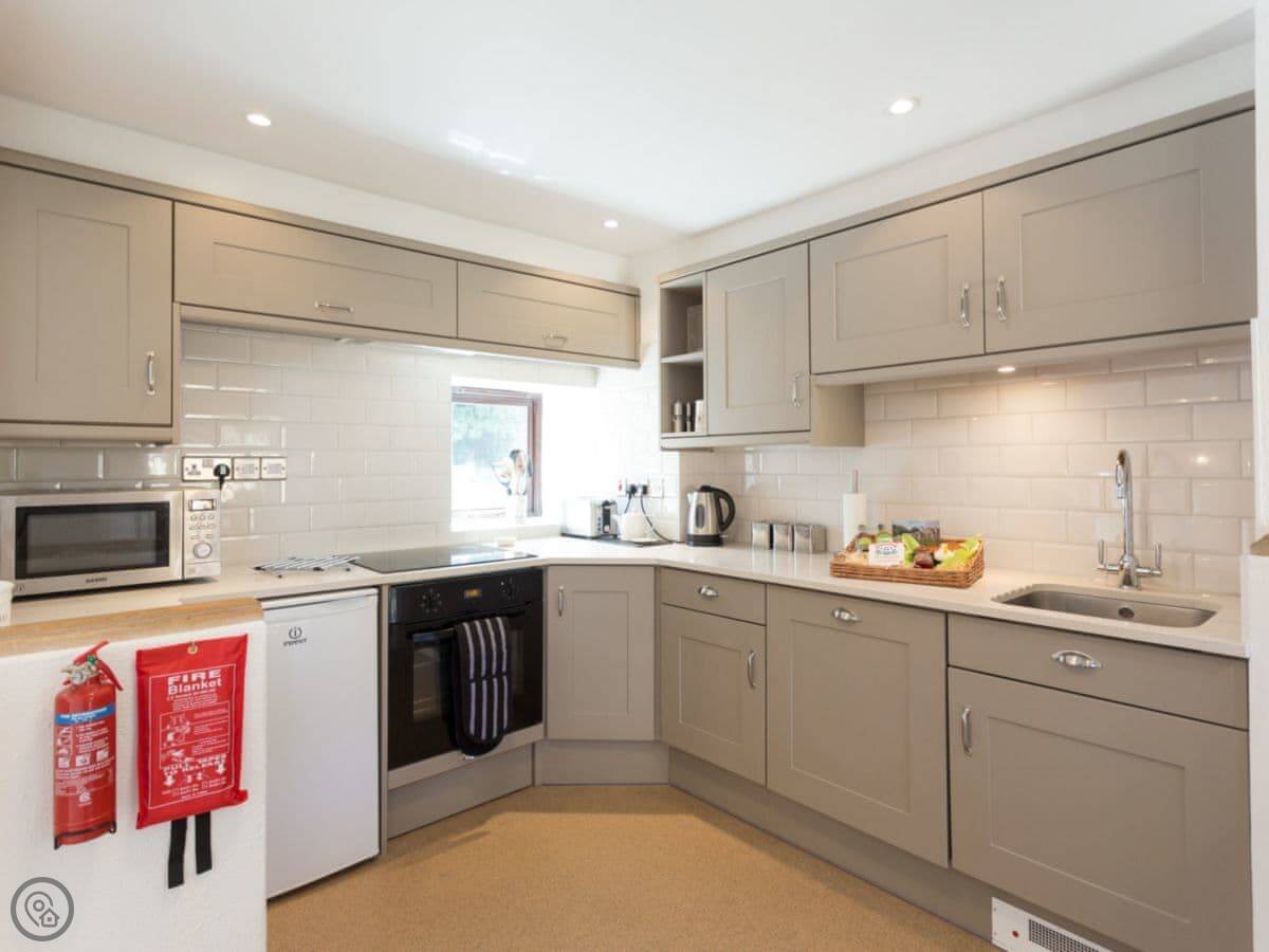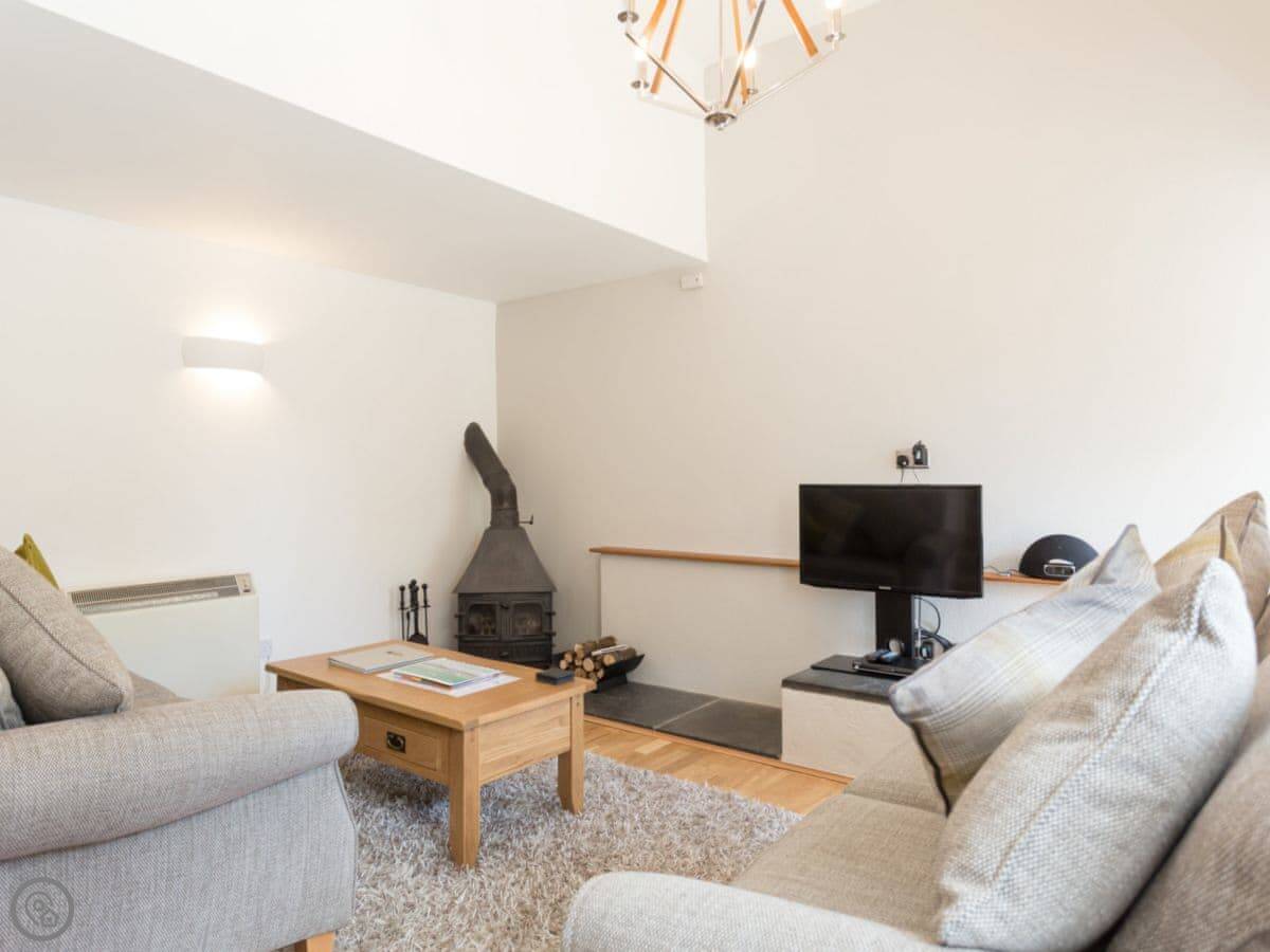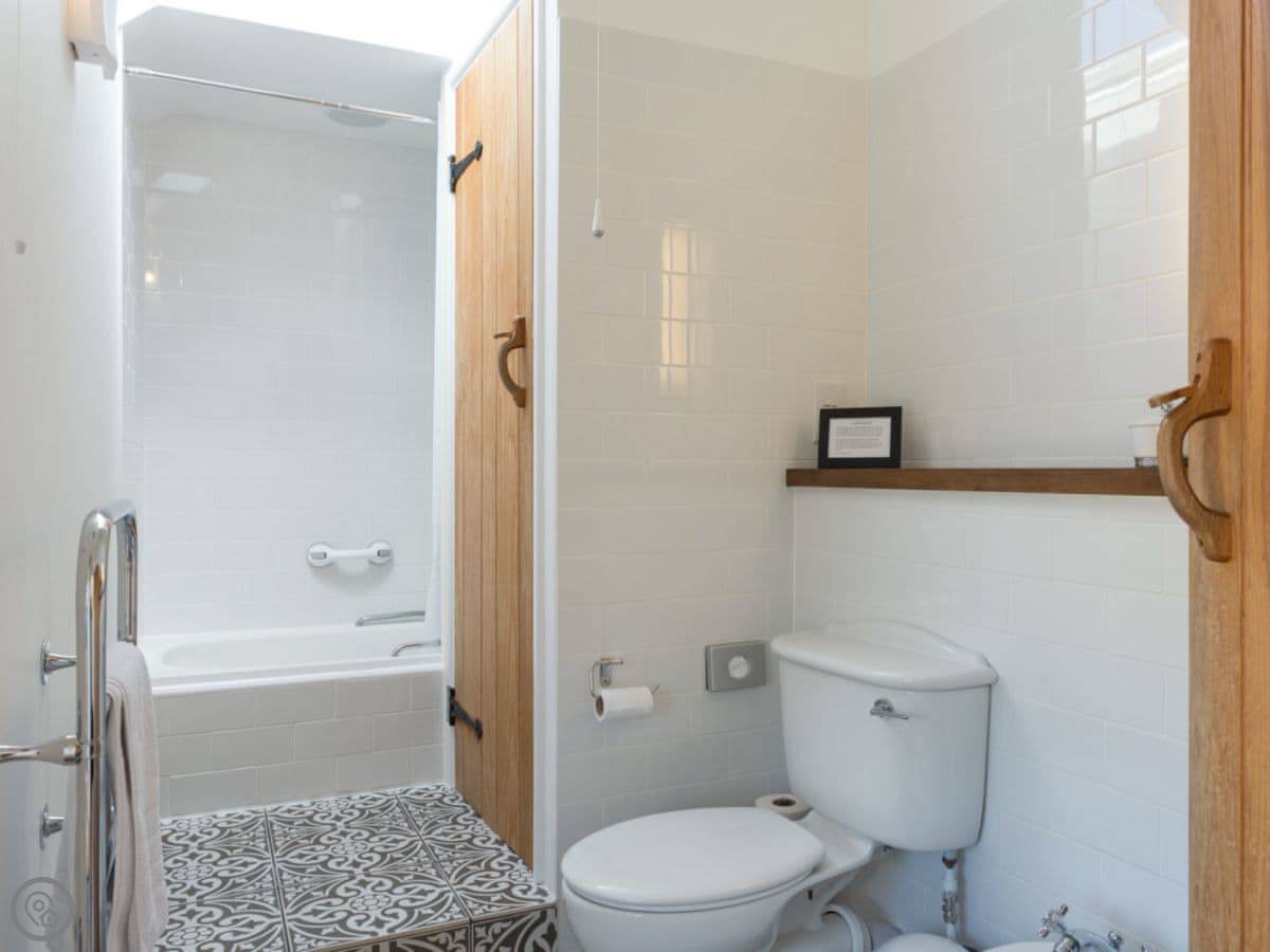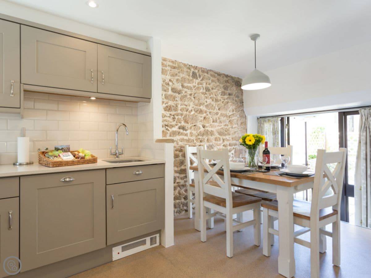 It sleeps four. Two bedrooms, both with their own bathrooms. It's got a 5 Star rating, which means it's been done to a high standard. The towels are good. You get a cream tea when you arrive.